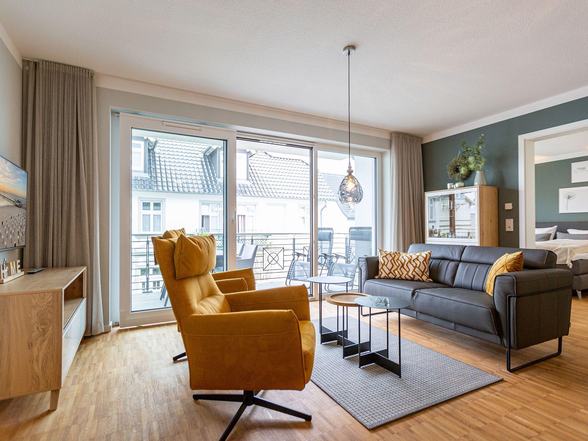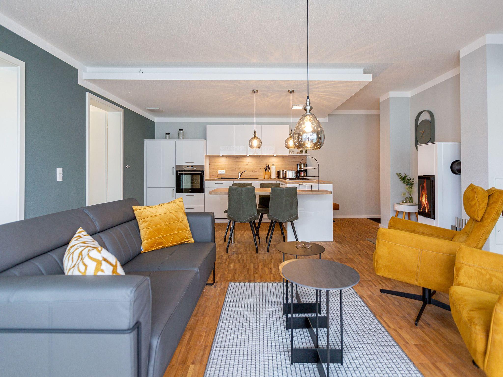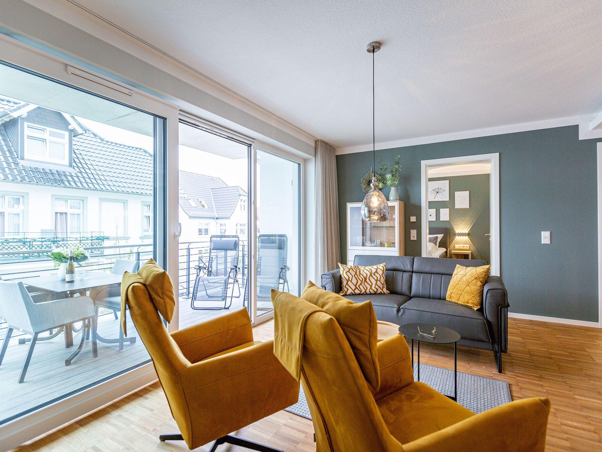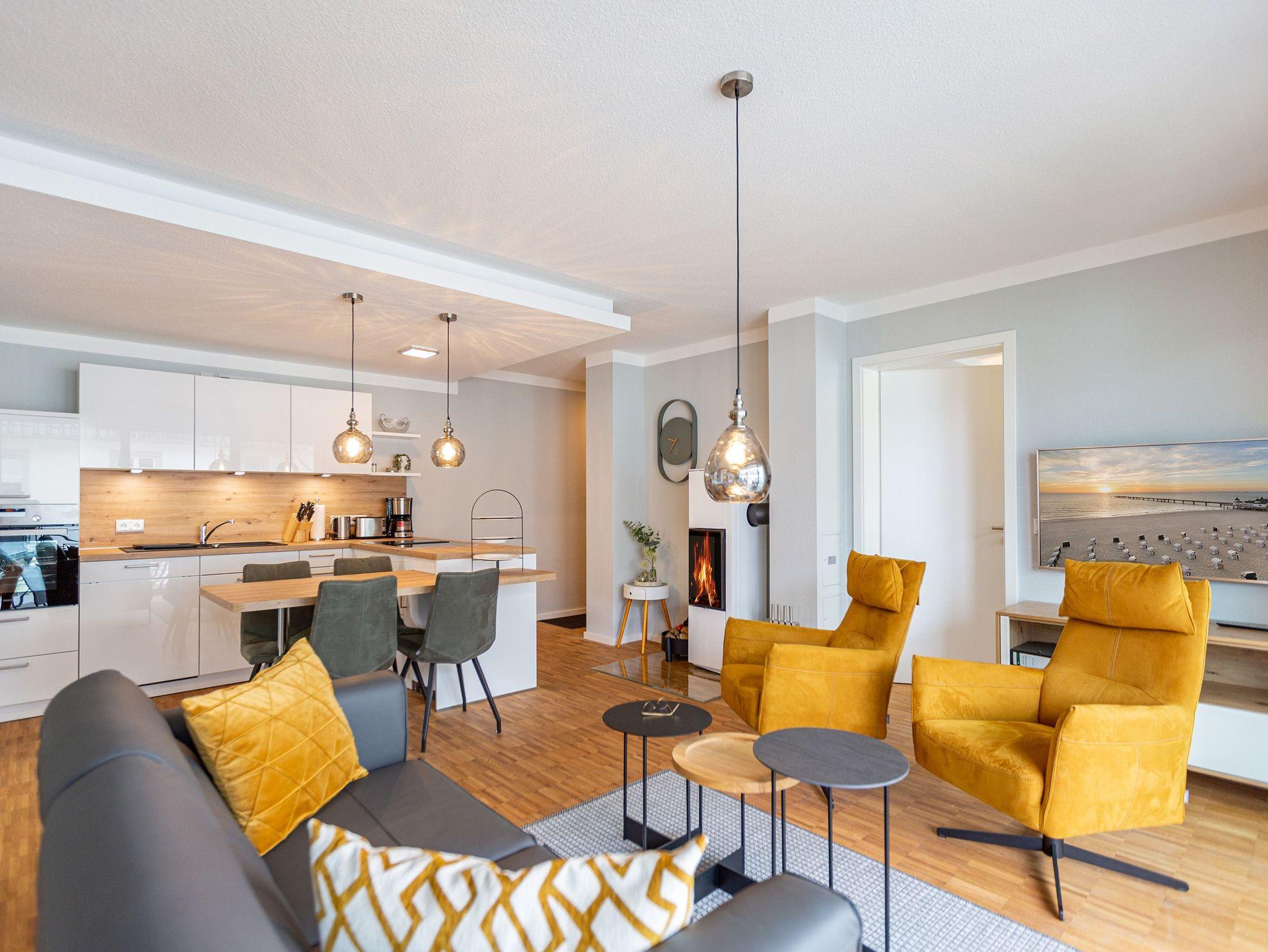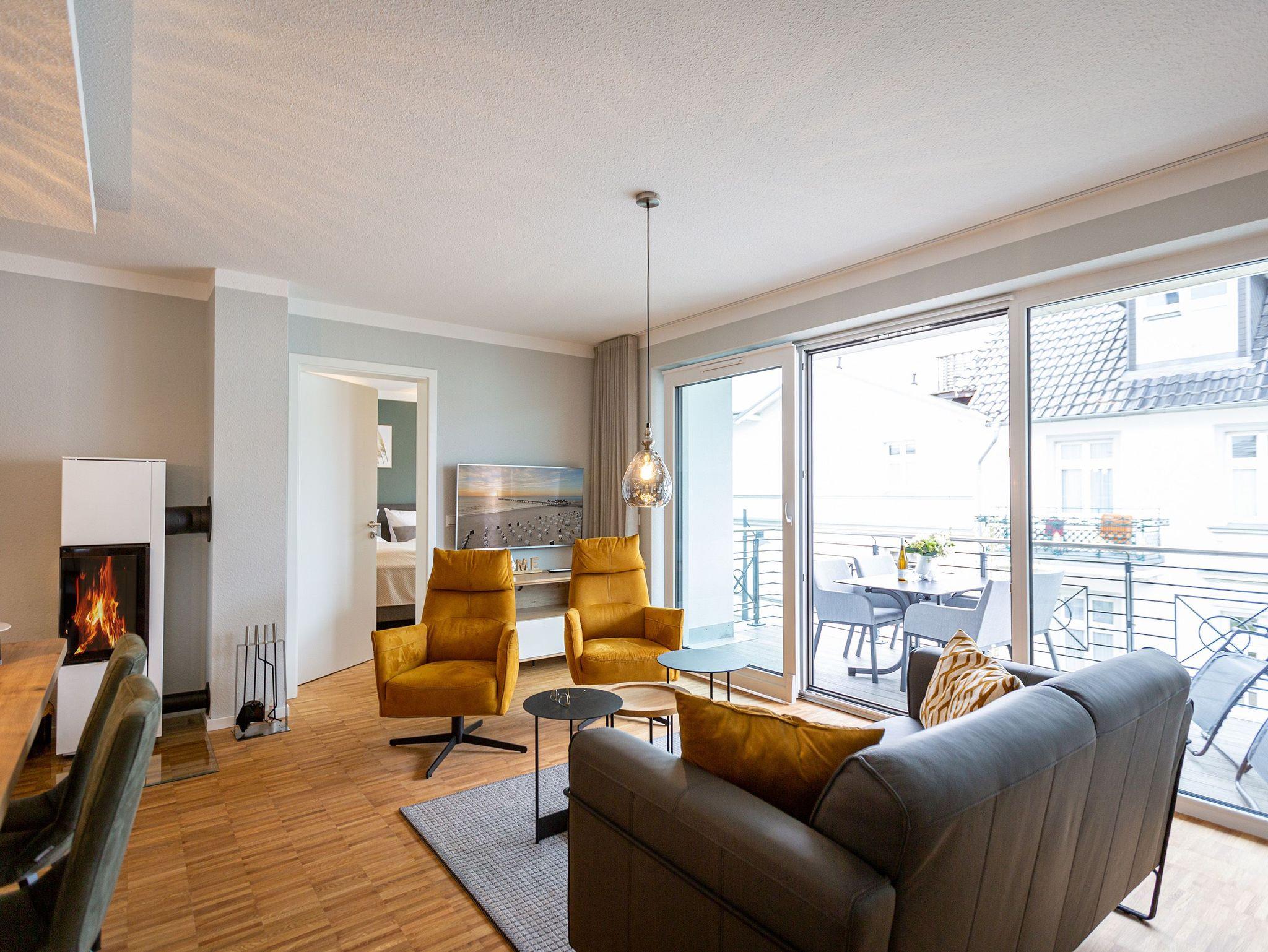 Modernes, lichtdurchflutetes 3-Zimmer-Apartment mit Kamin, Sauna und Balkon nahe Ostseestrand in Ahlbeck.