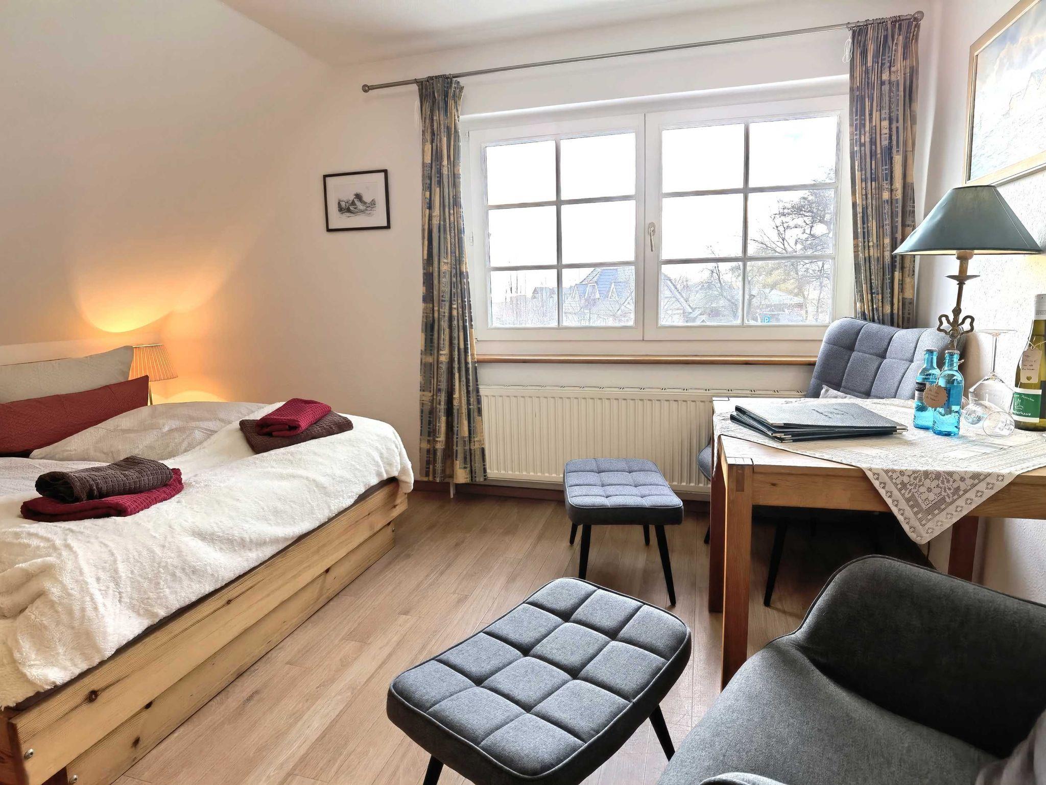 Die Fenster gehen in Richtung des Hafens selbst, bzw. auch auf die Rückseite des Räucherhauses, dies ist vom jeweiligen Apartment abhängig. Bestehend aus einem gemeinsamen Wohn- und Schlafbereich sind all unsere Apartments mit einem Doppelbett, Sat-TV und WLan, sowie einer Miniküche gemütlich ausgestattet.