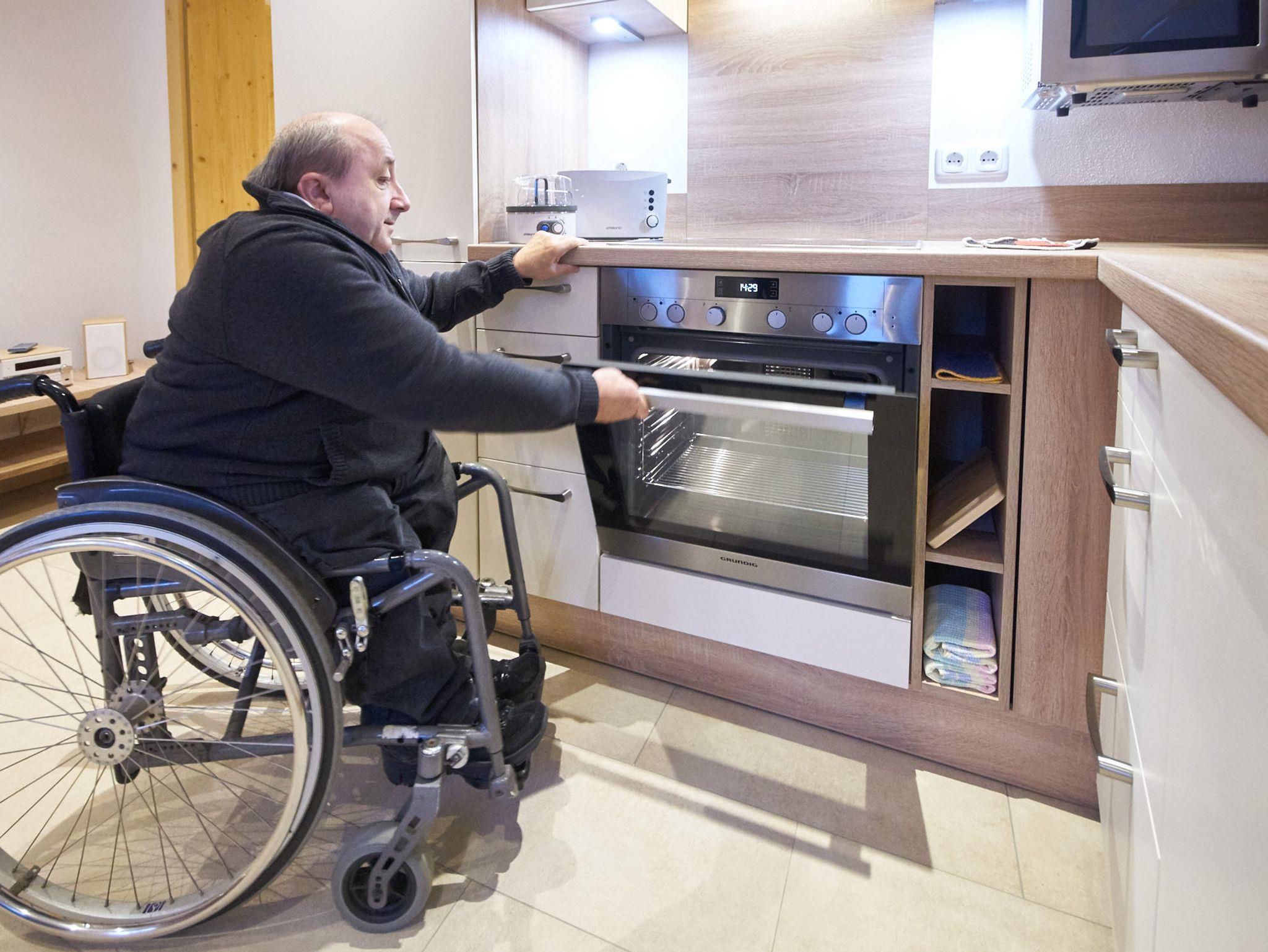 Die barrierefreie Ferienwohnung Unterstadel bietet mit einer Größe von 37 ² ausreichend Platz für einen Urlaub mit 1 bis 3 Personen. Gemütlichkeit wird in der modern eingerichteten Ferienwohnung groß geschrieben. In der komplett ausgestatteten Wohn-Küche finden Sie alles, was Sie für Ihren Urlaub in Altötting benötigen - darunter auch eine gemütliche Sitzgruppe inklusive Flat-TV. Schon bei der Ankunft werden Sie die Vorzüge unserer barrierefreien Ferienwohnung genießen, denn Sie können mit dem Auto direkt vor der Wohnungstüre parken. In der Wohnung haben wir breite Türen (90 cm) eingebaut und alle Räume schwellenlos gestaltet, damit Sie mit Ihrem Rollstuhl bequem und ungehindert alle Bereiche erreichen können. Im Badezimmer stehen eine befahrbare, schwellenlose Dusche (1,2 x 1,2 m) mit Haltegriffen und einem Duschstuhl für Sie bereit. Das Waschbecken ist höhenverstellbar und unterfahrbar. Das behindertengerechte WC ist mit einer Halterung und klappbaren Haltegriffen mit Spülung ausgestattet. Um sich für den Urlaubstag in Altötting so richtig schick zu machen, können Sie sich im behindertengerechten Spiegel mit einer Höhe von 1 m bequem stylen.