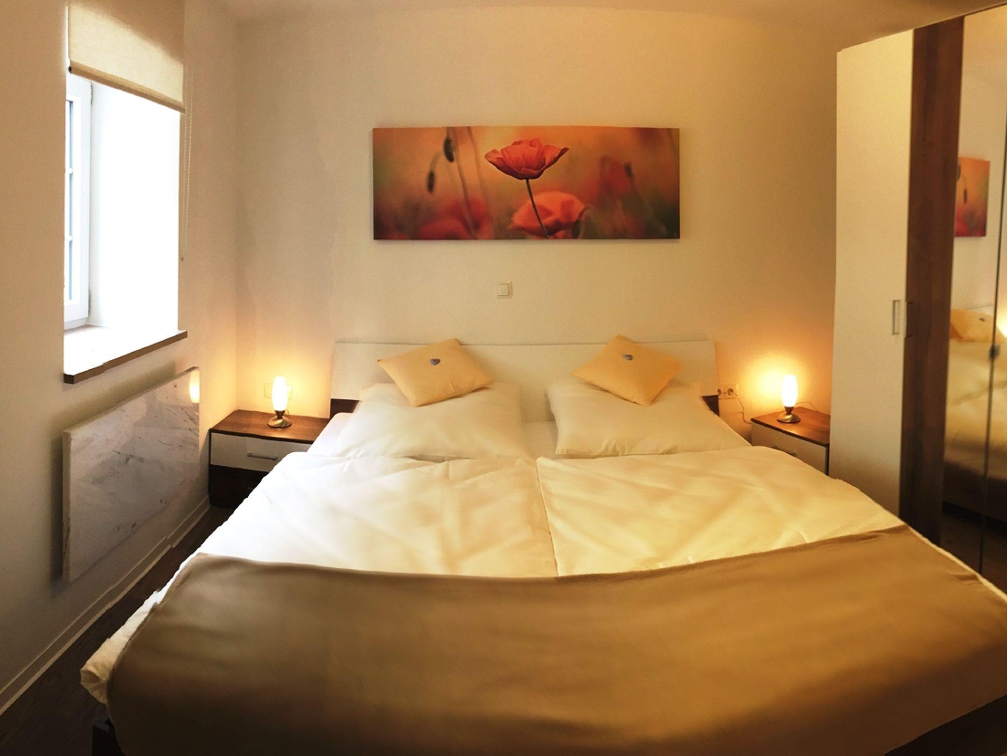 Das schöne moderne Appartement mit ca. 40 m² Wohnfläche lädt Sie zum Wohlfühlen ein. In der Wohnung befindet sich ein Schlafzimmer mit Doppelbett (1,80 x 2,00m) sowie ein Wohnraum mit Schlafcouch (1,60 x 2,00m). Die Wohnung ist ideal für zwei Erwachsene, aber auch für eine Familie mit zwei Kindern. Weitere Personen sind bei telefonischer Anfrage beim Gastgeber möglich. Die Wohnung verfügt über ein Bad mit großer Dusche, einen Fernseher sowie kostenfreies WLAN. Eine voll ausgestattete Einbauküche mit Wasserkocher, Kaffeepadmaschine sowie Salz, Pfeffer etc. ermöglicht es Ihnen, sich Ihr Frühstück oder Essen selbst zuzubereiten.