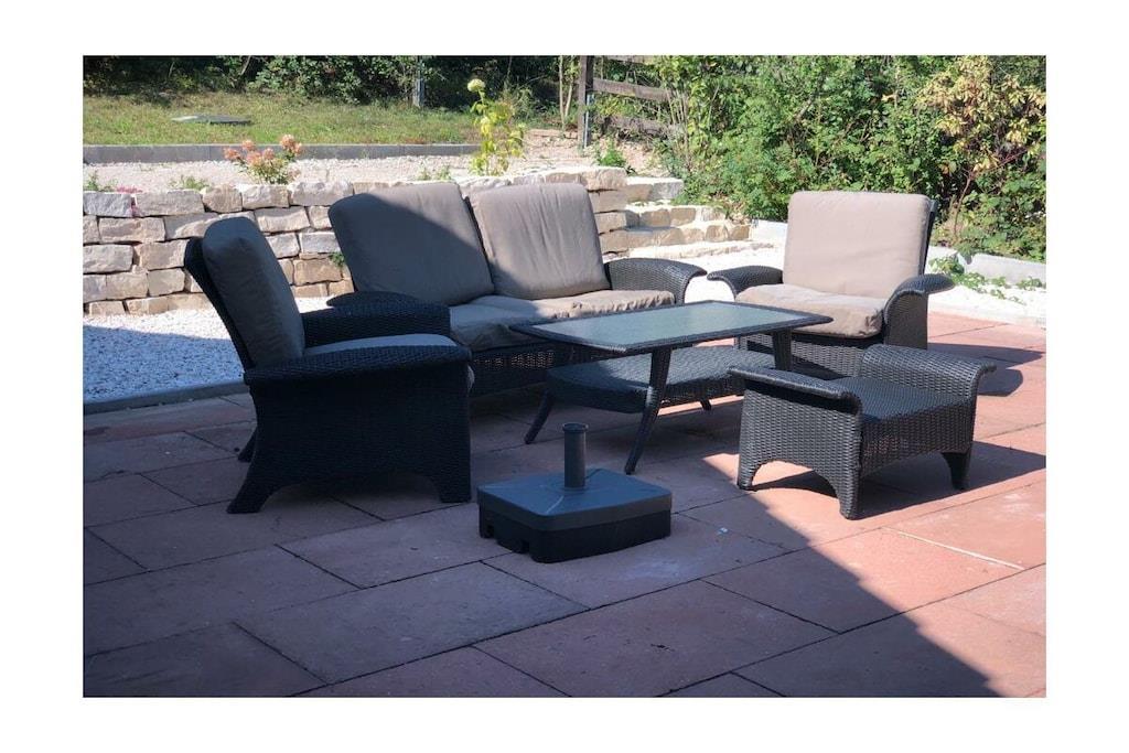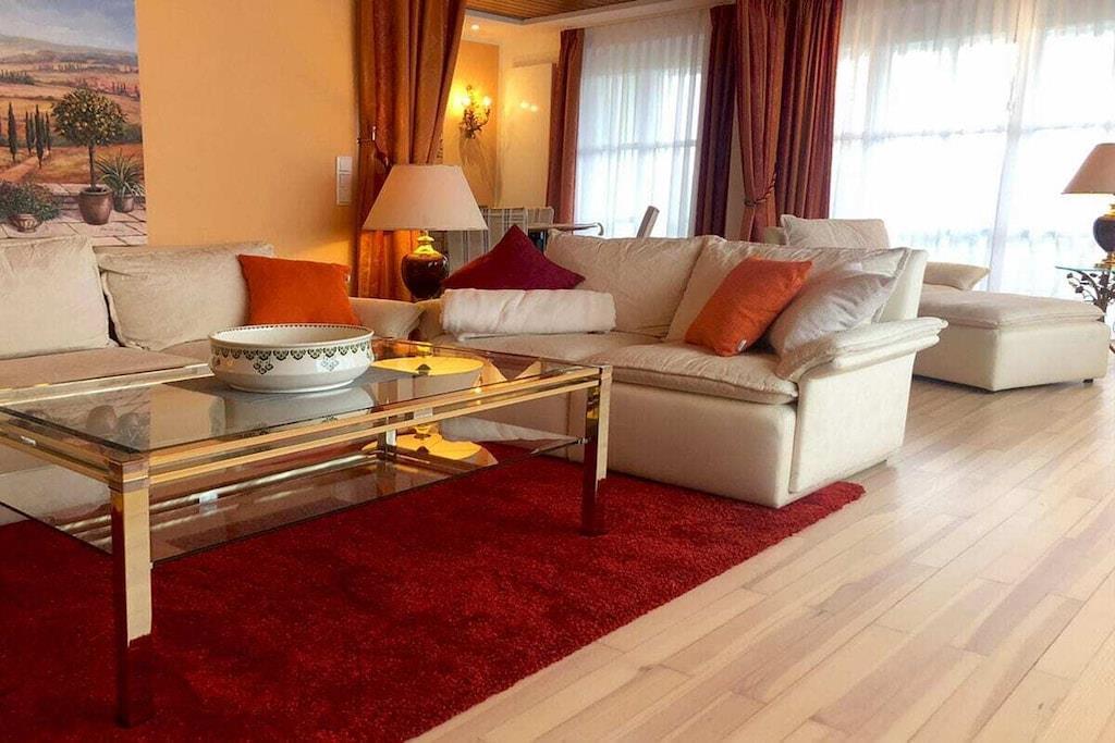 Suchen Sie eine Messe- / Ferienwohnung zum Wohlfühlen? Sie möchten nach einem anstrengenden Messetag die Ruhe genießen und entspannen? Wir bieten Ihnen die perfekten Ferienhäuser in der Nähe zum Nürnberg Messezentrum. Oder genießen Sie auch unser ruhiges Appartement Nahe der Nürnberg Messe. Sie haben die Wahl. Das Ferienhaus erinnert bei der Einrichtung, z. B. Terrakotta Fliesen, echte Messingbeschläge an den Fenstern und Türen, Sprossenfenster, Wand-und Deckenleuchten und Vorhänge an die Toskana. Es ist mit Echtholzparkett ausgestattet und mit liebevollen Details dekoriert. Alle Räume sind komplett möbliert und hochwertig ausgestattet, ebenfalls die Terrassen. Das Ferienhaus verfügt darüber hinaus über einen offenen Kamin im Wohnzimmer, und auf der Terrasse, sowie einem Kachelofen in der Küche. Ebenso verfügt es über eine Zentralheizung und teilweise über eine Fußbodenheizung. Zusätzlich befindet sich im Souterrain ein kleines Appartement für 1 –2 Personen, das getrennt vom Haupthaus angemietet werden kann. Es ist komplett ebenfalls hochwertig ausgestattet.
