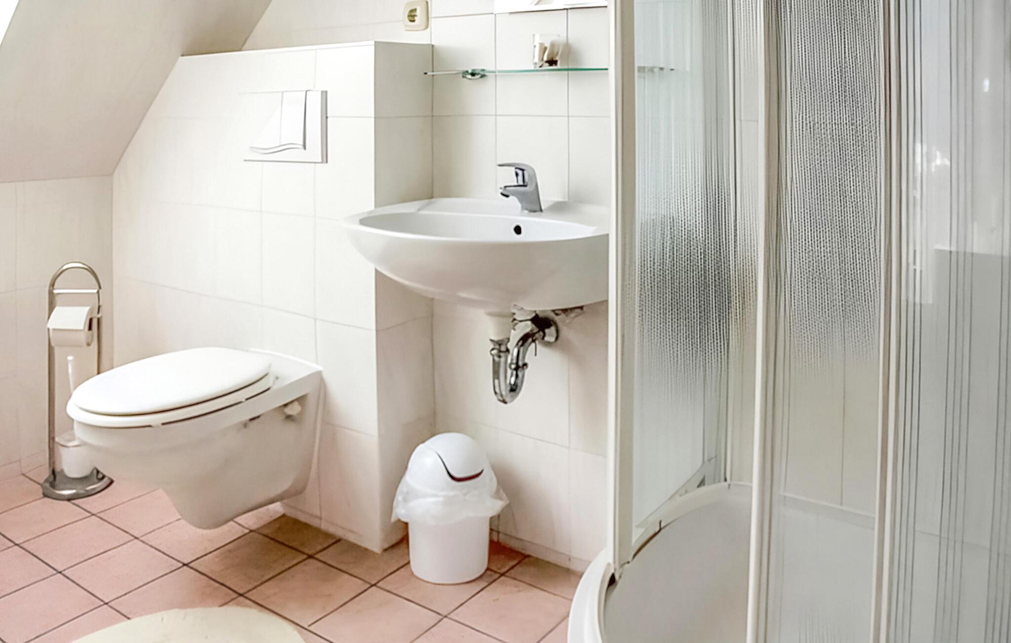 Badezimmer (nr. 1) - WC. Warmes und kaltes Wasser. Dusche
