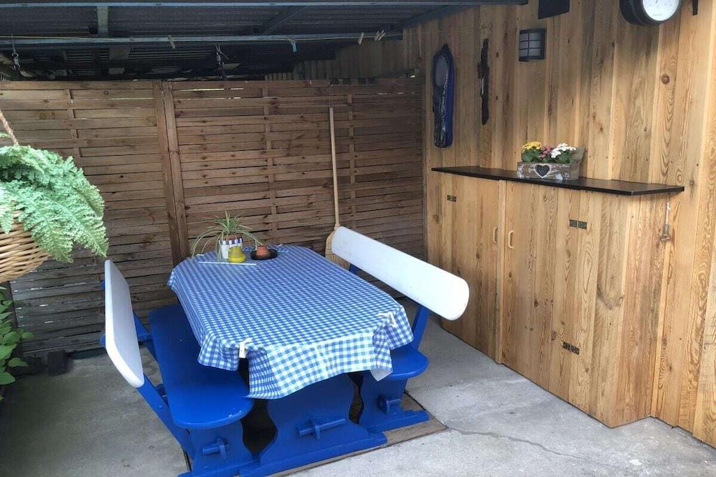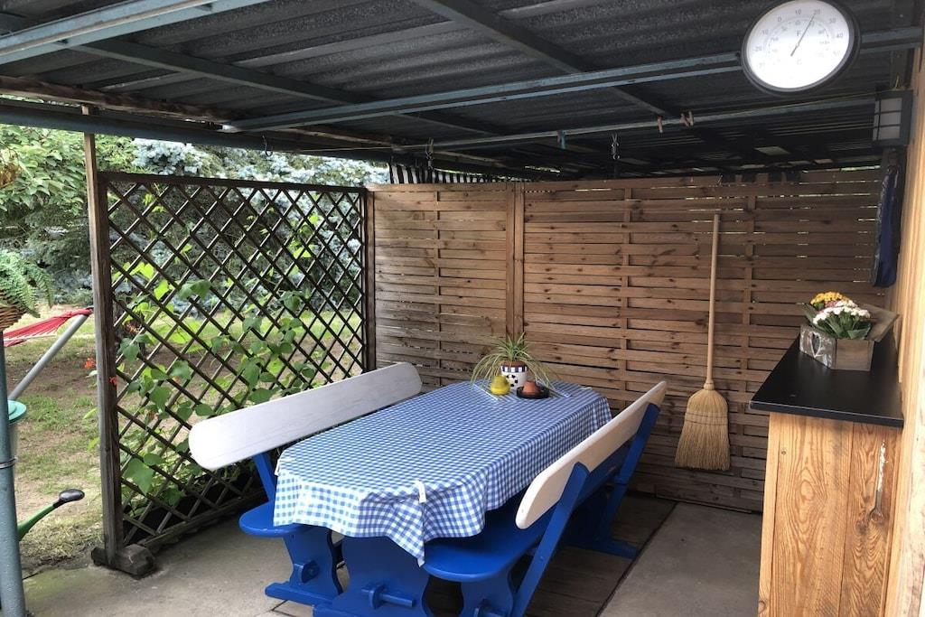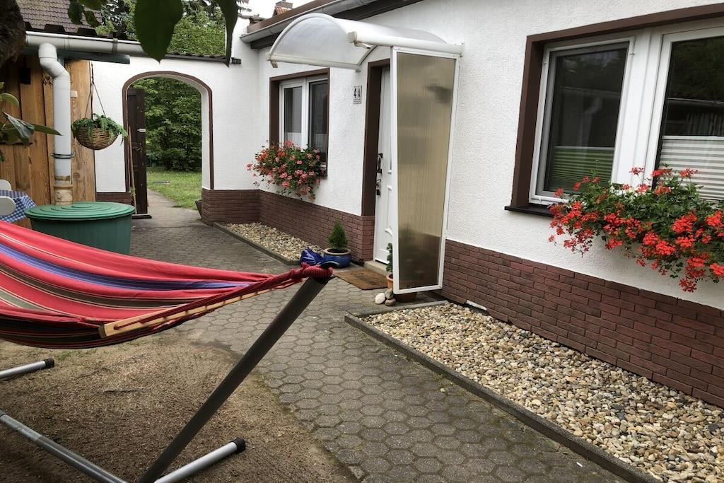 Die Ferienwohnung im massiv gemauerten (wärmeisoliert) Bungalowstil liegt in einer sehr Wald- und Seenreichen Gegend im Teltow Fläming. Die Ferienwohnung bietet ein Wohnzimmer, ein kleines Schlafzimmer, eine Küche und ein WC nebst Dusche. Für laue Sommerabende steht eine überdachte Sitzfläche mit Gartenmöbeln bereit. Ein Grill kann auf Wunsch ebenfalls beigestellt werden. Die Ferienwohnung ist zentral beheizt und steht deshalb ganzjährig zur Verfügung. Zur Ausstattung zählen Satelliten-TV, vollwertiger Elektroherd, Kühl-Gefrierkombination sowie ein Geschirrspüler. Ihr Fahrzeug ist direkt an der Ferienwohnung bestens aufgehoben.