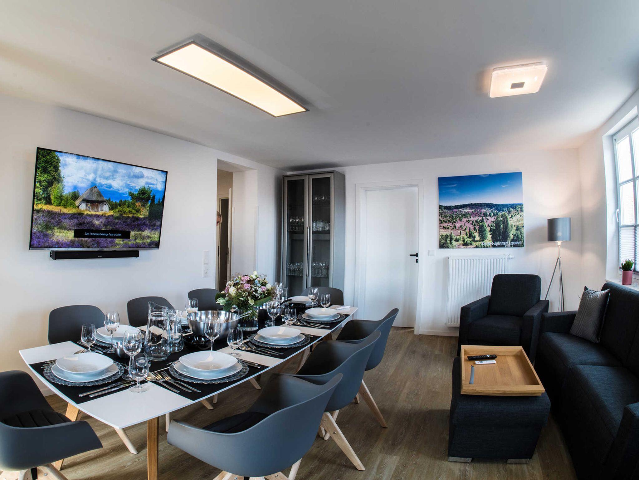 Im Juli 2021 wurde das ebenfalls sehr aufwändig komplettsanierte Komfort- und Wellness-Apartment Lopausee fertiggestellt. Geräumig für 8 Personen mit drei Schlafzimmern mit neuen Hotel-Boxspringbetten, komfortables Schlafsofa im Wohnzimmer, zwei Bäder (1x mit Infrarotsauna + großer Whirlpoolwanne, jeweils große Duschen) sowie einer großen, komplett eingerichteten Einbauküche.