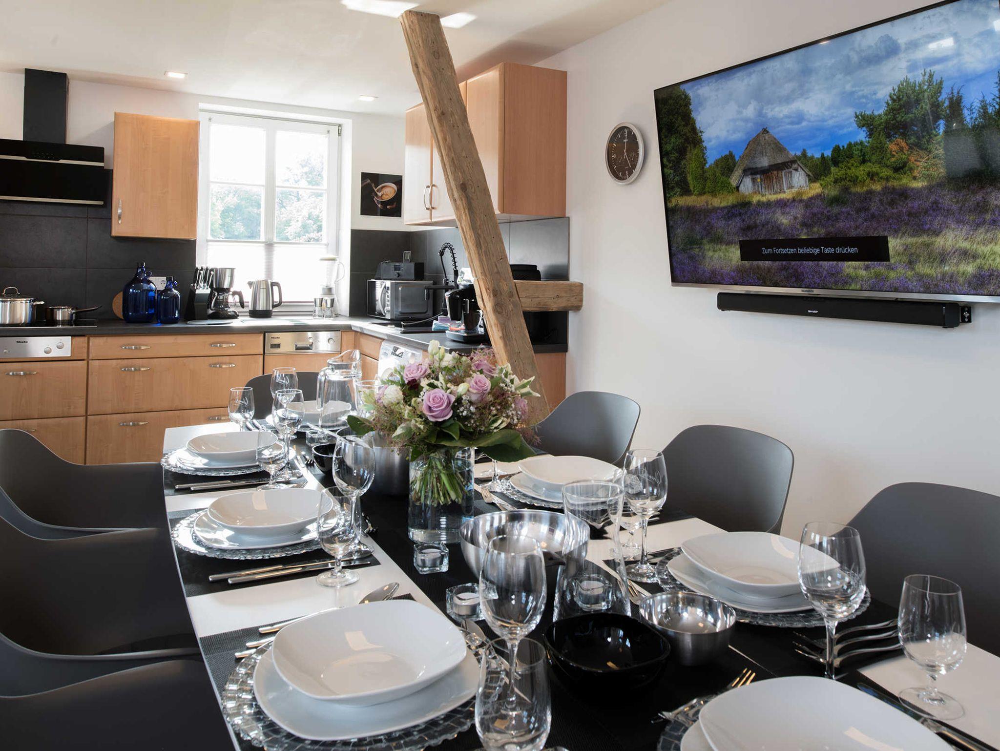 moderne mit allem ausgestattete Einbauküche, 2 Duschbäder, große Whirlpoolwanne und Infrarot-Sauna