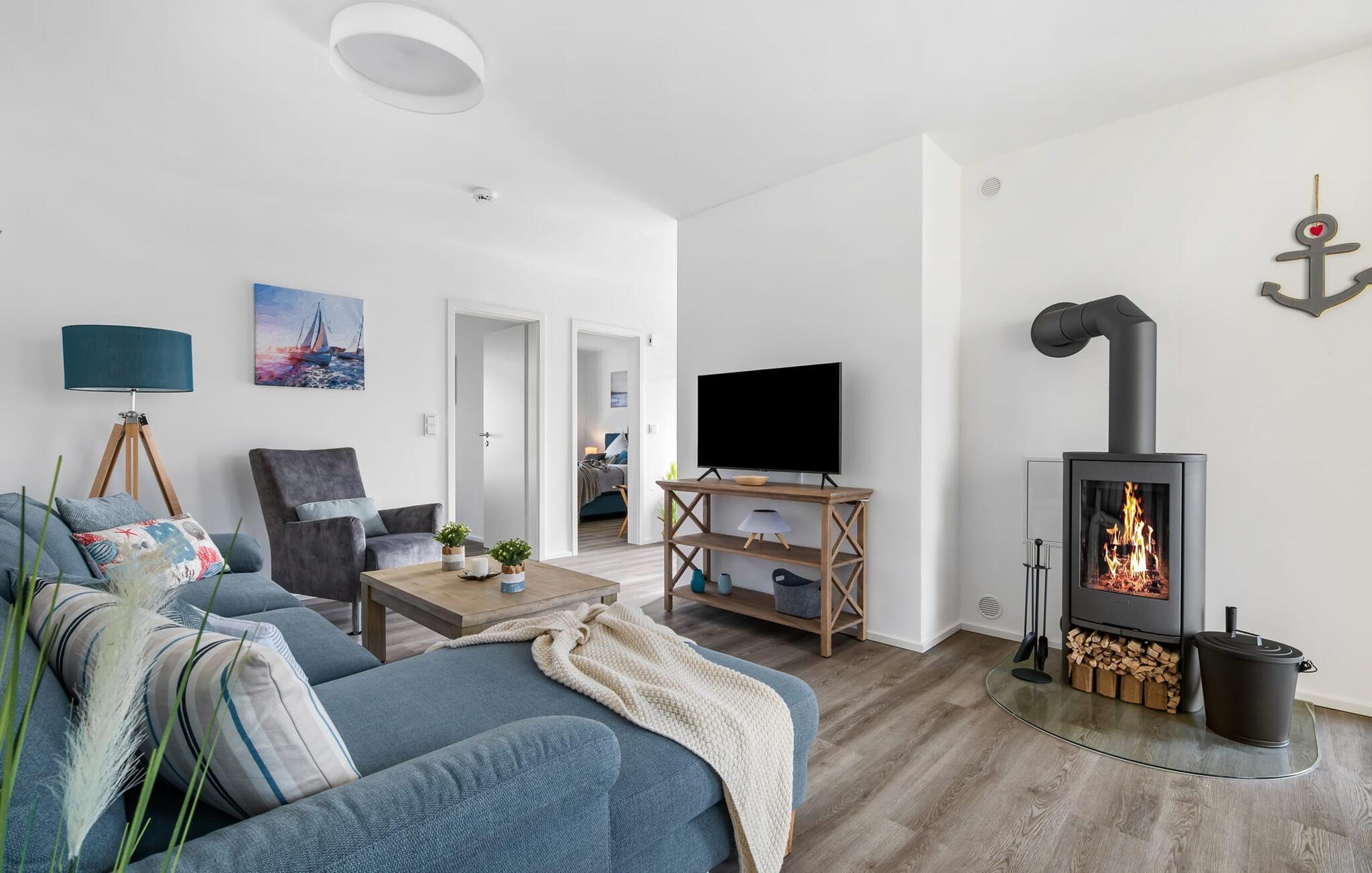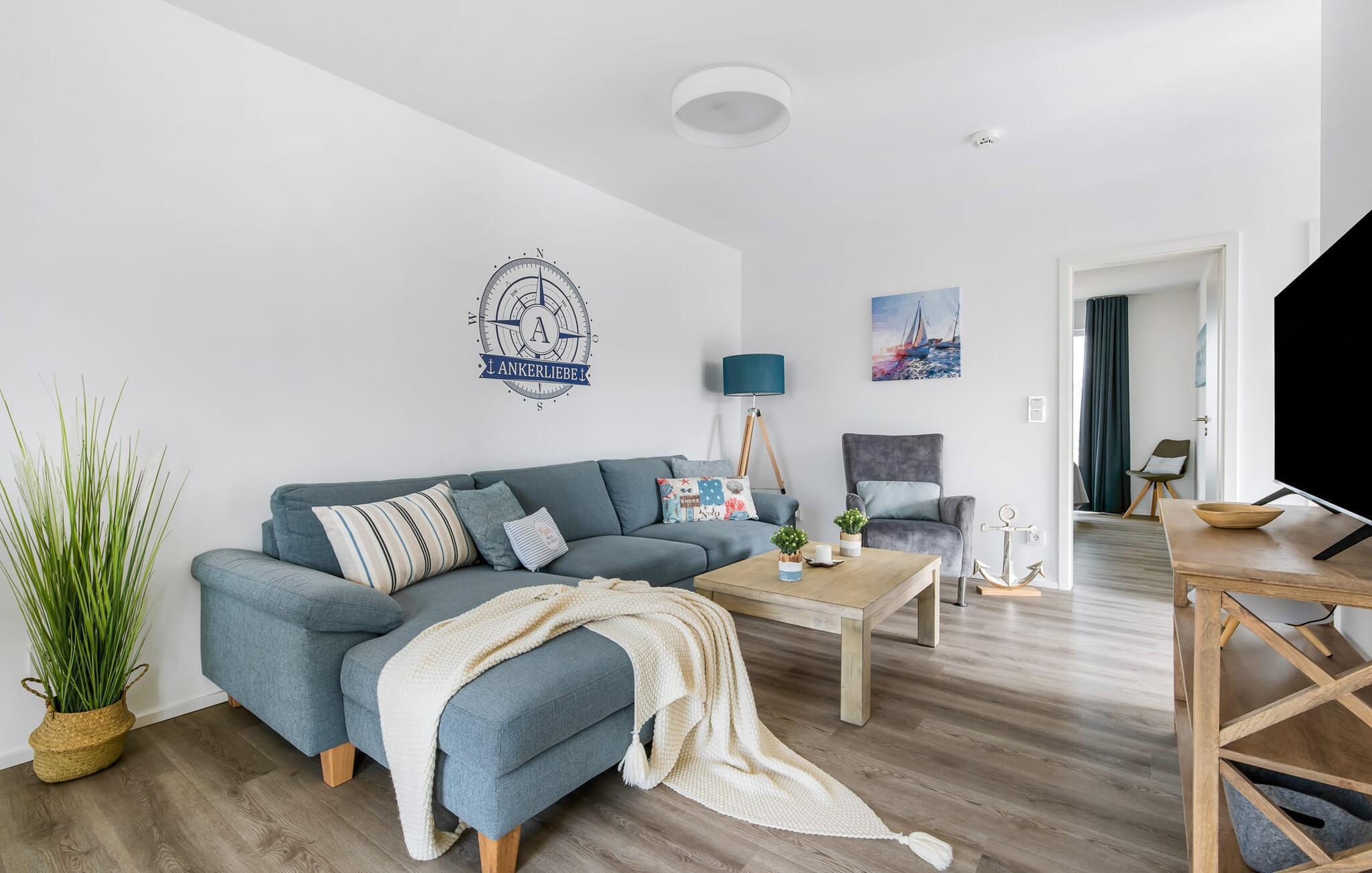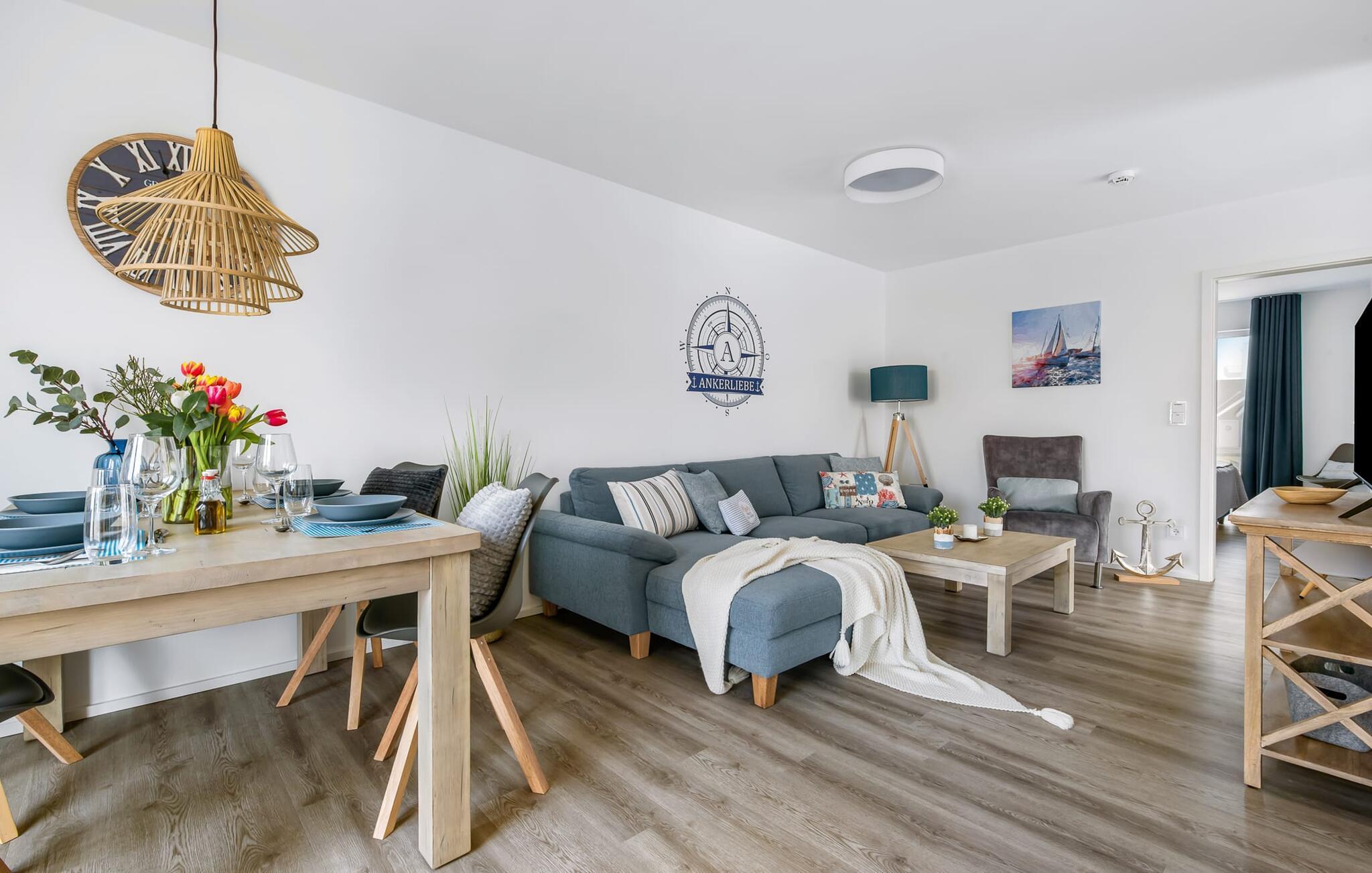 Die Ferienhaushälfte ANKERLIEBE in Olpenitz bietet maritimen Stil, Sauna und Strandnähe für entspannte Tage an der Ostsee.