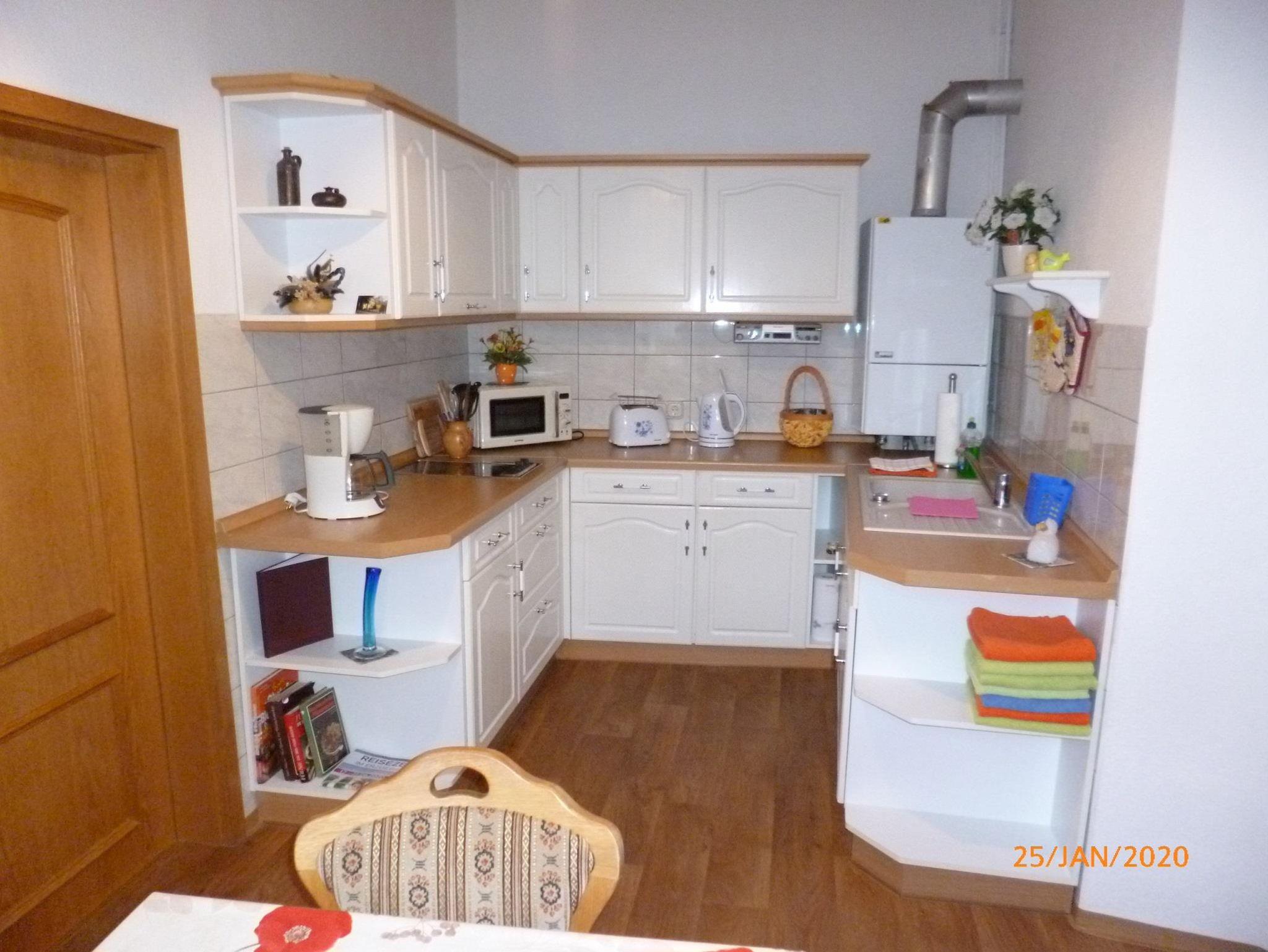In dieser Ferienwohnung finden Sie neben Flur, Küche, Bad mit Dusche/WC auch eine voll ausgestattete Küche mit Cerankochfeld, Toaster, Wasserkocher sowie Kaffeemaschine. Des Weiteren steht Gästen im Wohnzimmer mit TV (Flachbildschirm 42 Zoll), ein Ecksofa und Radio zur Verfügung. Die Ferienwohnung verfügt über ein seperates Schlafzimmer mit Doppelbett und auf Wunsch mit Babybett.
