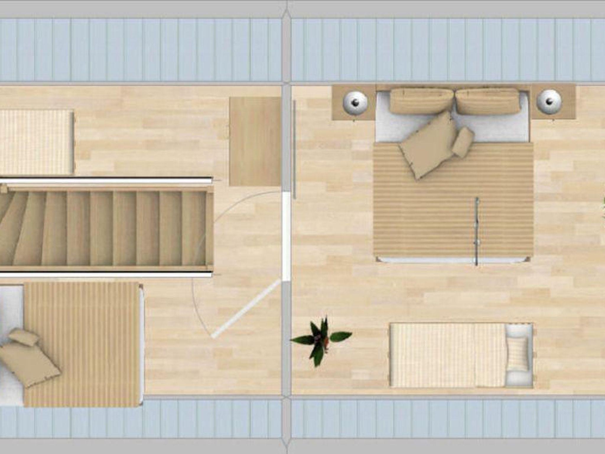 - Galerie: Treppe im Wohnbereich nach oben zur offenen Schlafgalerie mit Boxspringbett 1,60m x 2,00m und Einzel-Boxspringbett 0,90m x 2,00mm, Einbauschrank, von hier aus mit Tür getrennt Zugang zum zweiten separaten Schlafzimmer mit Boxspringbett 1,80m x 2,00m und Einzel-Boxspringbett 0,90m x 2,00m
