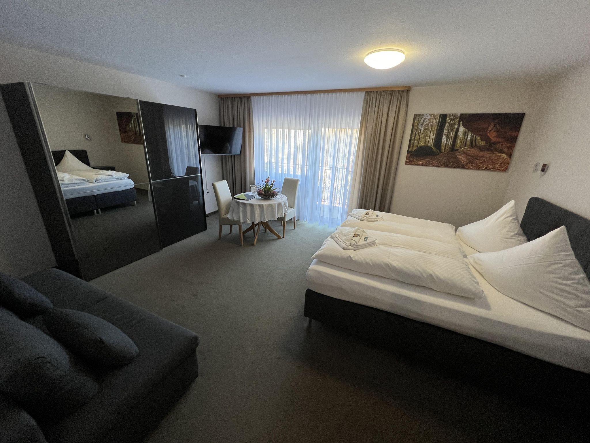 Schöne, ruhig gelegene Pension am Ortsende von Annweiler. Gutes Frühstück und großes Zimmer mit Balkon war für uns passend.