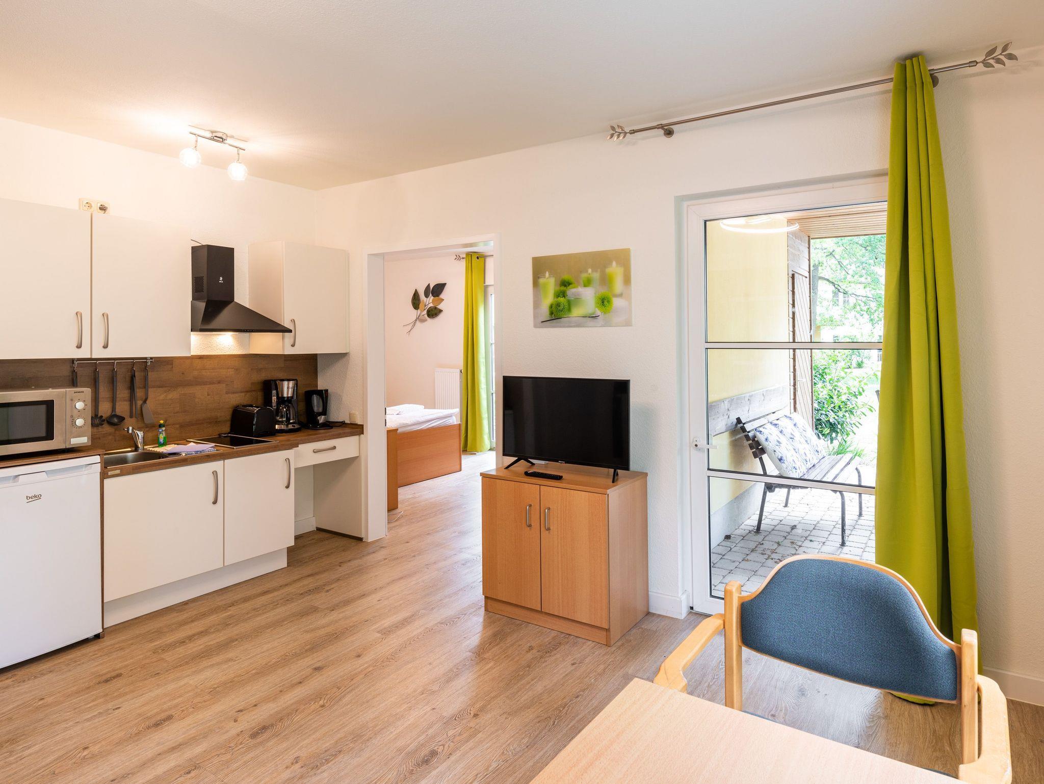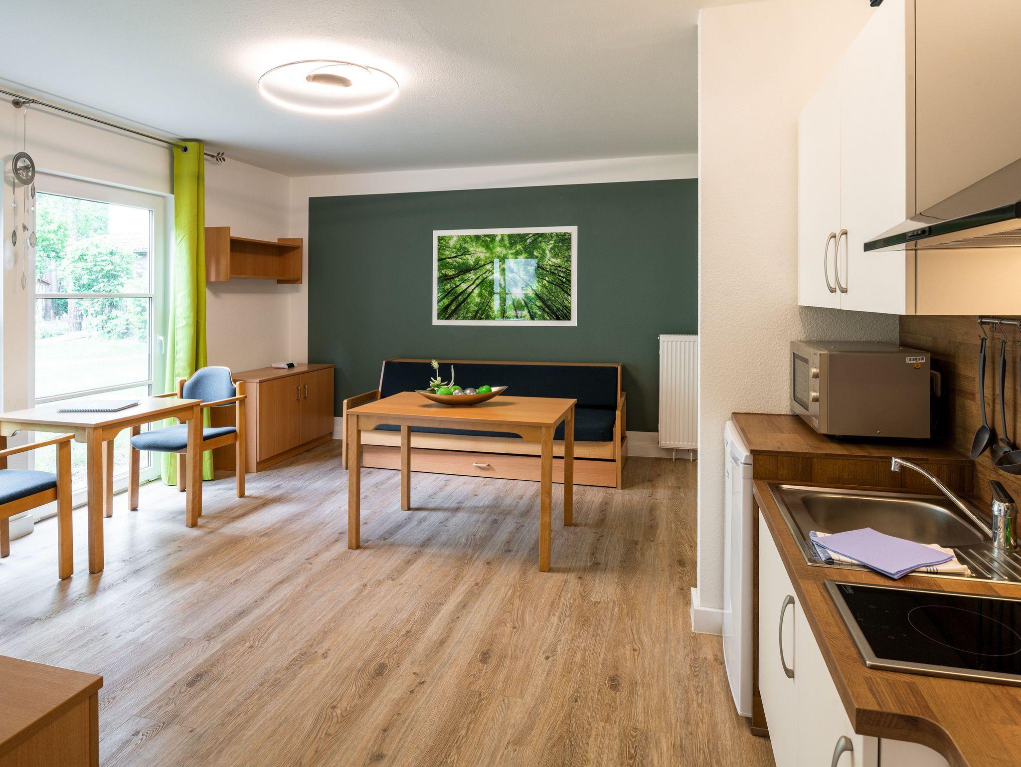 Fünf eingeschossige Appartements mit jeweils 40 m² bieten Unterkunft für jeweils zwei Personen. Jedes kleine aber feine Ferienappartement liegt hell und ruhig eingebettet im IDA Integrationsdorf. Hier kann man genüsslich ausspannen mit allem Urlaubskomfort inmitten der wunderschönen waldigen Landschaft. Das schadstoffarm ausgestattete IDA Ferienappartement in unmittelbarer Nähe vom Arendsee verfügt über zeitgemäße Bodenbeläge (in der Regel Parkett oder Linoleum) und ist modern eingerichtet. Gäste können neben dem Wohnbereich mit TV eine kleine Einbauküche sowie ein Badezimmer nutzen. Für Wäsche stehen während des Aufenthalts im Ferienappartement selbstverständlich auch Waschmaschinen und Trockner auf dem IDA Gelände zur Verfügung.
