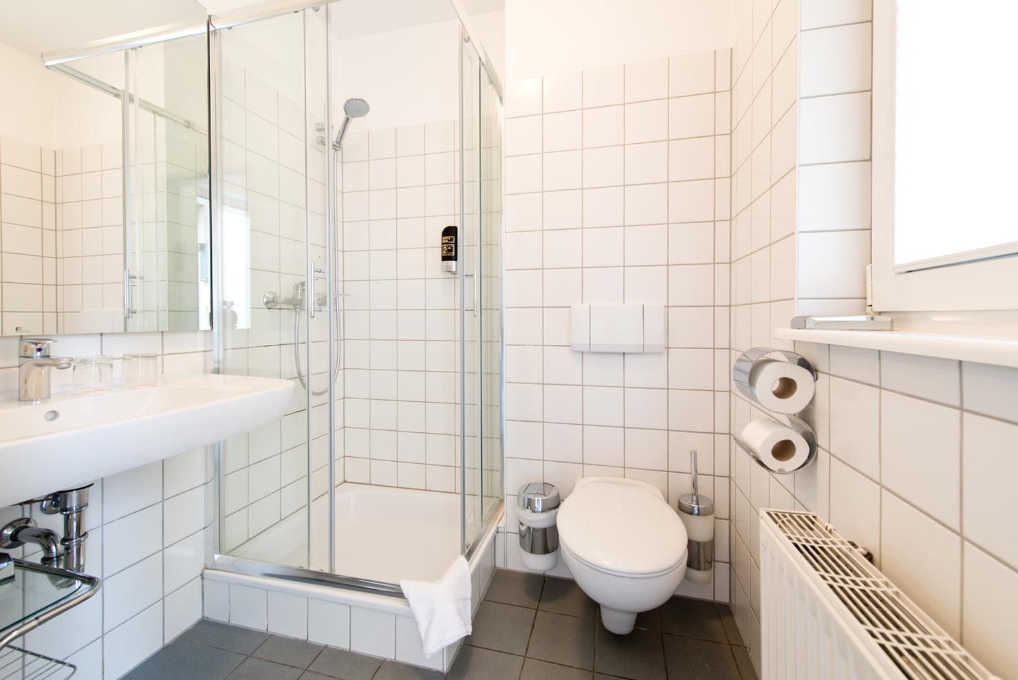 • Bad mit Dusche, WC & Fön