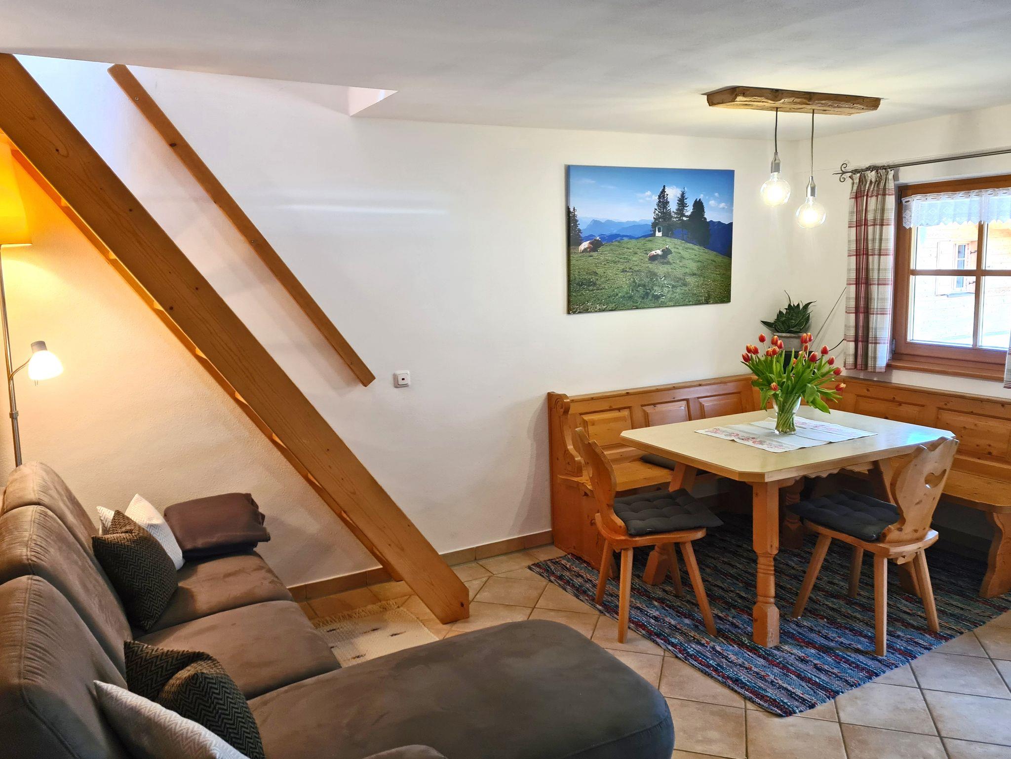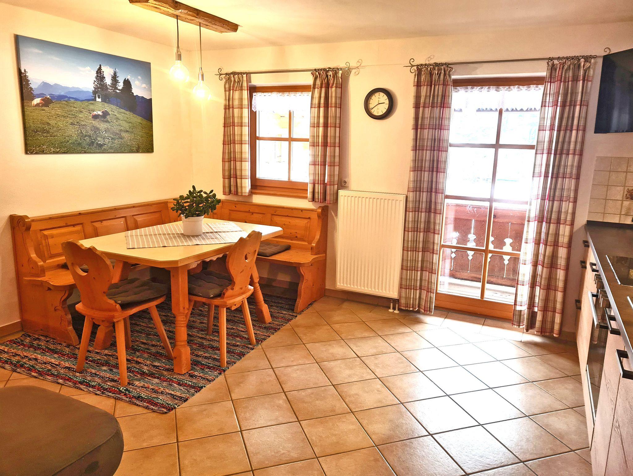 Bei uns können Sie einen großen Garten mit Grillmöglichkeit nutzen und wir bieten Ihnen einen Brötchenservice und auf Wunsch auch einen Einkaufs- und Getränkeservice. Zum Frühstück erhalten Sie regionale Erzeugnisse aus Bayern und Tirol, gerne dürfen Sie Eier von unseren eigenen Hühnern erwerben. Im Sachranger Dorfladen 1 km entfernt, gibt es Bioprodukte und regionale Spezialitäten zu kaufen. Außerdem betreiben wir eine kleine Landwirtschaft mit Pferden, Ziegen, Katzen, Hasen und Hühnern. Auch eine Kutschfahrt ist auf Anfrage möglich. Bei Bedarf gibt es die Möglichkeit im Ort Räder auszuleihen. Die Busverbindung Sachrang - Aschau bis Bernau/Felden am Chiemsee ist für Sie mit der Gästekarte kostenlos. Haustiere und Hunde dürfen nicht mitgebracht werden. Kostenloses WLAN.