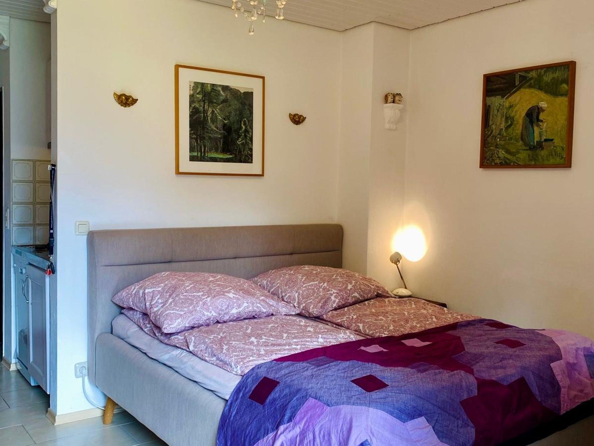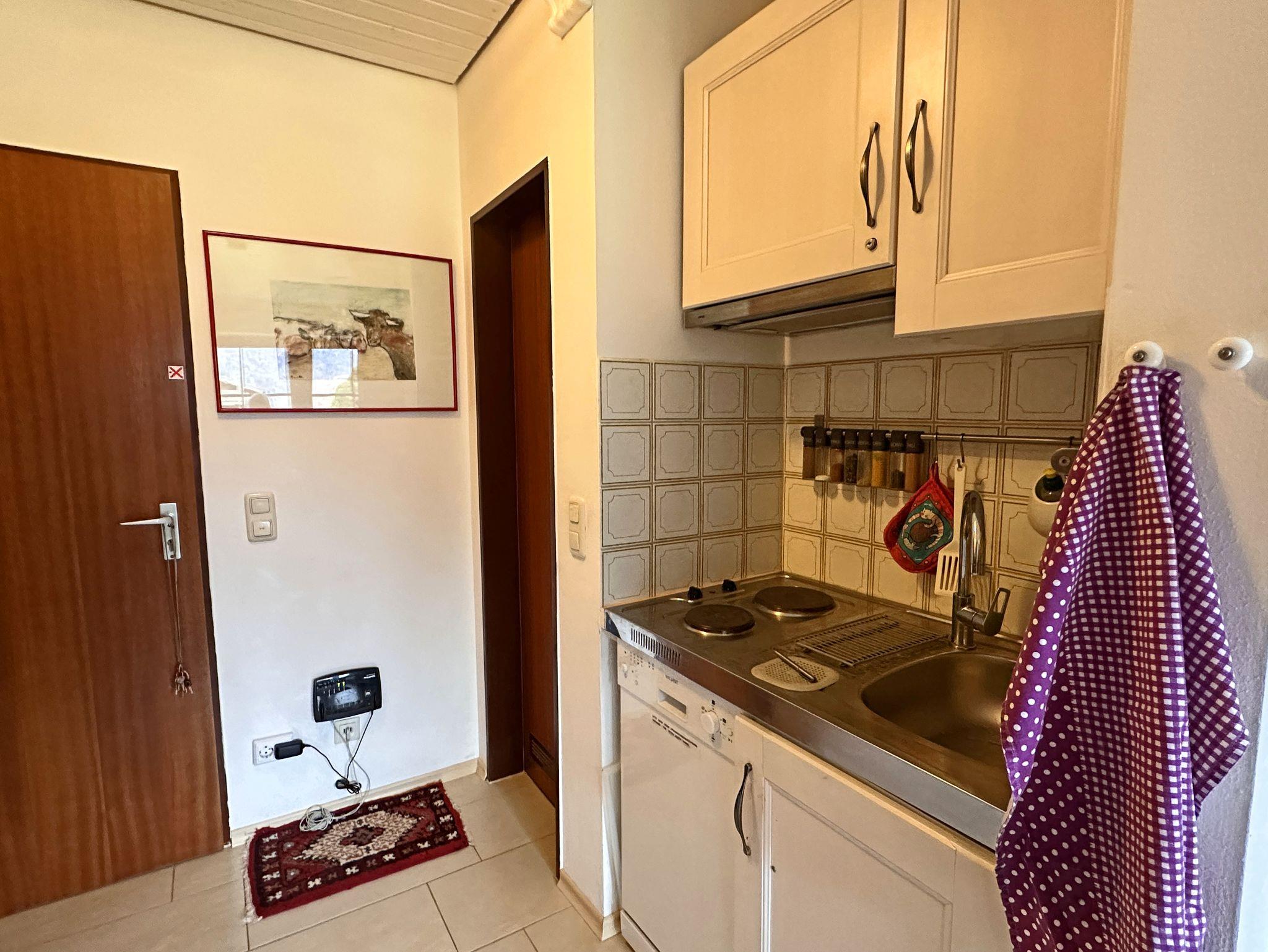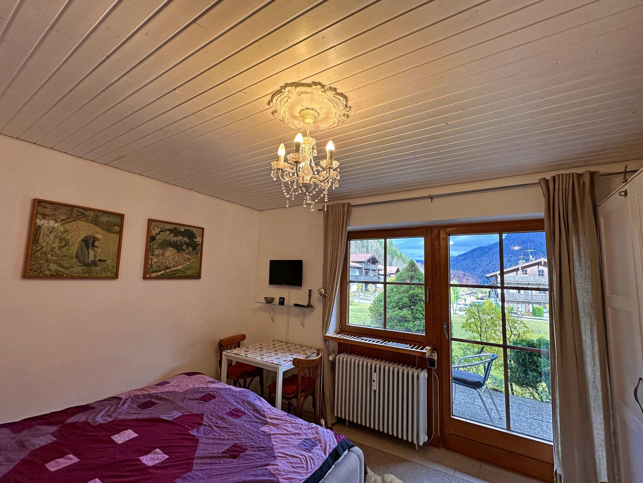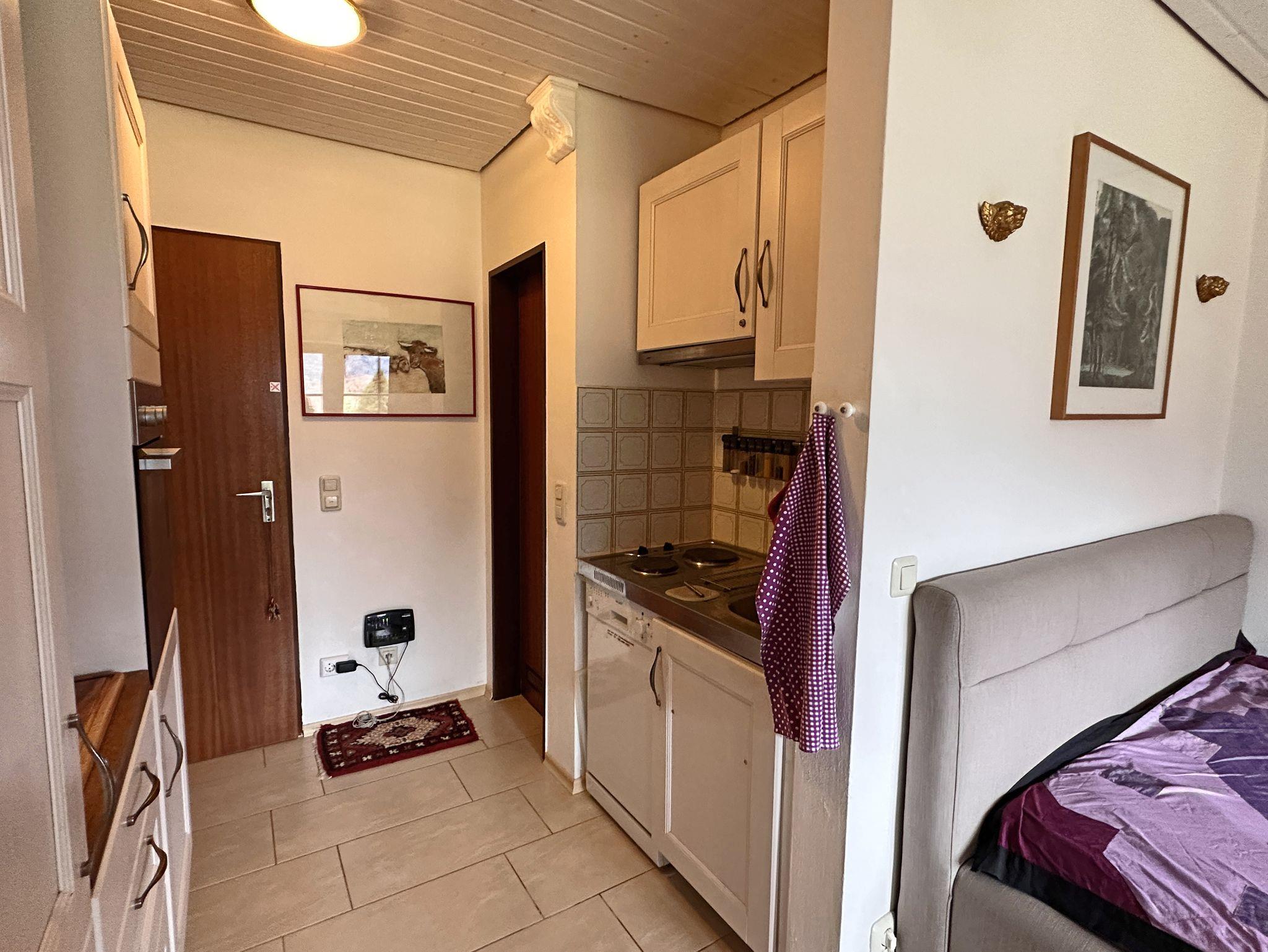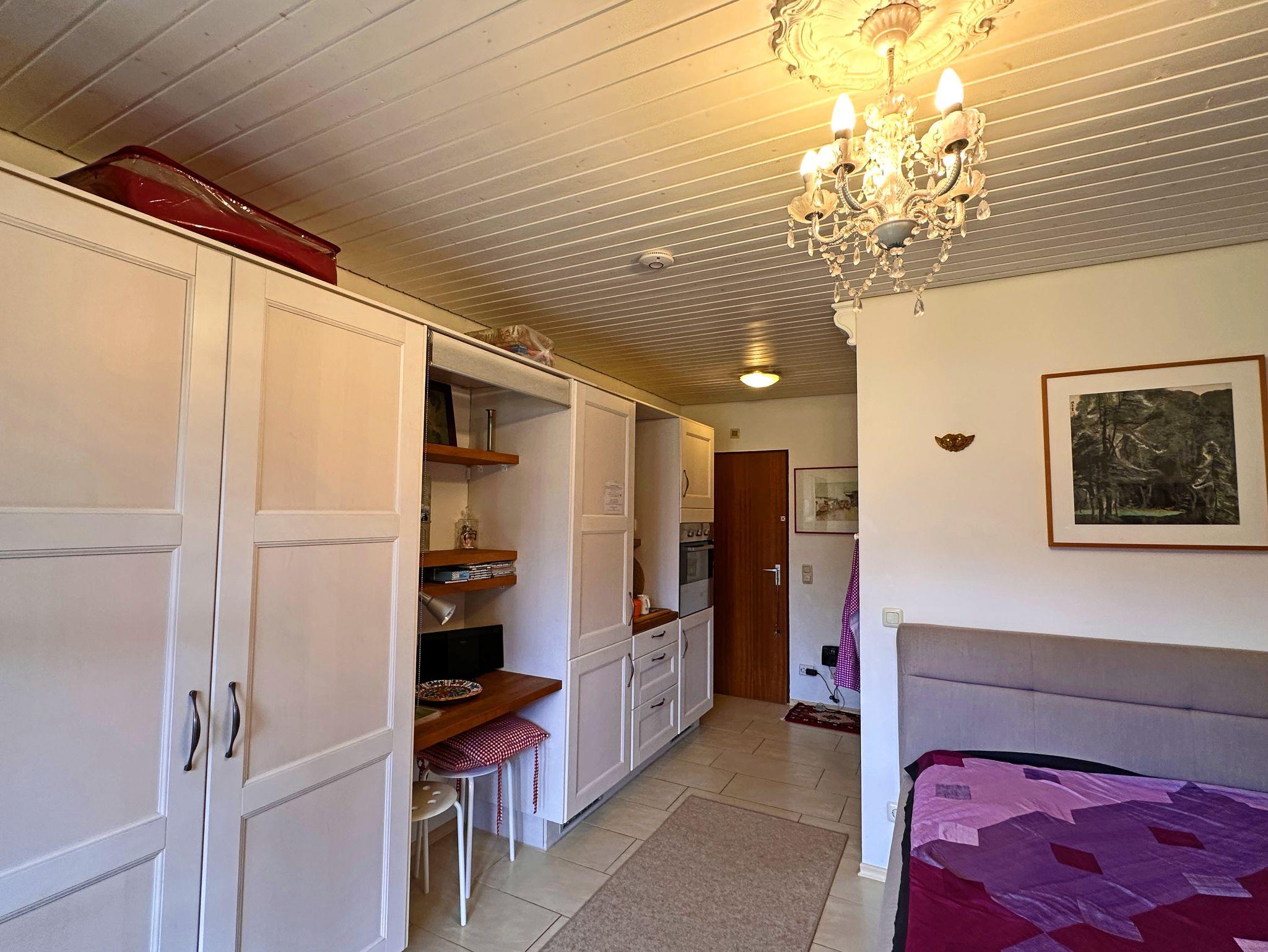 Sehr schöne und geschmackvoll eingerichtete Ein-Zimmer-Ferienwohnung in ruhiger Bergwelt. Schöner Ausblick auf die Berge von der Terrasse mit Gartenmöbeln. In unserem Apartment gibt es ein komfortables Doppel-Polsterbett 160x200 cm, mit neuen 7-Zonen-Kaltschaummatratzen, eine Ess- und Sitzecke, einen Schrank, Flat-Sat-TV mit integriertem DVD Player und kostenloses WLAN. Voll ausgestattete Küchenzeile mit Backofen. Ein elektrischer Grill-Raclette kann innen und außen genutzt werden. Ideal für Singles und Paare, gerne auch mit Baby und Hund. Gerne darf auf der Terrasse geraucht werden, ein Aschenbecher ist für die Raucher vorhanden.