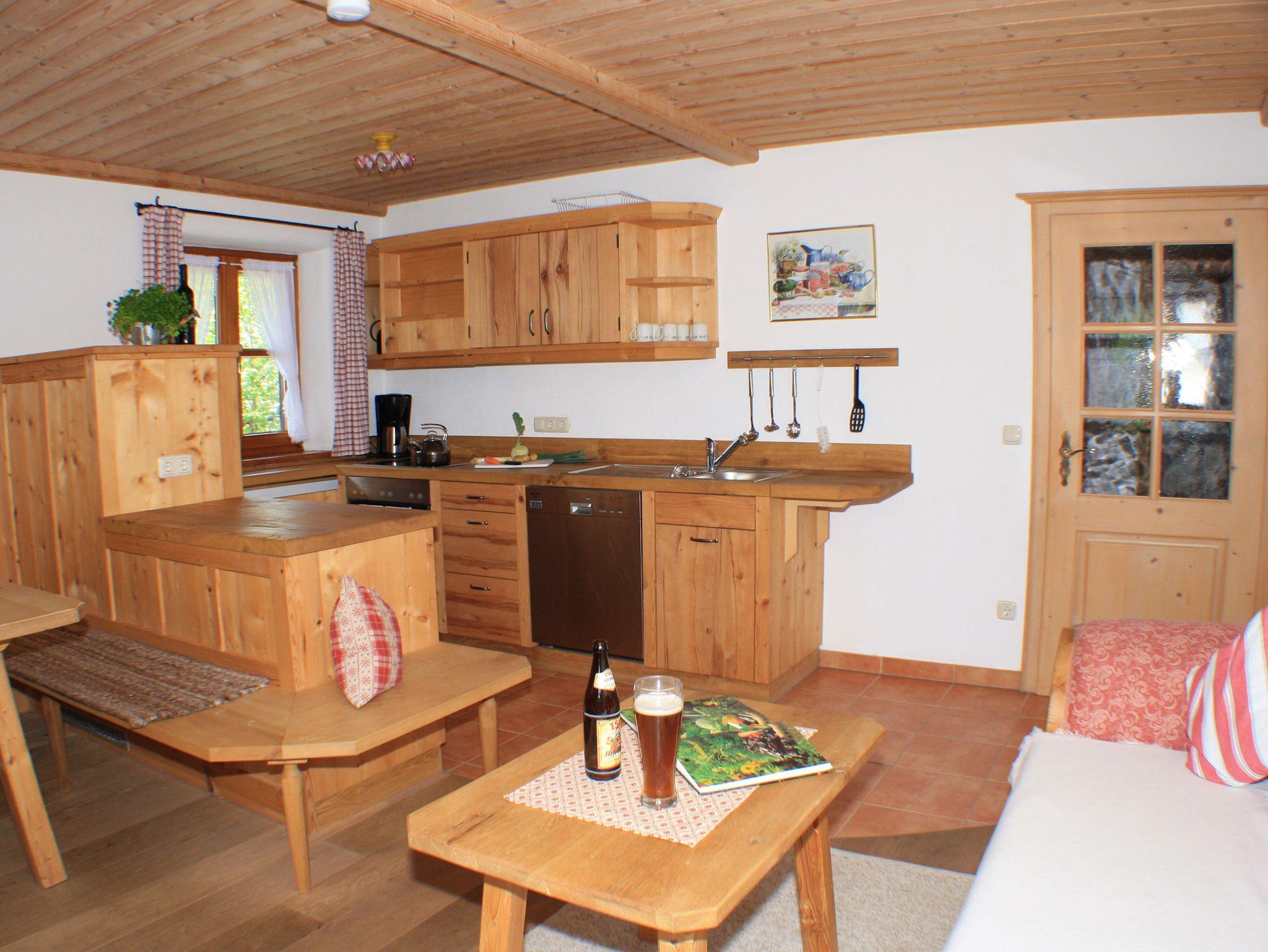 Geräumige Ferienwohnung Wilder Kaiser zum Wohlfühlen im Zuhäusl neben dem Simmerl-Bergbauernhof. Die neue Wohnküche bietet Komfort und Behaglichkeit. Ankommen und sich zu Hause fühlen. Ein großer Balkon - die Berge vor Augen - Urlaub für die Seele. Die geschreinerte Wohnküche mit behaglicher Sitzecke, Sofa und Flat-Sat-TV ist mit Cerankochfeld und Backofen, Kühlschrank, Geschirrspülmaschine und Kaffeemaschine ausgestattet. Von den drei Schlafzimmern bieten zwei Doppelbetten und das Kinderschlafzimmer ein Stockbett. Tief und erholsam schlaften Sie im Zirbenschlafzimmer dieser Wohnung. Auf dem Balkon finden Sie Balkonmöbel vor. Das Badezimmer verfügt über eine Dusche und WC. Nichtraucher. Hund willkommen.