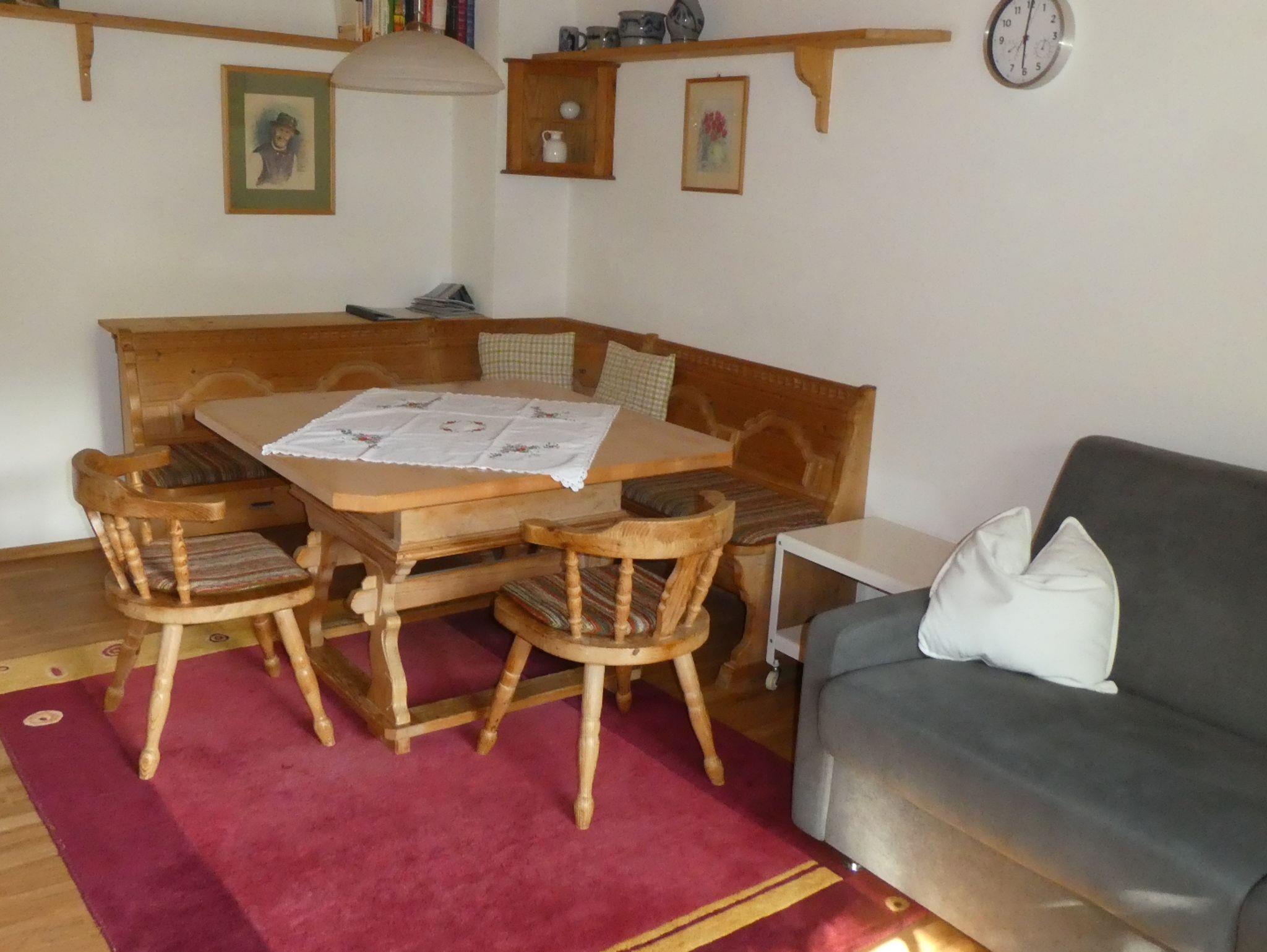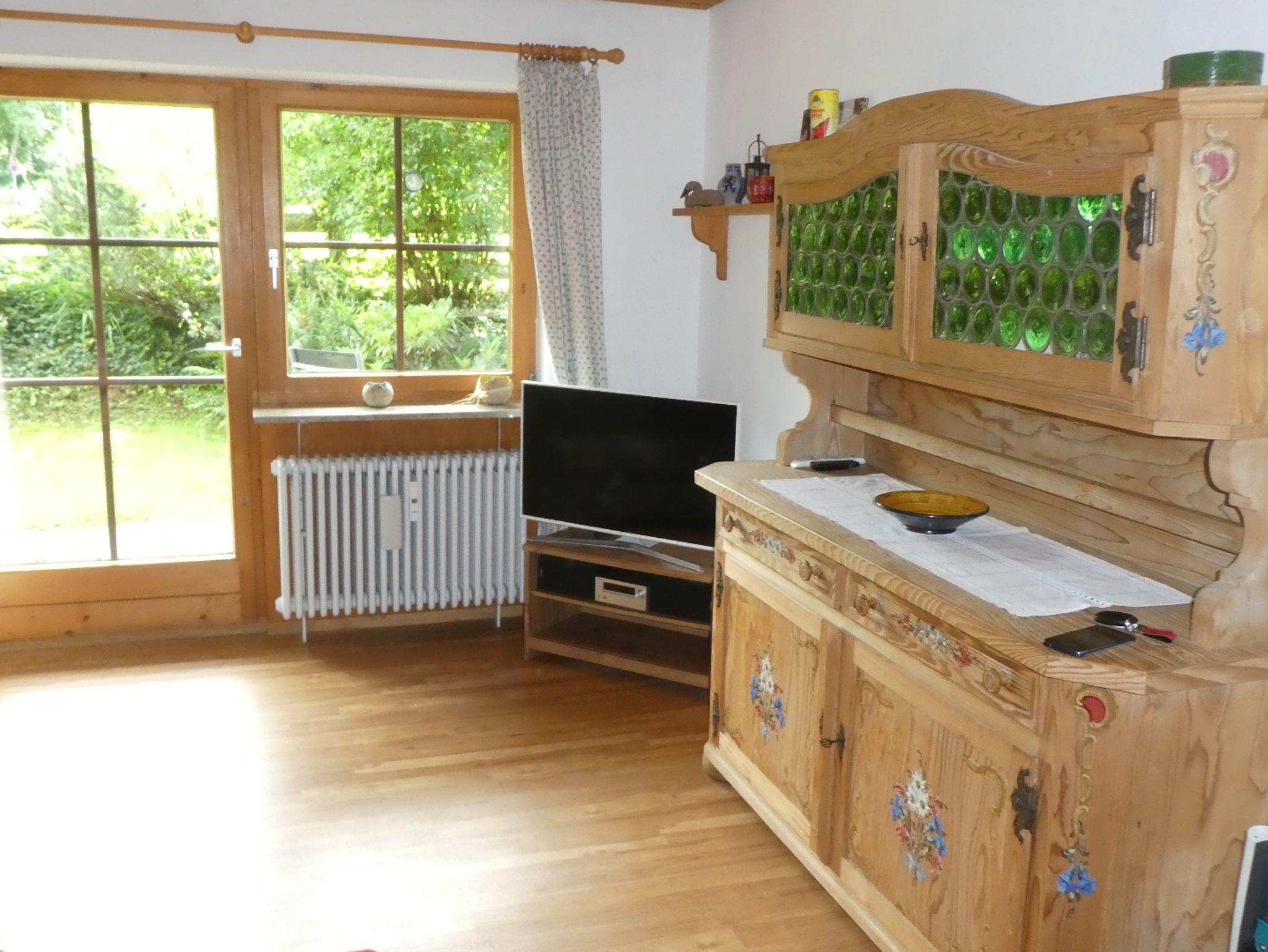 Die gemütliche Ferienwohnung von ca. 50 qm Wohnfläche besteht aus einem im bayerischen Stil eingerichteten Wohnzimmer mit rustikaler Eckbank und Sofa, sowie einem großen Fernseher, einem kleinen Schlafzimmer (Betten: 1,60 x 2,00 m), einer separaten Küche mit Cerankochfeld, kleinem Backofen und Kühlschrank, einem Bad mit Dusche und WC und einer großen Sonnenterrasse mit Gartenmöbel in Richtung Süden. Bettwäsche und Handtücher sind inklusive. Die Nichtraucher-Wohnung ist für maximal 4 Personen geeignet. Haustiere und Hunde dürfen nicht mitgebracht werden.
