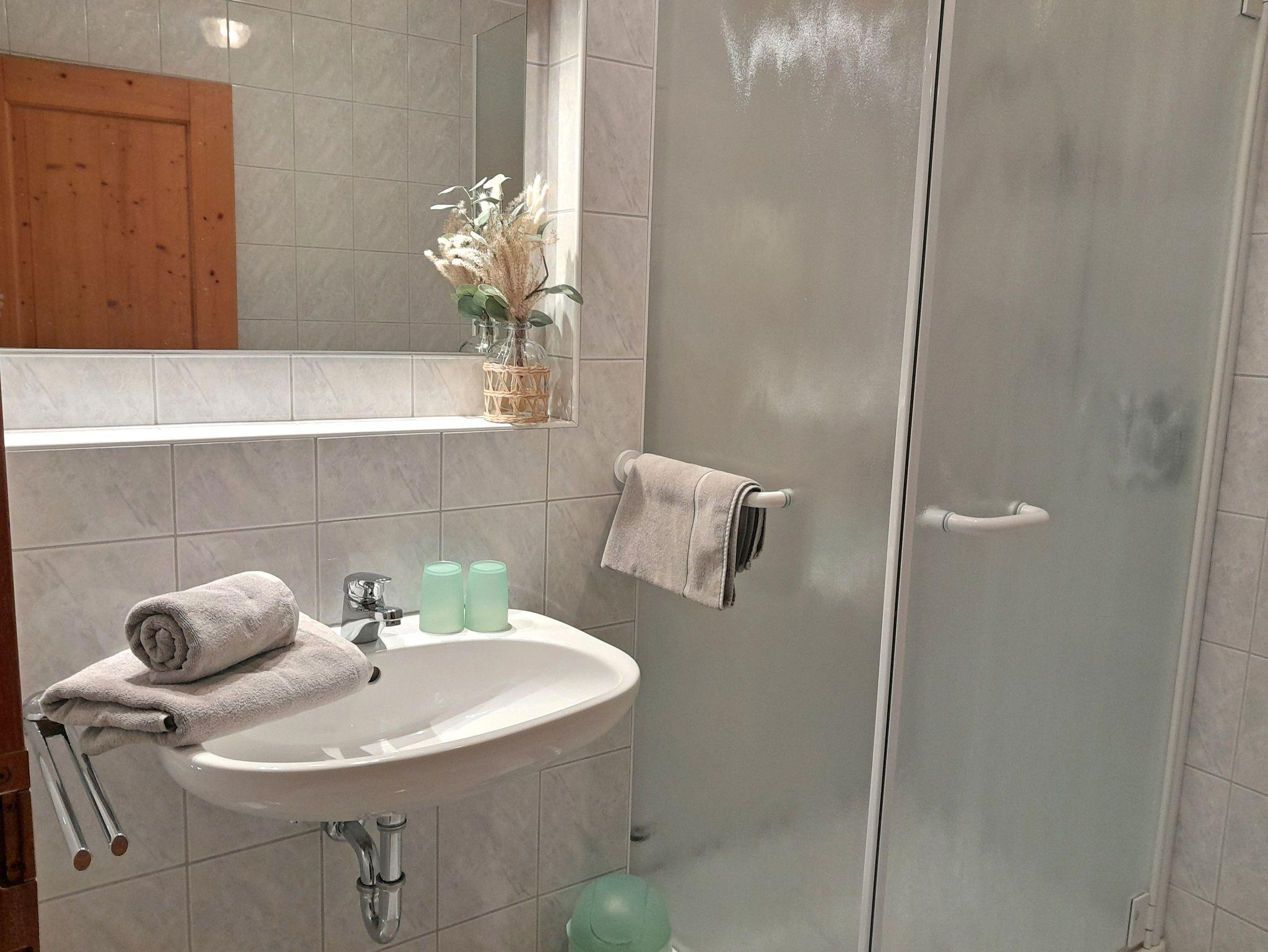 Willkommen in Ihrem Nichtraucher-Doppelzimmer, das alles bietet, was Sie für einen entspannten Urlaub brauchen. Im 1. Stock gelegen und bequem per Lift erreichbar, erwartet Sie eine gemütliche Atmosphäre für Ihre persönliche Auszeit. Im Zimmer stehen Ihnen ein Flat-Kabel-TV und kostenloses WLAN zur Verfügung, sodass Sie nach einem erlebnisreichen Tag entspannen können. Für den kleinen Genuss am Morgen sind eine Filterkaffeemaschine und ein Wasserkocher vorhanden. Auf dem Gang befindet sich Ihr eigener Kühlschrank mit Tiefkühlfach, sowie eine Mikrowelle zur gemeinsamen Nutzung mit anderen Gästen – praktisch für eine schnelle Mahlzeit zwischendurch. Ihr gemütliches Doppelzimmer mit eigenem Bad mit Dusche/WC sorgt für maximale Privatsphäre und Erholung. Bitte beachten Sie, dass Hunde und Haustiere nicht mitgebracht werden dürfen. Genießen Sie Ihre wohlverdiente Pause in diesem charmanten Rückzugsort – für einen unbeschwerten Urlaub!