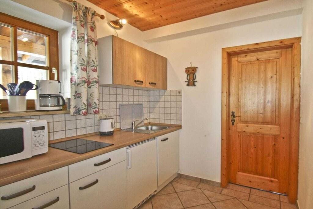 Gemütliche, sehr ruhige, ebenerdige Ferienwohnung mitten in den Bergen am Fuße der Kampenwand und Chiemgauer Berge. Die Wohnung liegt auf 835m Höhe. Parken bei der Eingangstüre. Große Terrasse mit Blick auf Wald, Wiesen und Berge laden ein zum Faulenzen, Relaxen, Entspannen, Lesen... Sie sind total ungestört und der Platz gehört nur Ihnen alleine.Hören die Vögel und sehen unseren Kühen beim Grasen zu. Sehr gut ausgestattete Küche mit Mikrowelle, 2 Herdplatten, Kühlschrank mit Gefrierfach, 1 Wohnbereich mit Sitzecke und Ausziehcouch für 3. Person. TV, großes Bad mit Dusche und Fußbodenheizung und 2 Fenster, Schlafzimmer mit Parkett, Betten ohne Fußende, 200x200. Von der Ferienwohnung starten Sie direkt zu den Almen und ins Wandergebiet.