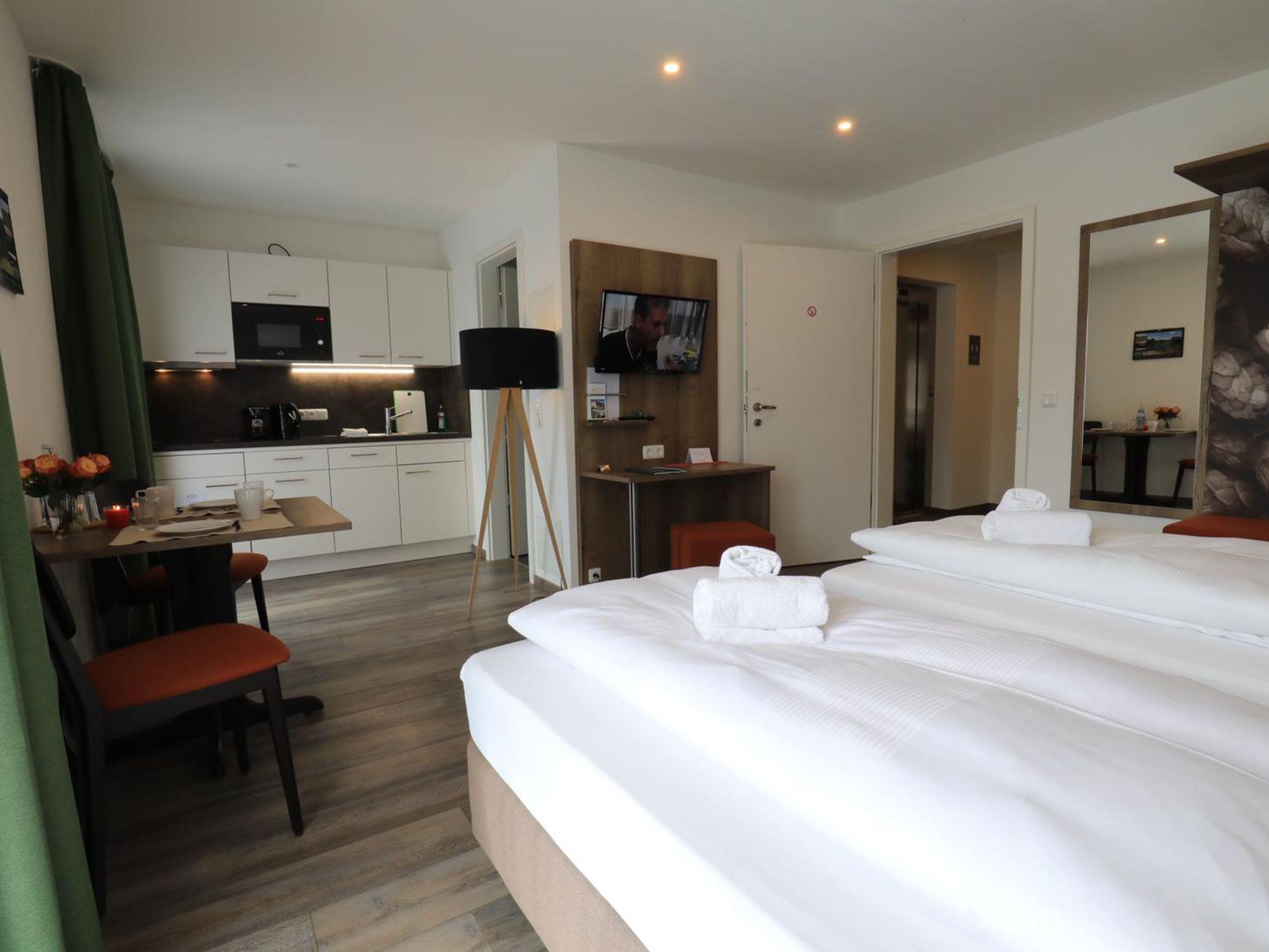 Geschäftsreisende schätzen auch den kultivierten Charme unserer Apartments sowie die ruhige Lage mit gleichzeitig guter Verkehrsanbindung für Autofahrer (A93 Wolnzach).