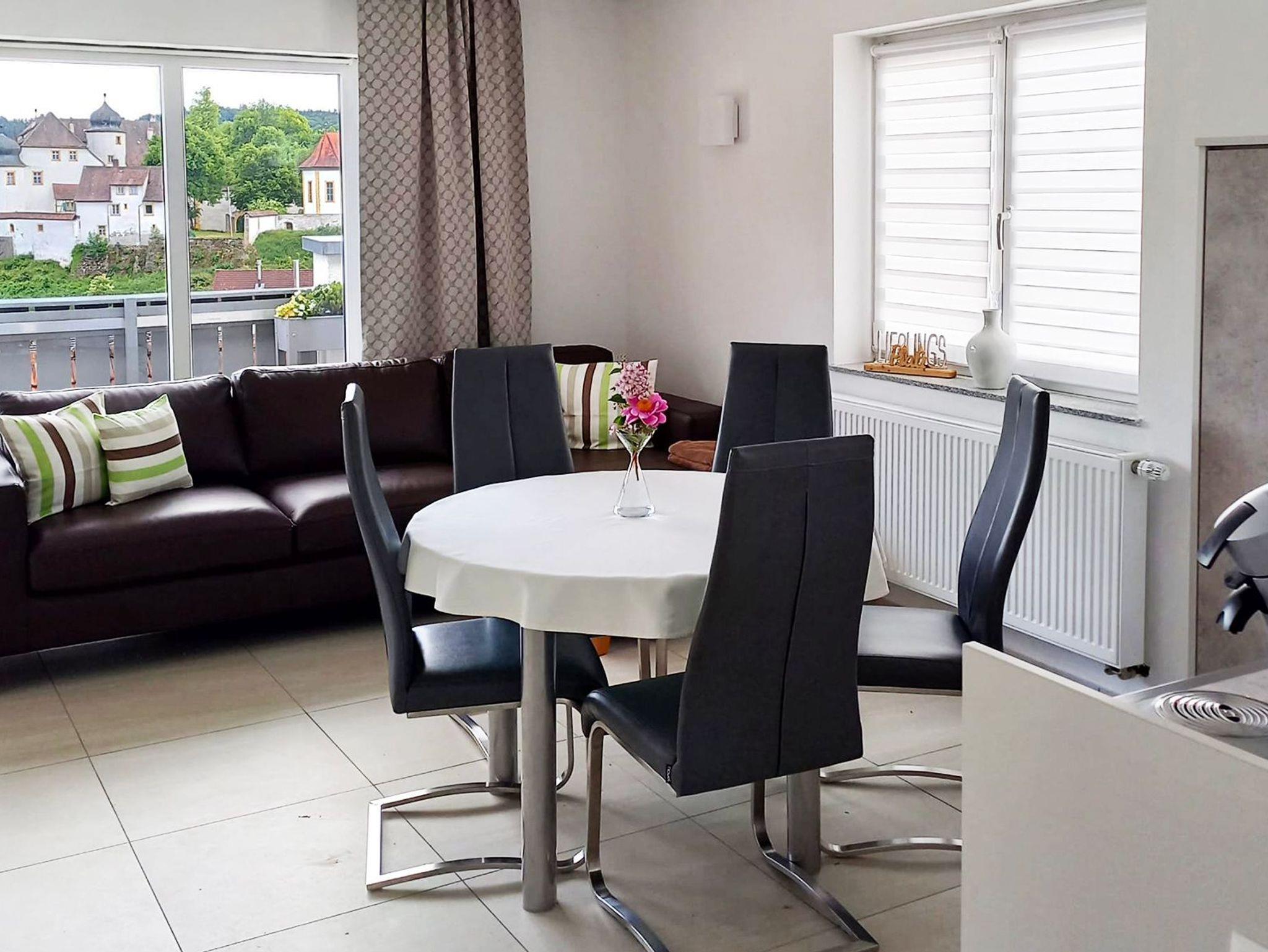 Von der offenen Wohnküche haben Sie einen wunderbaren Blick auf das Schloß von Aufseß.