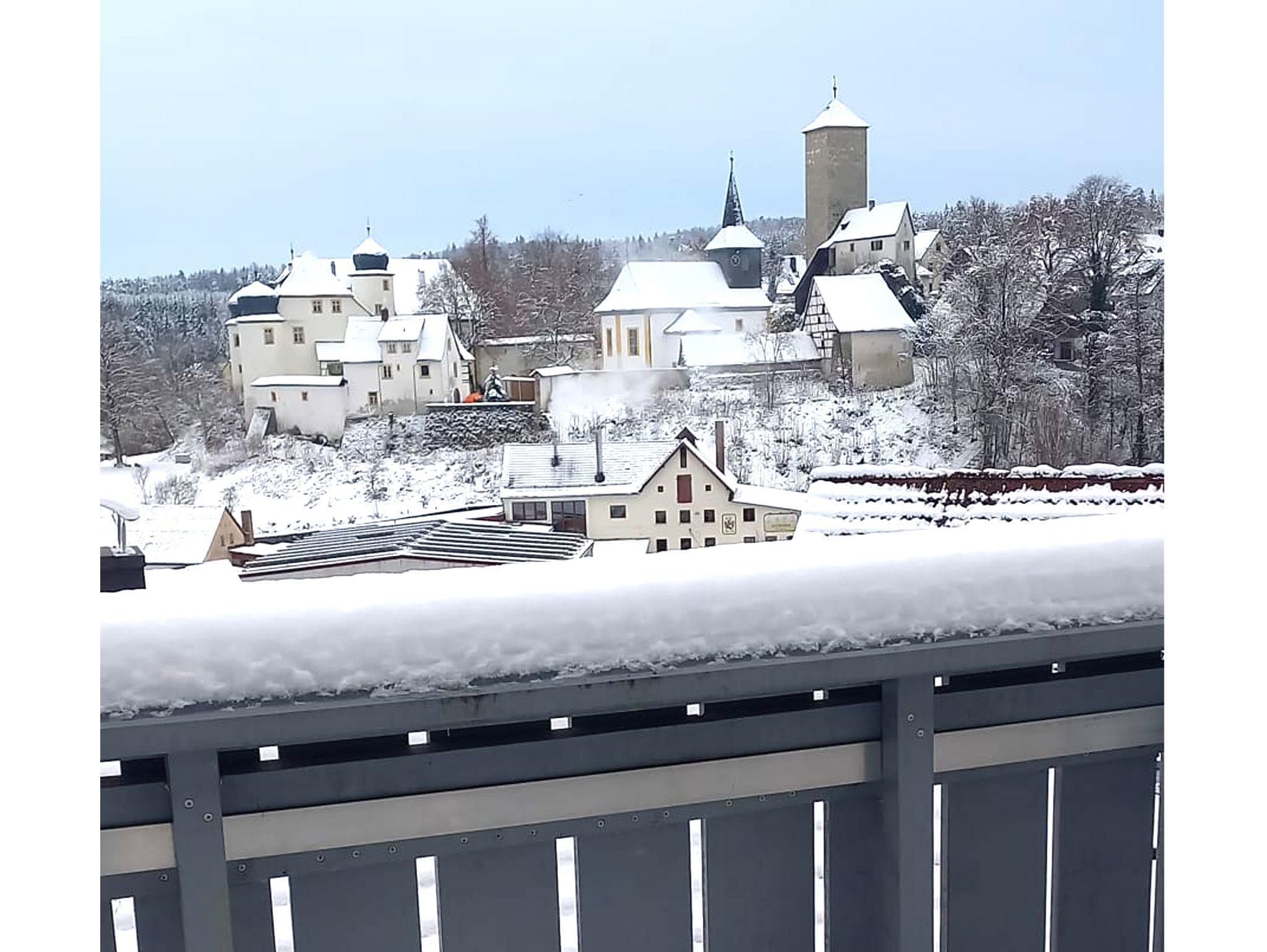 Vom Wohnbereich mit Balkon haben Sie einen herrlichen Ausblick auf das Schloss von Aufseß.