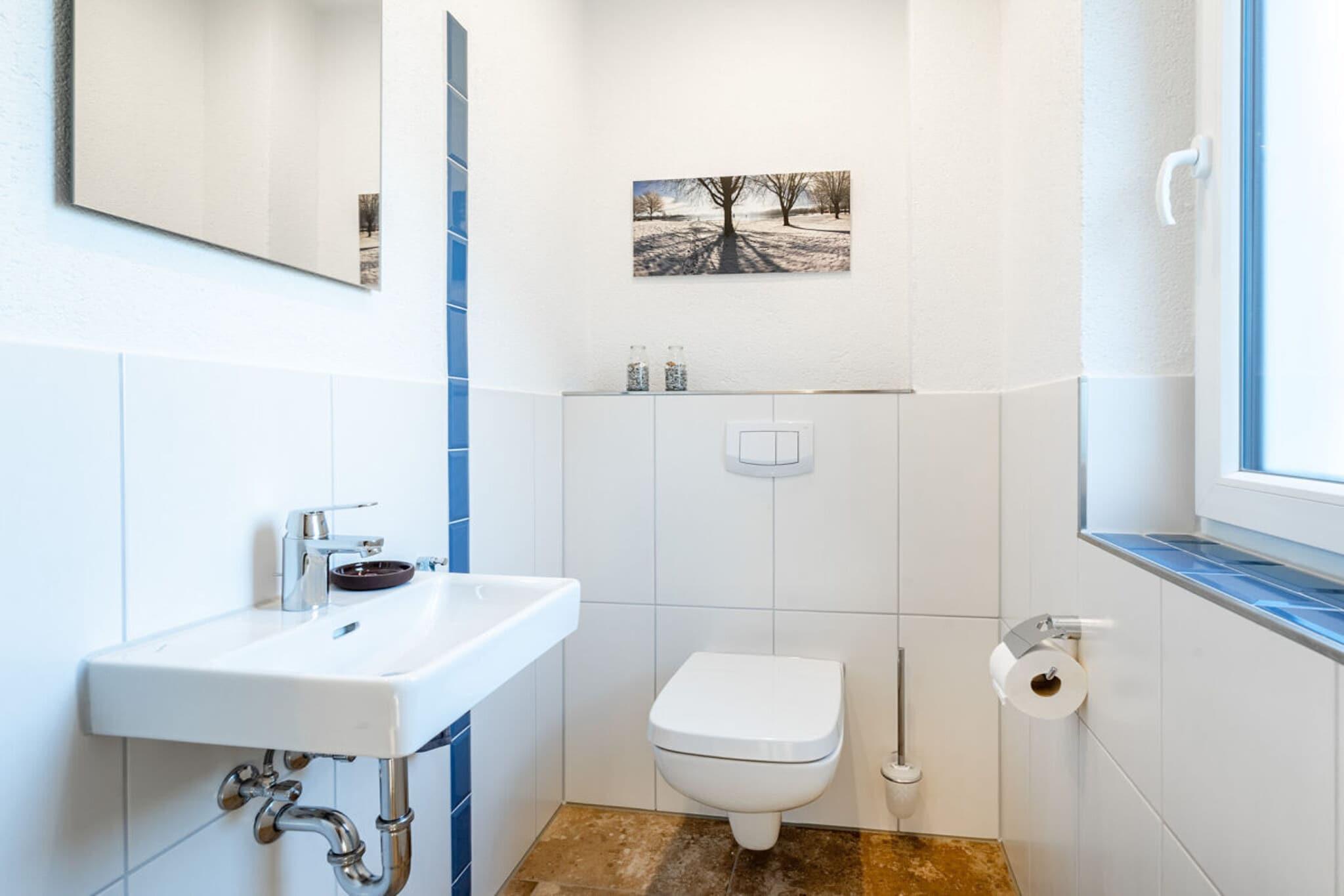 Modern und liebevoll eingerichtete Ferienwohnung Nitschke - FeWo Flut bietet die Möglichkeit, im Herzen Ostfrieslands Ihren Urlaub zu genießen. Die Ferienwohnung in einer unserer beiden in 2022 neu gebauten Doppelhäusern liegt direkt am idyllischen Badesee in Aurich-Tannenhausen. Jede Doppelhaushälfte verfügt über ~60 m² Wohnfläche und bietet Platz für bis zu vier Personen. Das offengestaltete Erdgeschoss mit Koch-/ Wohn- und Essbereich sowie die daran anschließende Terrasse laden zum Wohlfühlen ein. Im Obergeschoss befinden sich zwei gemütliche Schlafzimmer und ein großes Tageslichtbad mit begehbarer Dusche, Waschbecken und WC. Parkplatz für PKW ist direkt am Haus. Größere Familien dürfen gerne beide Doppelhaushälften zusammen reservieren.