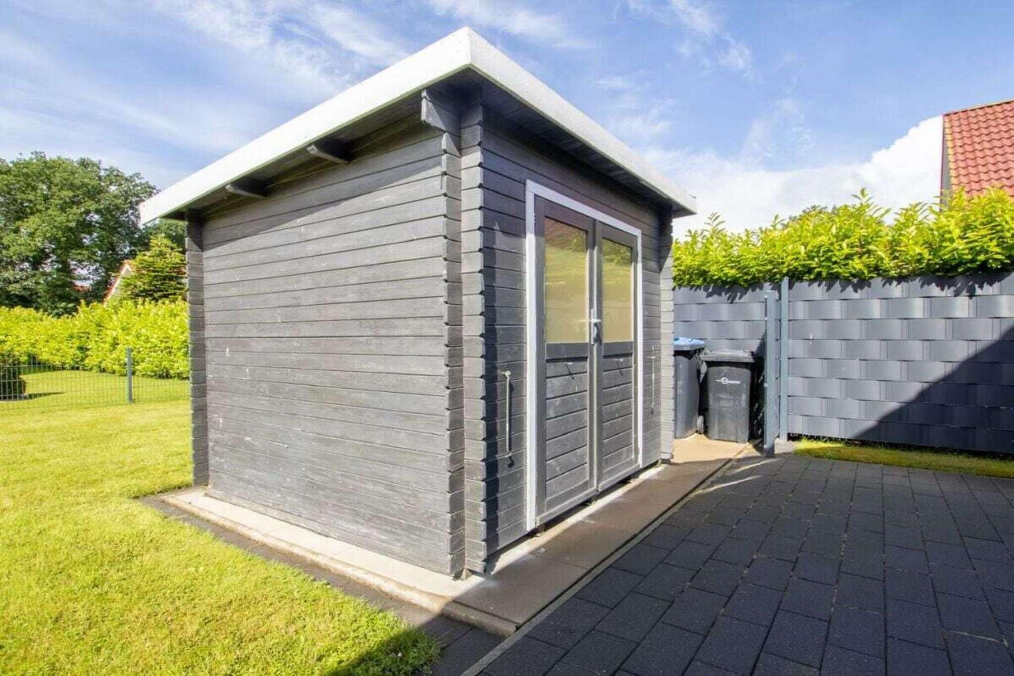 Parterre: (Wohnzimmer(, TV, Heizung), Schlafzimmer(, , Doppelbett, TV, Heizung, Fliegenfenster), Badezimmer(, Toilette, Dusche, Waschbecken, Heizung, Fliegenfenster)) In der 1. Etage: (Schlafzimmer(, , Doppelbett, TV, Heizung, Fliegenfenster), Schlafzimmer(, , Einzelbett, TV, Heizung, Fliegenfenster)) , , , , Küche(, Kochnische, Esstisch, Herd, Kochplatte, Wasserkocher, Toaster, Kaffeemaschine, Backofen, Spülmaschine, Kühlschrank, Tiefkühlschrank, Heizung, Fliegenfenster), Internet, Internet, Waschmaschine, Heizung, Terrasse, Garten(Liegewiese, Gartenmöbel, Gartenhaus), Parkplatz, Bügelbrett, Bügeleisen, Trockenschrank