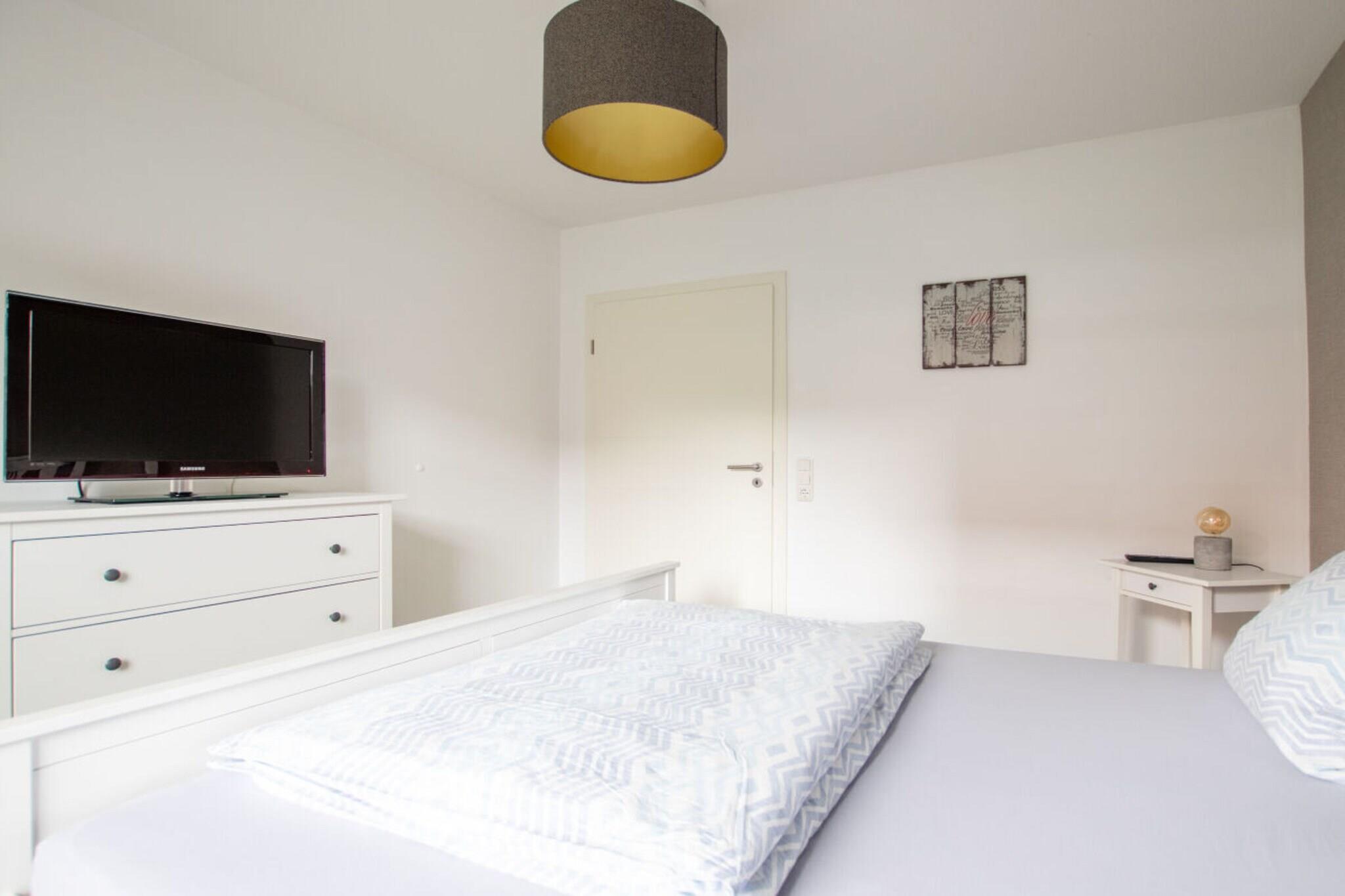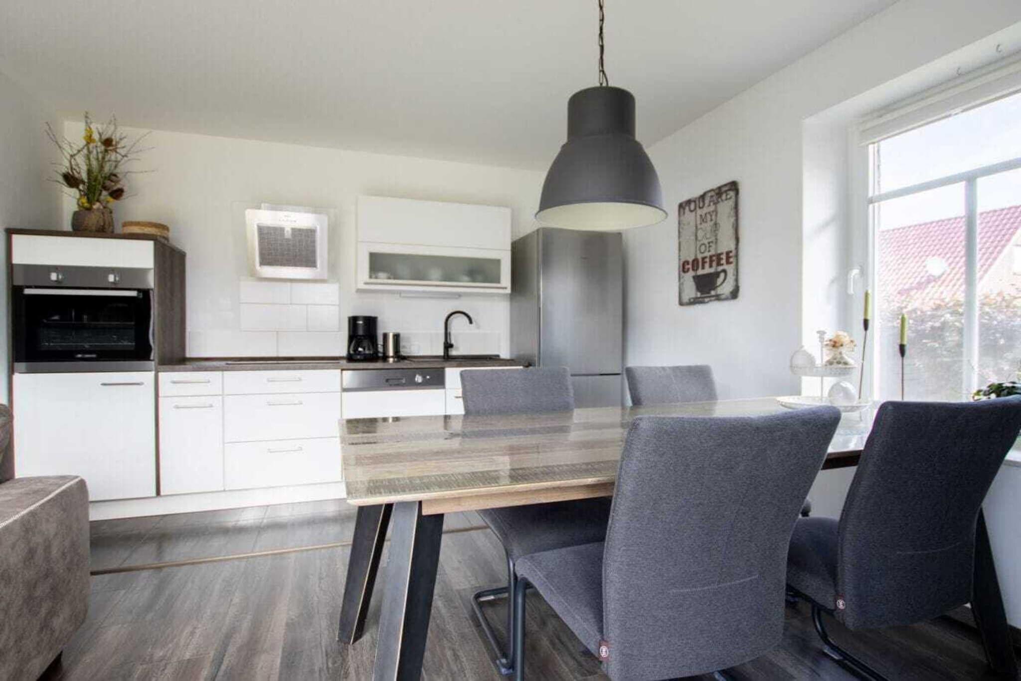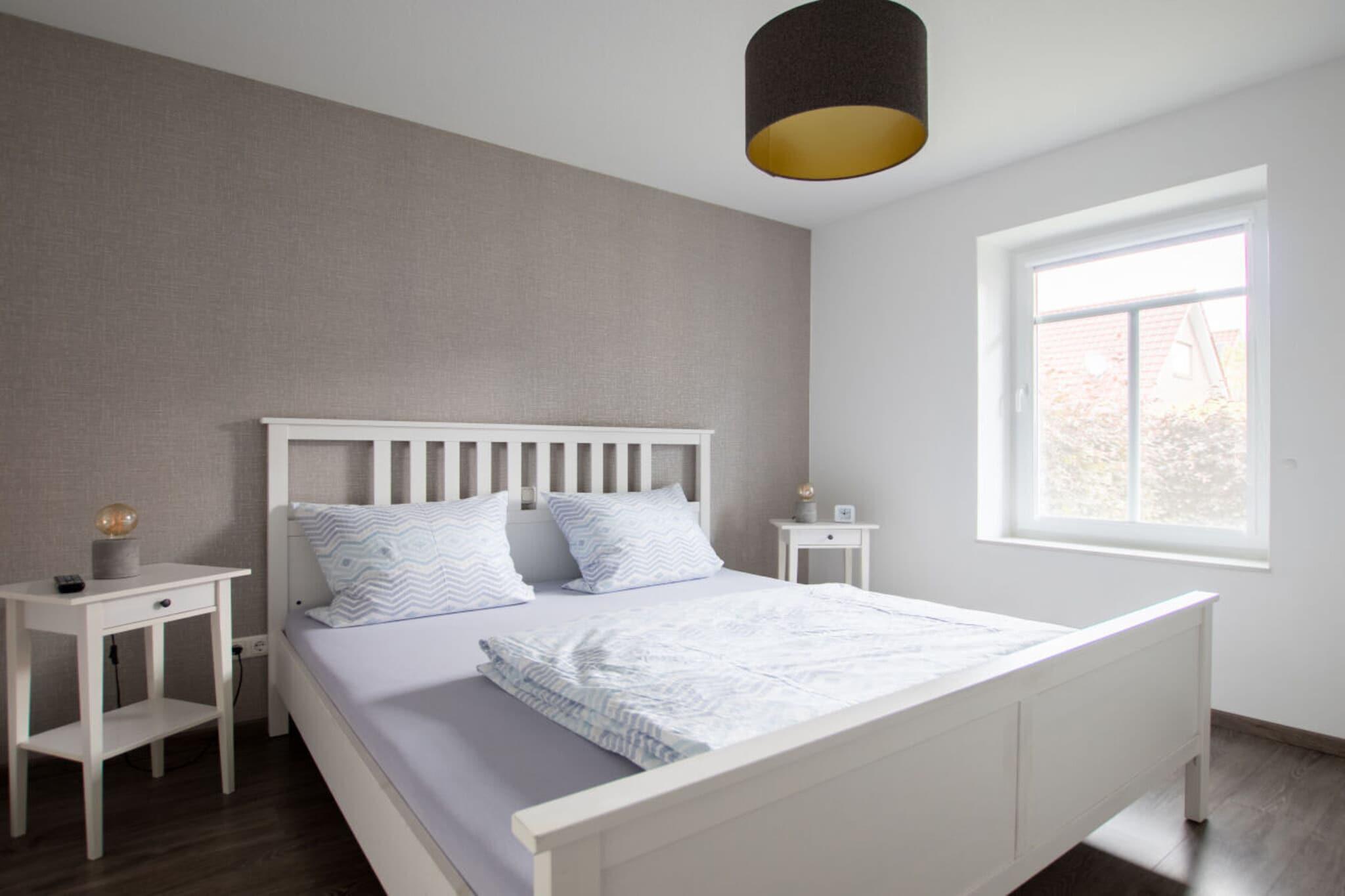 Willkommen in unserem modernen und gemütlichen Ferienhaus Strandoase am Badesee in Aurich Tannenhausen mit privater Badebucht und Sandstrand! Auf ca. 85 qm mit 3 Schlafzimmern, 1 Badezimmer und 1 Wohnzimmer finden bis zu 5 Gäste Platz. Der große Garten lädt zu Aktivitäten und zur Entspannung ein. Im Erdgeschoss befindet sich ein geräumiges Schlafzimmer mit Doppelbett, das moderne Duschbad/ WC sowie der großzügige Wohnraum mit offener Küche. Die Küche ist mit allem ausgestattet, was so gebraucht wird (z.B. E-Herd mit Ceranfeld, Backofen, Geschirrspüler, Kaffeemaschine). Neben dem Eingang befindet sich ein kleiner Hauswirtschaftsraum mit Waschmaschine und nützlichen Utensilien. Über die Treppe im Wohnzimmer geht es in die 1. Etage. Dort warten zwei weitere großzügige Schlafräume, davon ein Raum mit einem Einzelbett. Alle Zimmer sind modern und stilvoll eingerichtet; sie verfügen über TV, Rollos und WLAN. Der große Garten mit möblierter Terrasse bietet viel Platz für Erholung in der Natur. Zusätzlich steht ein Abstellraum für Fahrräder, Roller, etc. zur Verfügung. Die Einfahrt bietet Platz für einen Pkw. In ca. 50 Schritten erreichen Sie die private Badebucht am See (nur über ein Tor zugänglich).