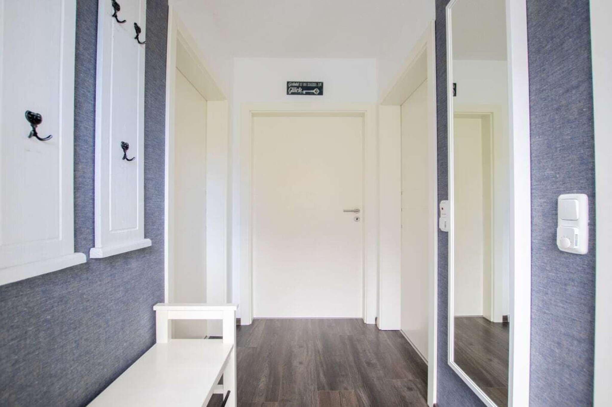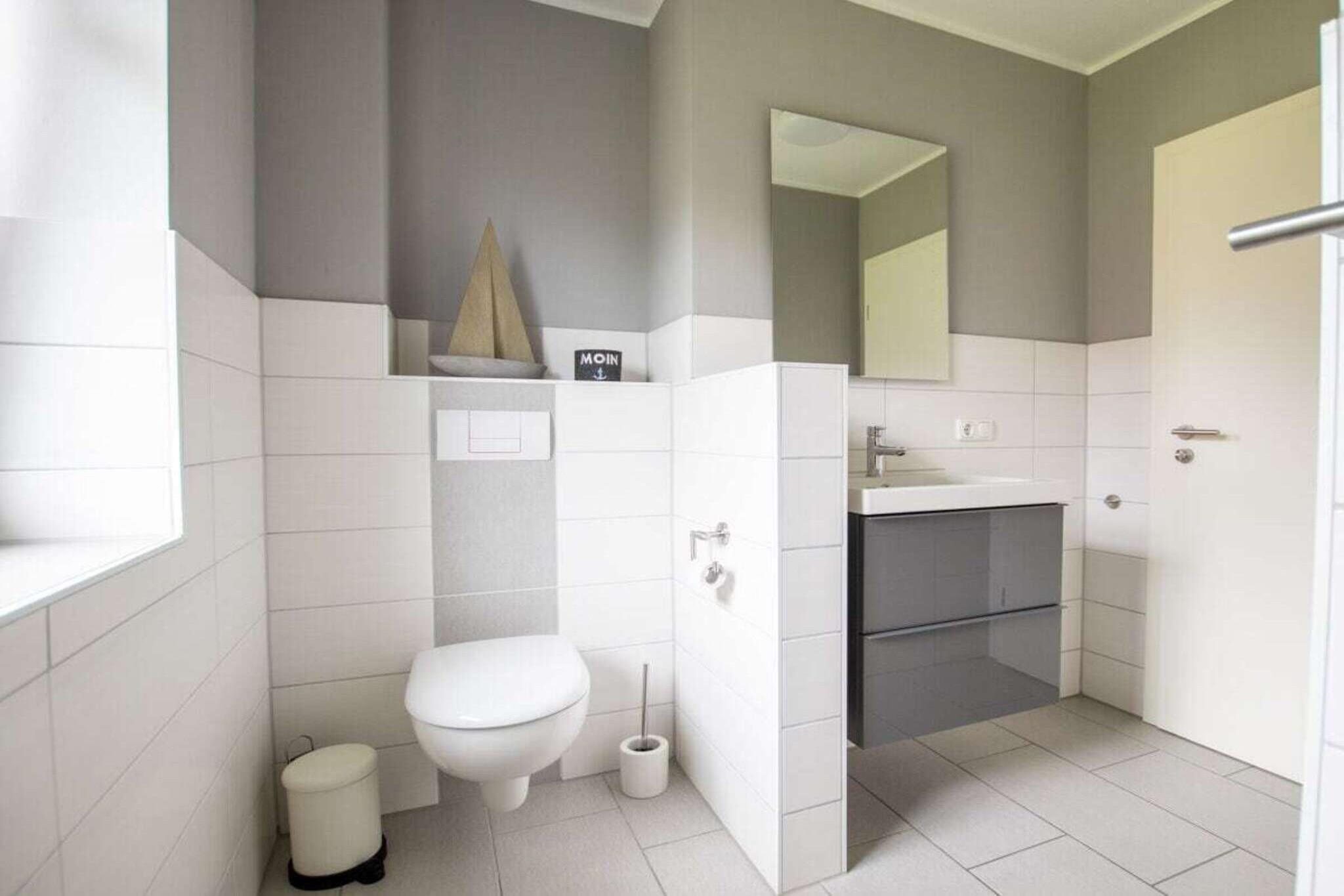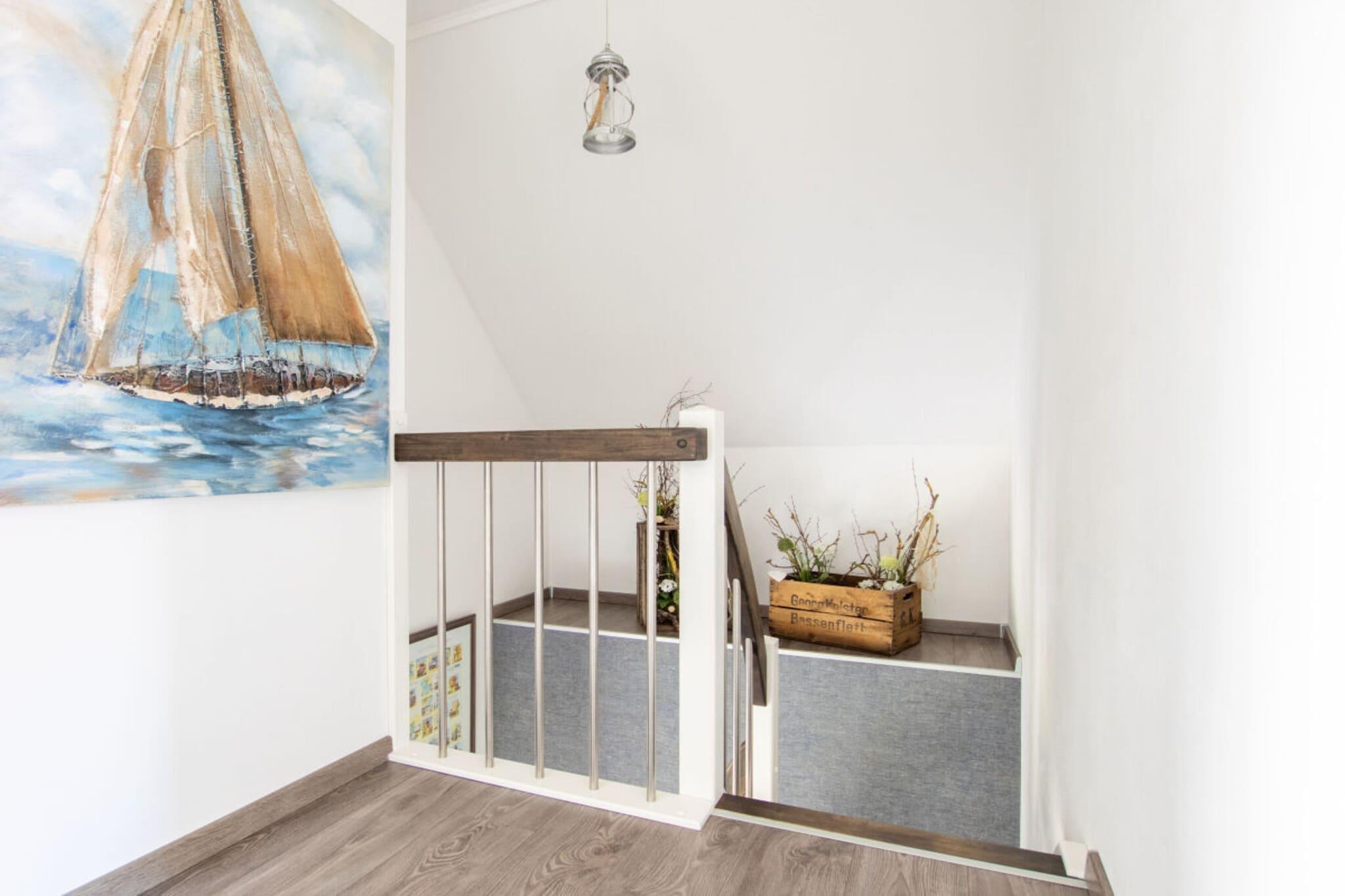 Willkommen in unserem modernen und gemütlichen Ferienhaus Strandoase am Badesee in Aurich Tannenhausen mit privater Badebucht und Sandstrand! Auf ca. 85 qm mit 3 Schlafzimmern, 1 Badezimmer und 1 Wohnzimmer finden bis zu 5 Gäste Platz. Der große Garten lädt zu Aktivitäten und zur Entspannung ein. Im Erdgeschoss befindet sich ein geräumiges Schlafzimmer mit Doppelbett, das moderne Duschbad/ WC sowie der großzügige Wohnraum mit offener Küche. Die Küche ist mit allem ausgestattet, was so gebraucht wird (z.B. E-Herd mit Ceranfeld, Backofen, Geschirrspüler, Kaffeemaschine). Neben dem Eingang befindet sich ein kleiner Hauswirtschaftsraum mit Waschmaschine und nützlichen Utensilien. Über die Treppe im Wohnzimmer geht es in die 1. Etage. Dort warten zwei weitere großzügige Schlafräume, davon ein Raum mit einem Einzelbett. Alle Zimmer sind modern und stilvoll eingerichtet; sie verfügen über TV, Rollos und WLAN. Der große Garten mit möblierter Terrasse bietet viel Platz für Erholung in der Natur. Zusätzlich steht ein Abstellraum für Fahrräder, Roller, etc. zur Verfügung. Die Einfahrt bietet Platz für einen Pkw. In ca. 50 Schritten erreichen Sie die private Badebucht am See (nur über ein Tor zugänglich).