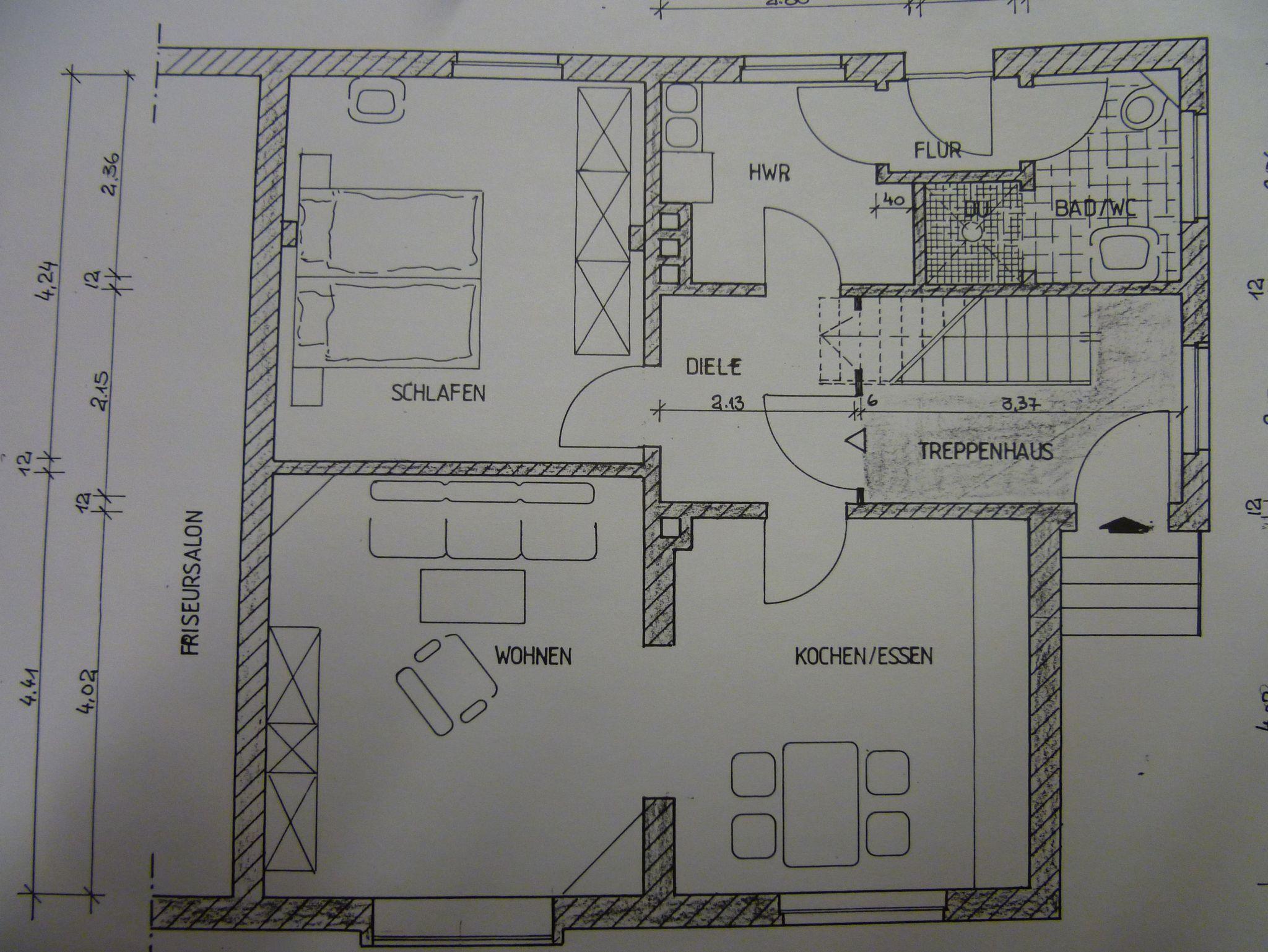 - volleingerichtete Küche mit einer Esszimmer-Garnitur für 4 Personen