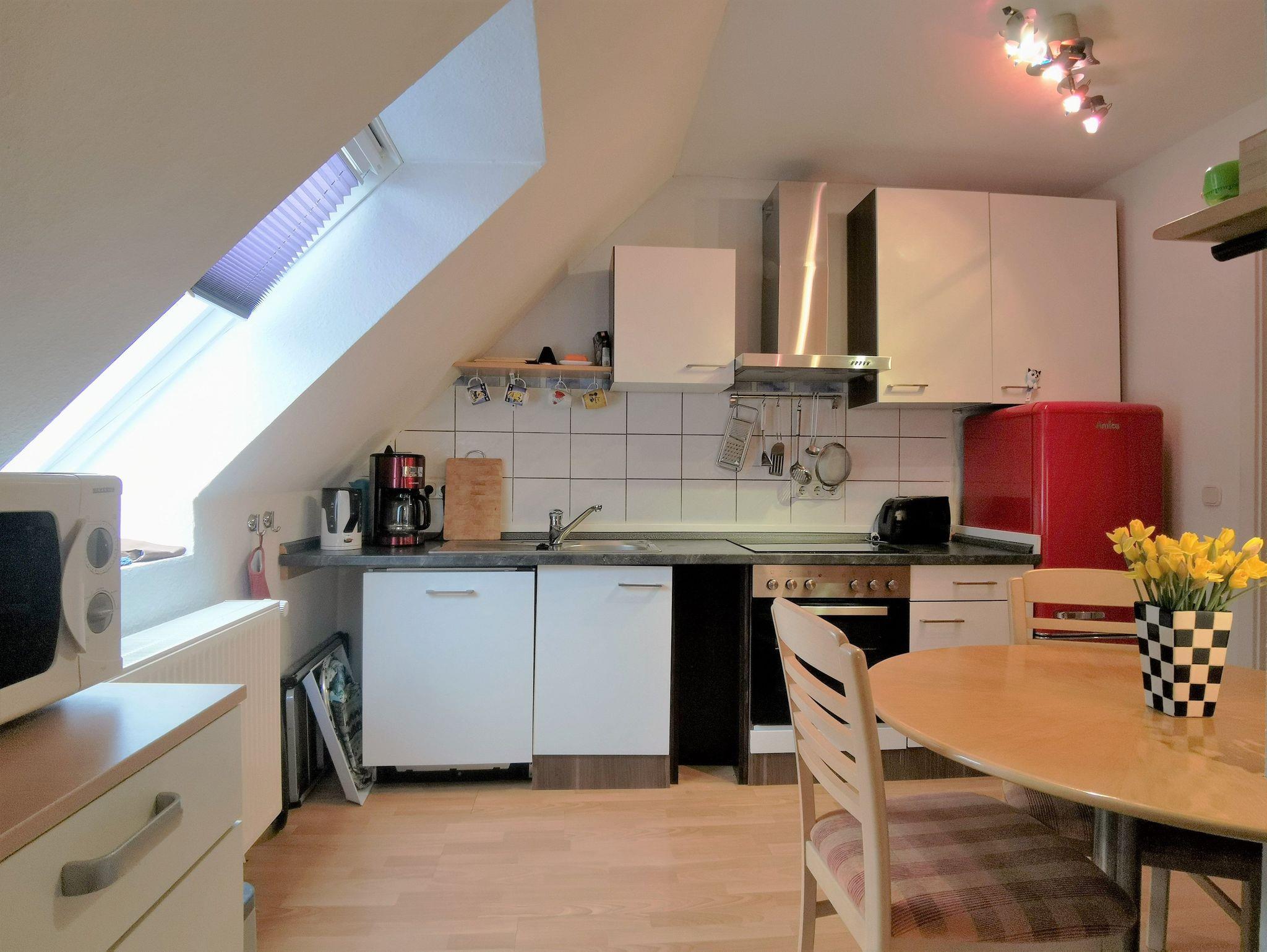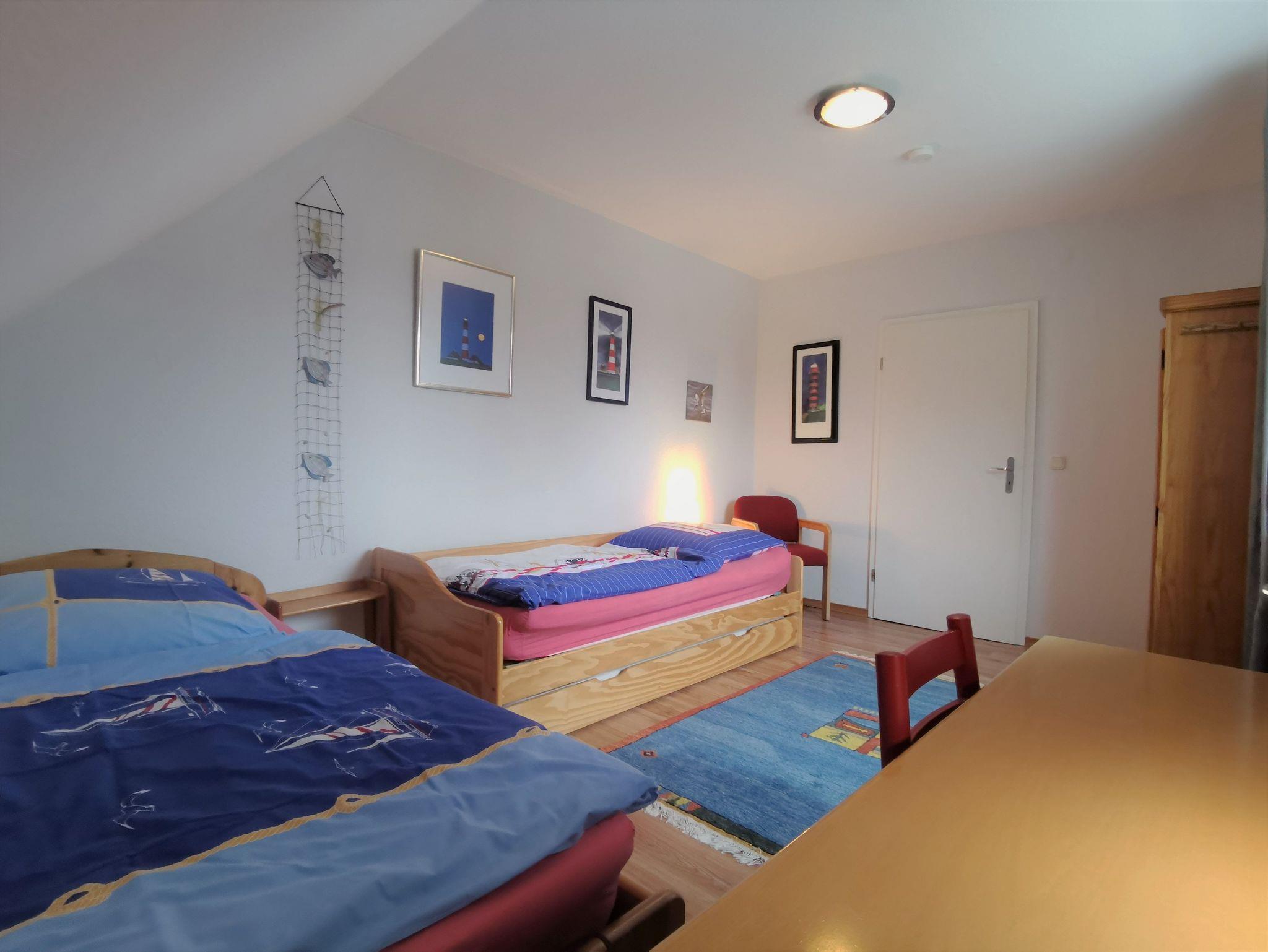 Die Ferienwohnung Kobs liegt in ruhiger Sackgassenlage in wunderschöner, ländlicher Umgebung. Sie ist 98 qm groß, gemütlich eingerichtet, liegt im Obergeschoss und verfügt über einen eigenen Eingang. Der große Wohn- und Essbereich mit Blick in den schönen Garten und ins Grüne verfügt über einen Esstisch, eine Sitzecke mit Sofas und Lesesessel, eine kleine Bibliothek, eine Musikanlage und TV. Vom großen Raum ist die gut ausgestattete Küche mit kleinem Tisch und zwei Stühlen begehbar (mit Gefrierfach, Mikrowelle, Herd und Spülmaschine). Die Wohnung verfügt über zwei Schlafzimmer: vom Schlafzimmer mit Doppelbett und großem Kleiderschrank geht das Bad mit Badewanne ab, das Schlafzimmer mit zwei Einzelbetten, Schrank und kleinem Schreibtisch hat neben sich das kleinere Bad mit Dusche und Waschmaschine liegen. Unabhängig vom Wetter kann man herrlich unter der überdachten Terrasse mit Gartenmöbeln und Grill sitzen - umgeben von maritimer Dekoration, die Lust auf einen Ausflug ans Meer macht.