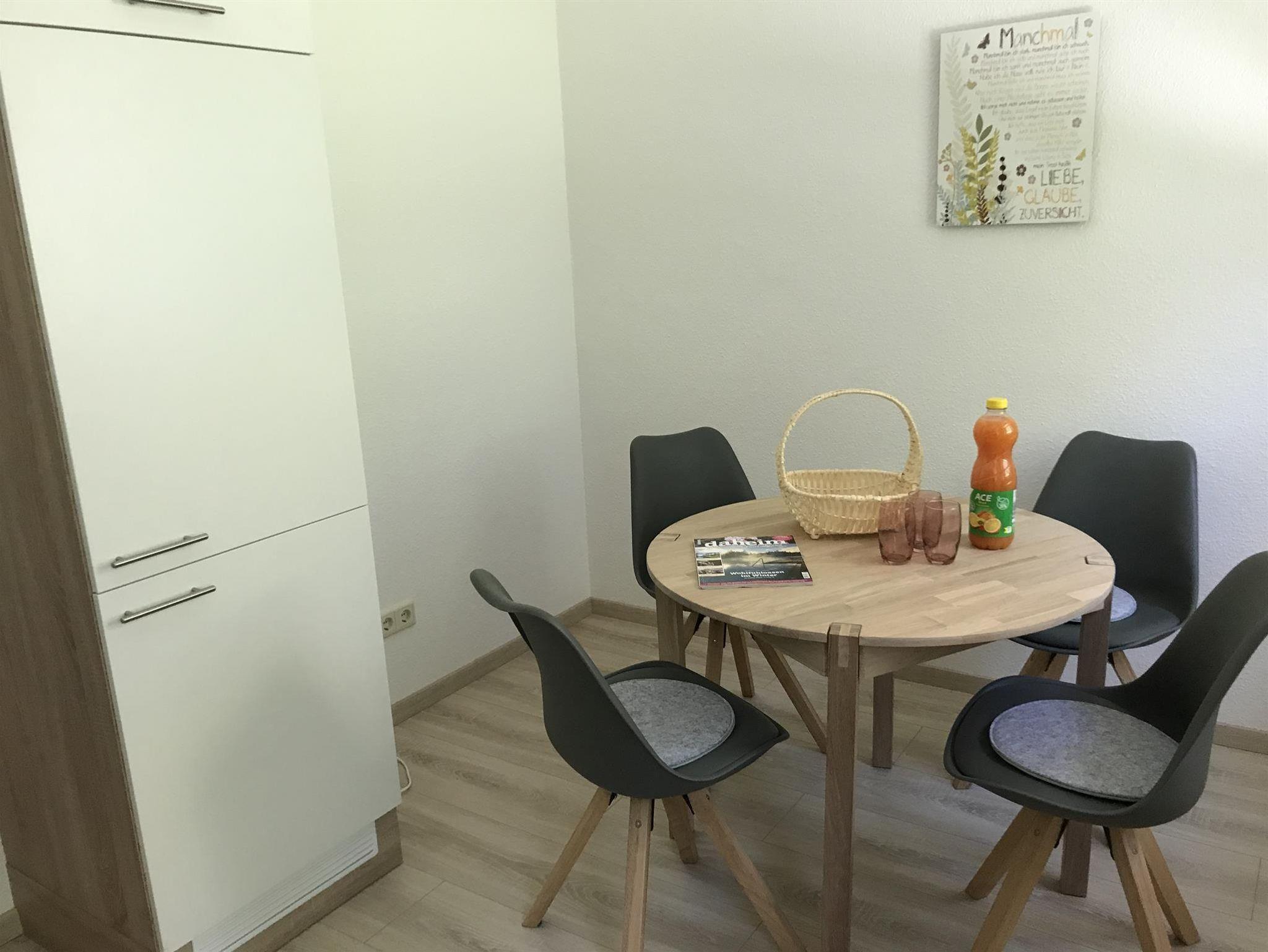 Die Wohnung Im Bielatal ist mit einer kompletten Küche mit Herd und Geschirrspüler sowie einem gemütlichen Esstisch für 4 Personen eingerichtet. Das dazugehörige Bad hat ein Fenster, Dusche/WC und ein Waschbecken. Der 24 m² große kombinierte Wohn- und Schlafraum ist mit einem Doppelbett sowie einem ausziehbaren Sofa (geeignet als 2. Schlafgelegenheit), Tisch, einem Sessel und TV ausgestattet.