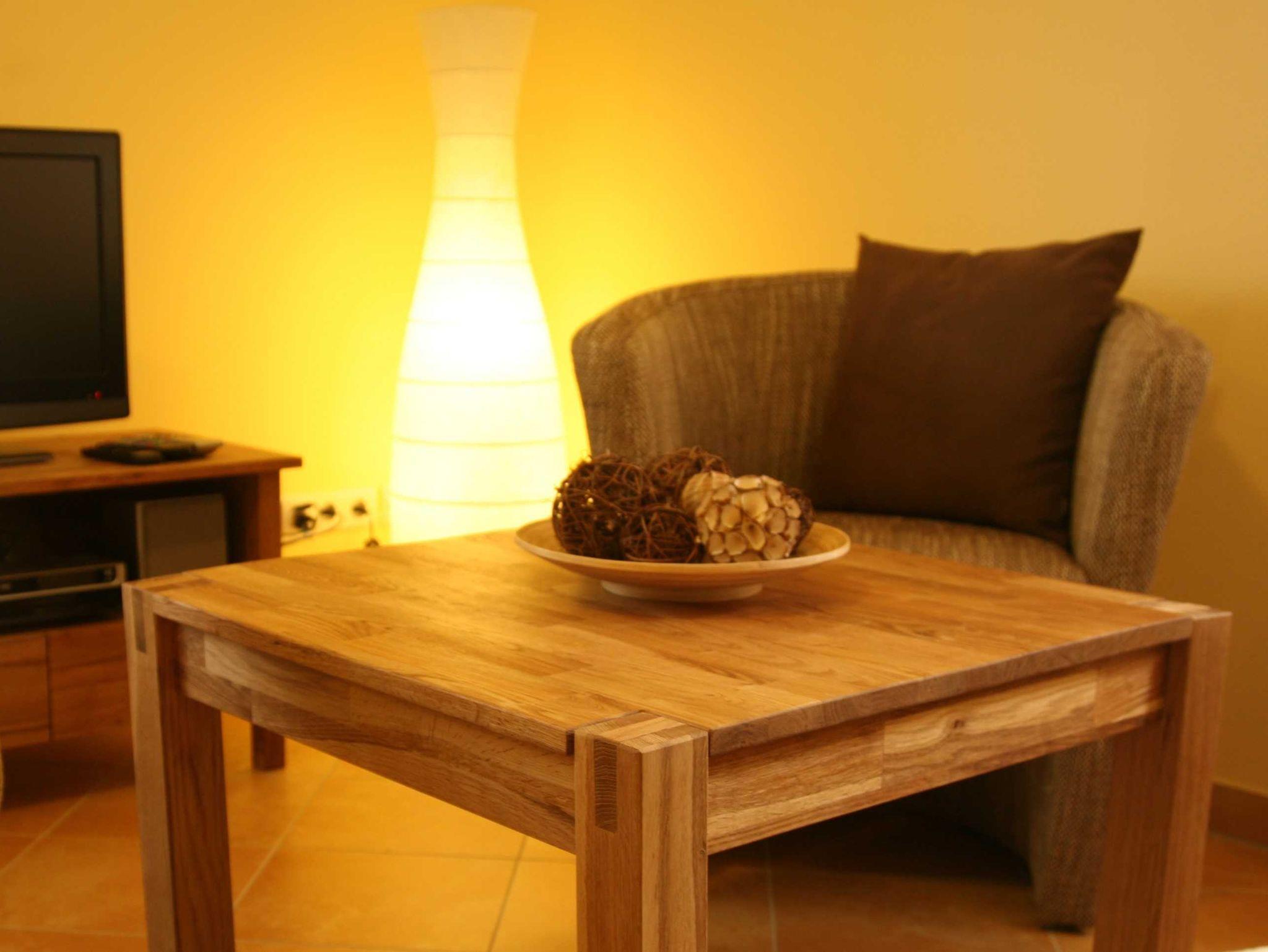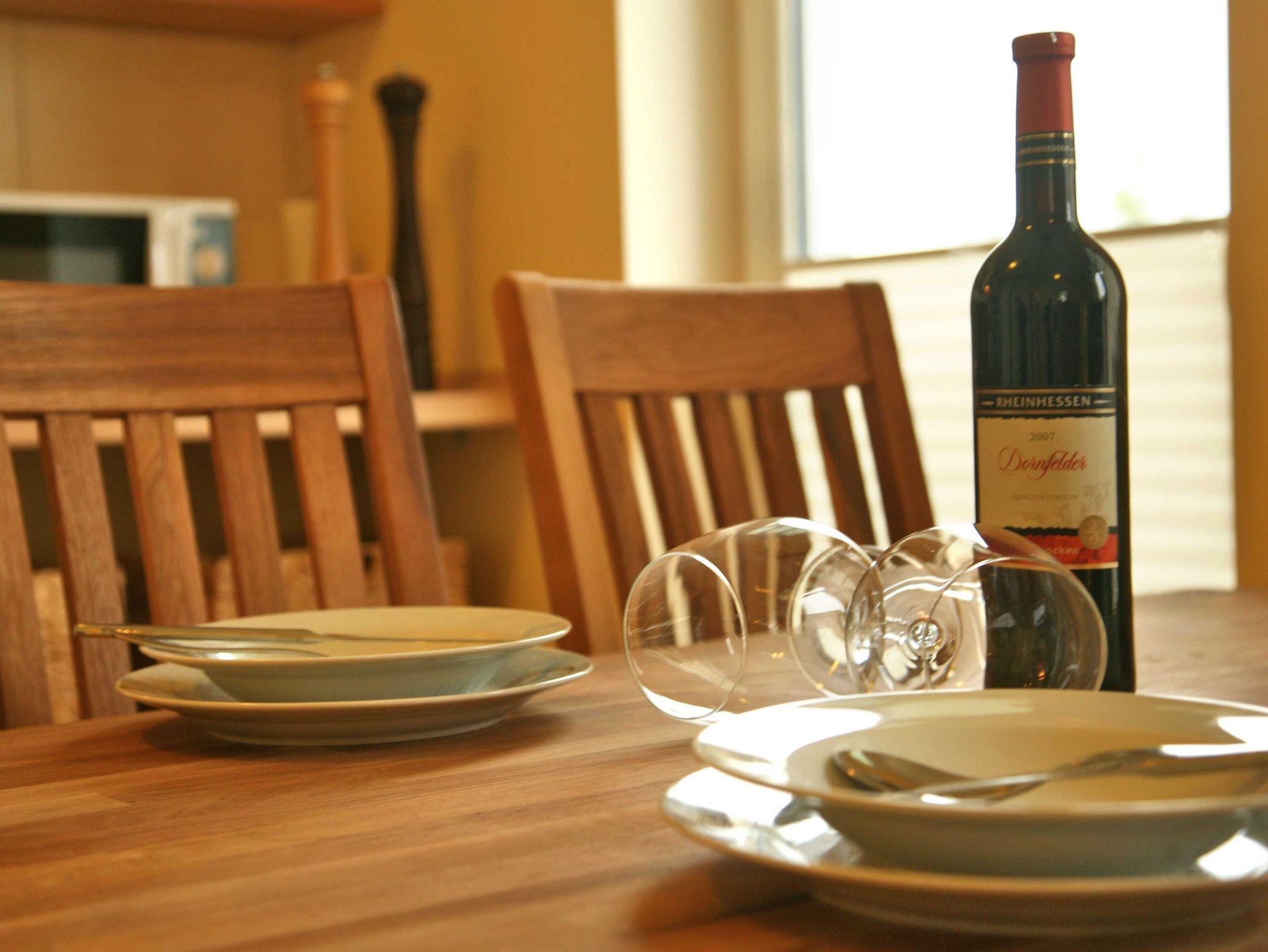 Das Ferienappartement befindet sich im EG mit Terrasse und Garten und ist somit ideal auch geeignet für Ihre tierischen Lieblinge. Hier finden Sie 3 Räume davon ein kombinierter Wohn-Essbereich Tisch mit 4 Stühlen integrierter Küche, Couch-Sitzecke mit TV und Kaminofen. Die Küche ist ausgestattet mit Kühlschrank u. Gefrierfach, Mikrowelle, Spülmaschine, Toaster, Herd mit Backofen und Kaffeemaschine. Es befinden sich 2 Schlafzimmer in der Wohnung - eines mit Doppelbett und das zweite mit einem Etagenbett. Das Bad ist ausgestattet mit Dusche und WC. Im gesamten Wohnbereich ist eine Fußbodenheizung installiert. Eine bestuhlte Terrasse ist der Wohnung angeschlossen. Eine Waschmaschine befindet sich im angrenzenden HWR und ist per Münzen zu bedienen. Für unsere kleinen Gäste stellen wir kostenfrei einen Kinderhochstuhl sowie ein Reisebabybettchen zur Verfügung. Der PKW-Stellplatz befindet sich direkt vor dem Haus. Wir bitten Bettwäsche und Handtücher mitzubringen. Für Monteure ist die Unterkunft nicht geeignet.