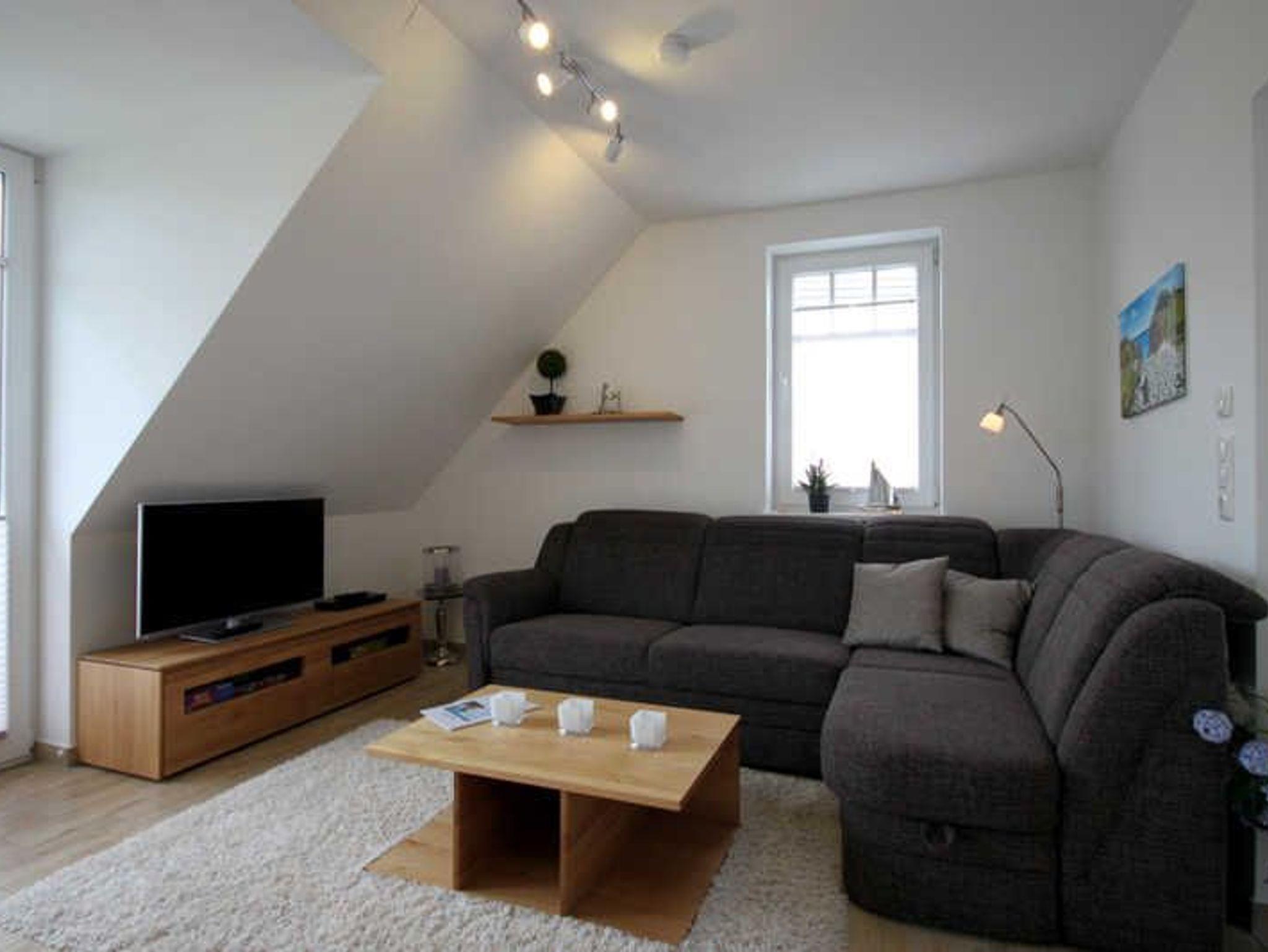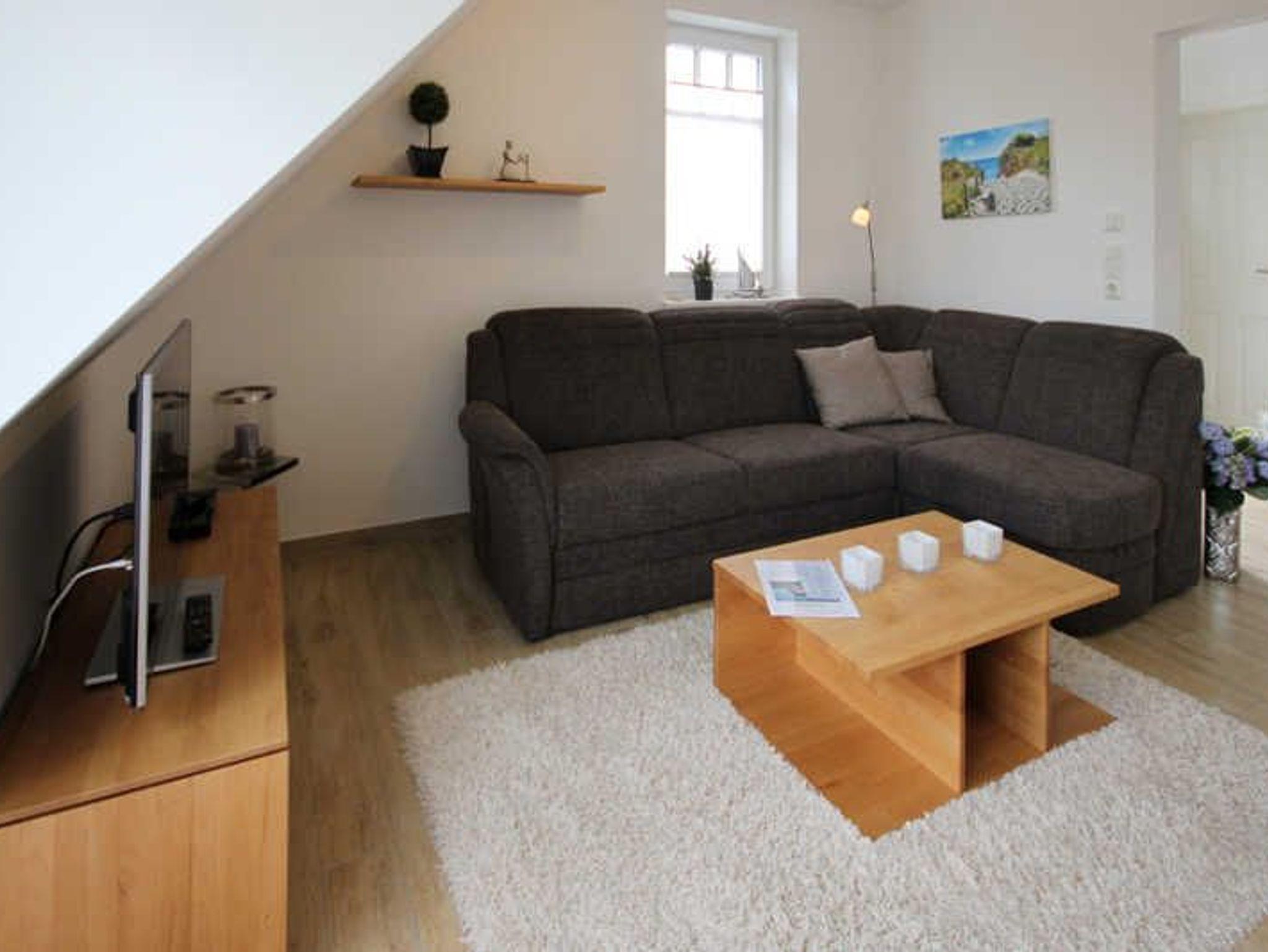 Die familienfreundliche Drei-Zimmer-Maisonetten-Wohnung im Obergeschoss ist nur wenige Schritte vom Meer gelegen.