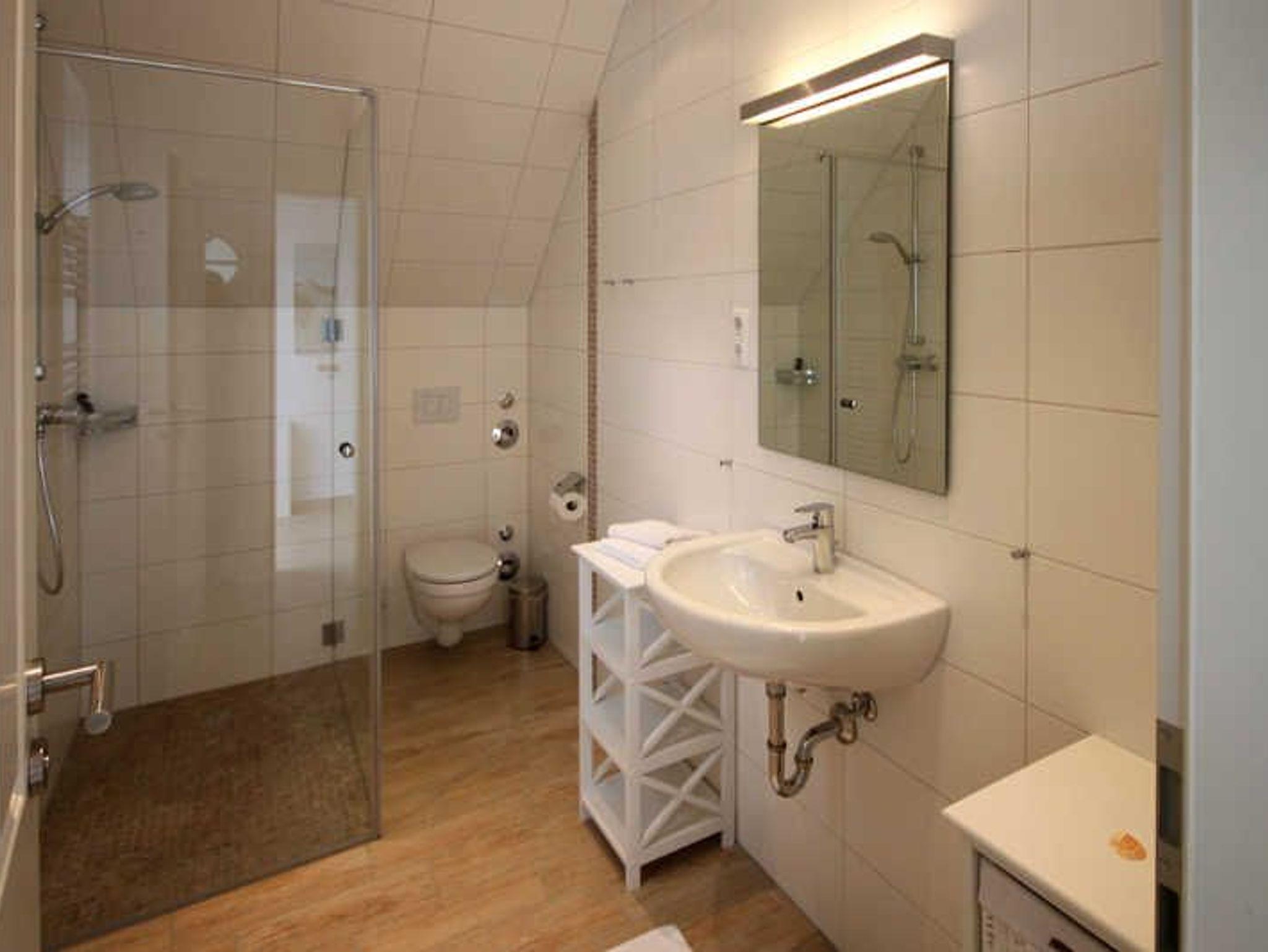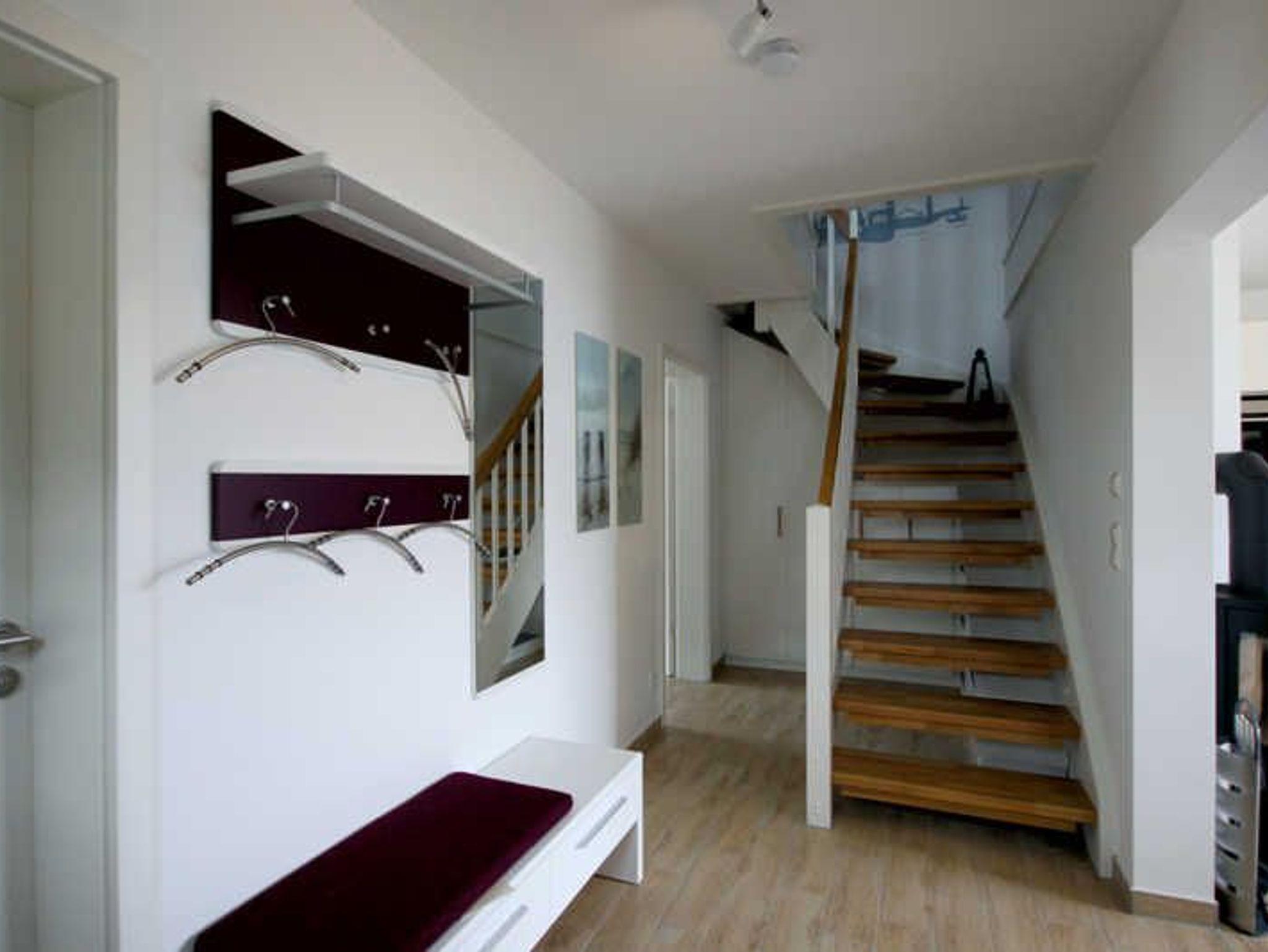 Im gemütlich eingerichteten Wohnbereich empfängt Sie eine Eckcouch mit Flatscreen-TV und BluRay-Player. An kalten Tagen schafft der ästhetische Kaminofen wohlige Wärme (Kaminholz muss selbst organisiert werden).[nbsp] Im offenen Koch- und Essbereich befinden sich eine offene Einbauküche sowie ein großzügiger Holztisch mit vier Stühlen. Die voll ausgestattete Küchenzeile mit Mikrowelle, Backofen, Cerankochfeld, Geschirrspüler und Kühl-/Gefrierkombi lässt keine Wünsche offen. Beide Schlafzimmer bieten reichlich Platz zum Träumen in je einem Doppelbett. Das erste Schlafzimmer, welches sich im ersten Obergeschoss befindet, ist zusätzlich mit einen Flatscreen-TV und einem großen dreitürigen Kleiderschrank ausgestattet. Das zweite Schlafzimmer liegt im zweiten Obergeschoss. Sie haben von hier einen weiten Blick in Richtung Meer. Das großzügige, elegante Bad ist mit einer bodengleichen Dusche, einem Handtuchwärmer und einem Fön ausgestattet. Vom Wohn- sowie vom Schlafbereich gelangen Sie auf die Balkone. Dort lassen sich die Sonnenstunden wunderbar genießen.
