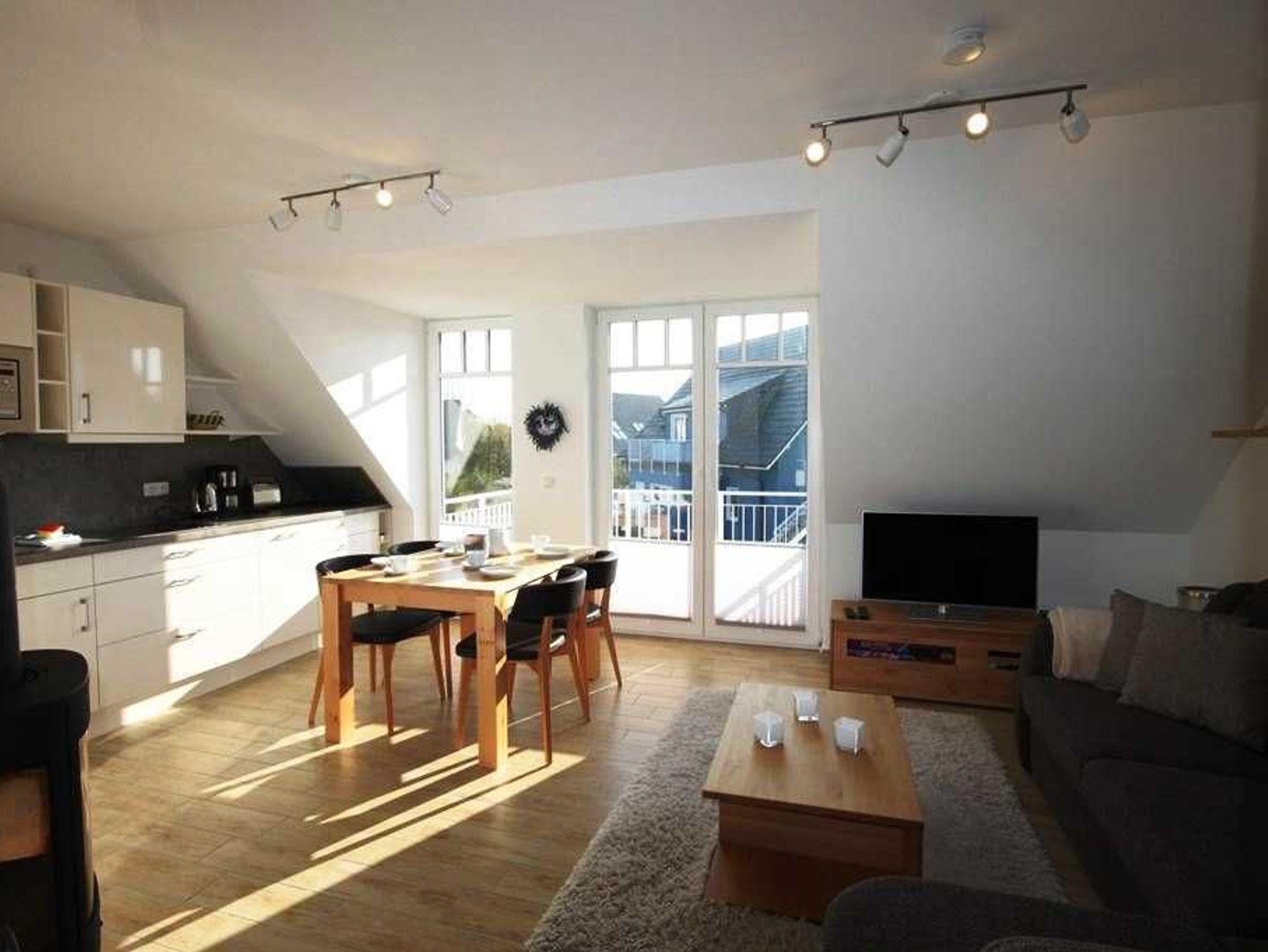 Gemütliche Maisonette-Wohnung mit Meerblick, Kaminofen und Balkon, nur 200 m vom Strand in Börgerende-Rethwisch entfernt.