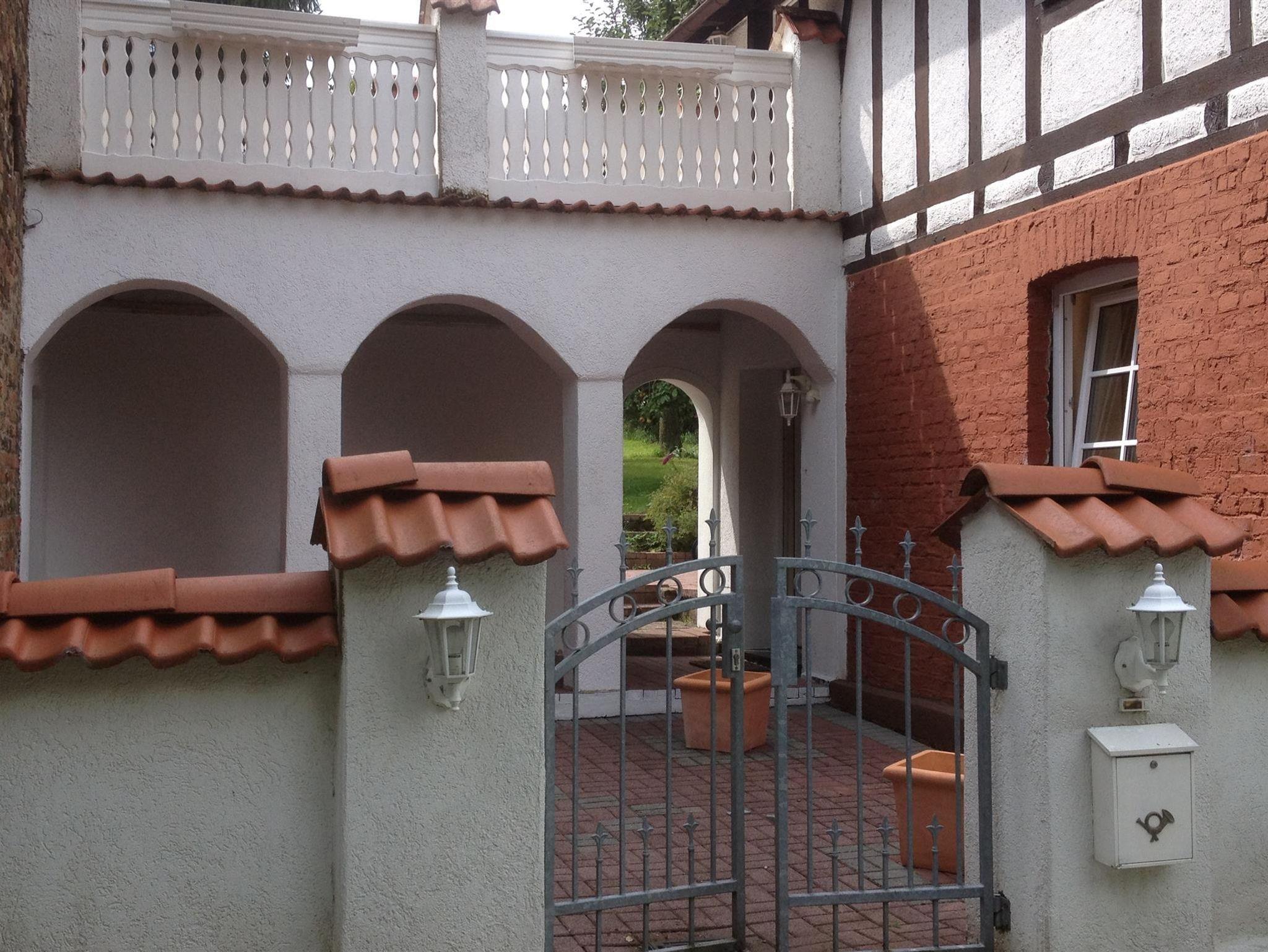• Balkon: Über den Arkaden des Innenhofes befindet sich ein uneinsehbarer romantischer Frühstücksbalkon mit Blick in den Garten