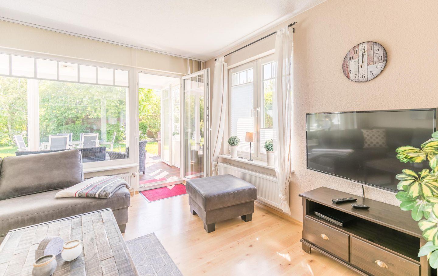 Lassen Sie sich vom Ambiente der Ferienwohnung bezaubern! Ein Traumurlaub ist praktisch garantiert, denn Sie schlafen und träumen in zwei liebevoll eingerichteten Schlafzimmern, duschen und pflegen sich in zwei lichten und geräumigen Bädern, nehmen Ihr Frühstück und die Mahlzeiten in einer hellen und komfortablen Küche, oder am großen Esstisch im Wohnzimmer, ein. Sie entspannen, oder grillen auf der großen Terrasse. Im Wintergarten können Sie auch bei kühlen Temperaturen die wärmende Sonne genießen.