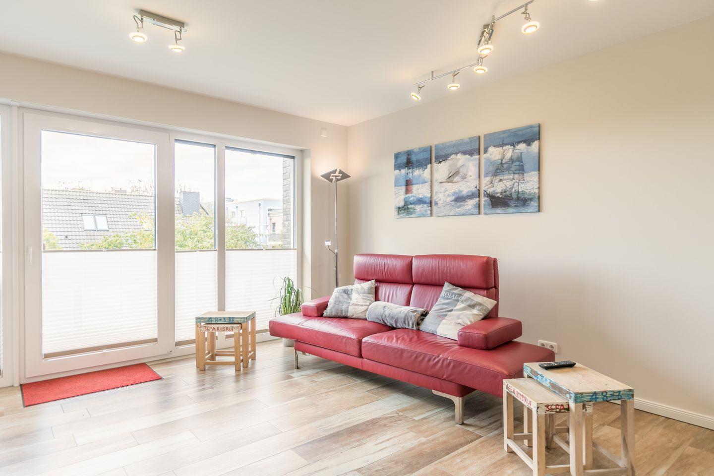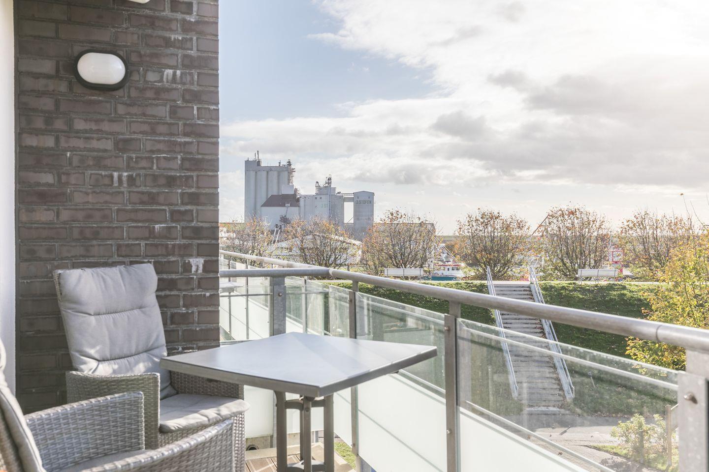 Moderne Ferienwohnung Deichoase 2.3 in Büsum mit Balkon, WLAN, Fahrstuhl und Nähe zu Strand und Hafen.