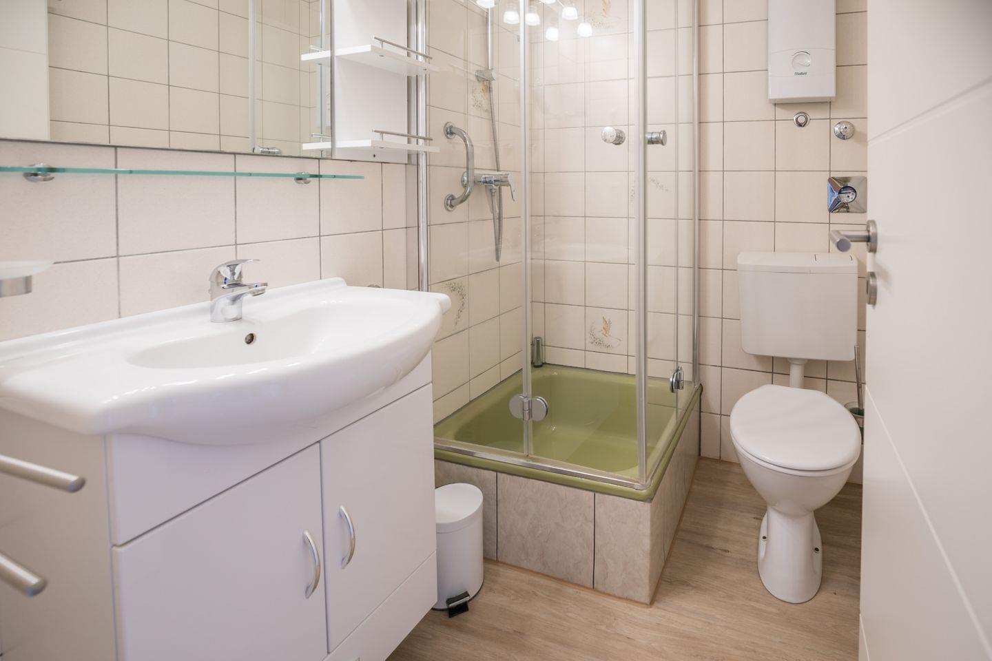 Dusche, WC, Spiegel, Kosmetikspiegel, Waschbecken, Abluft