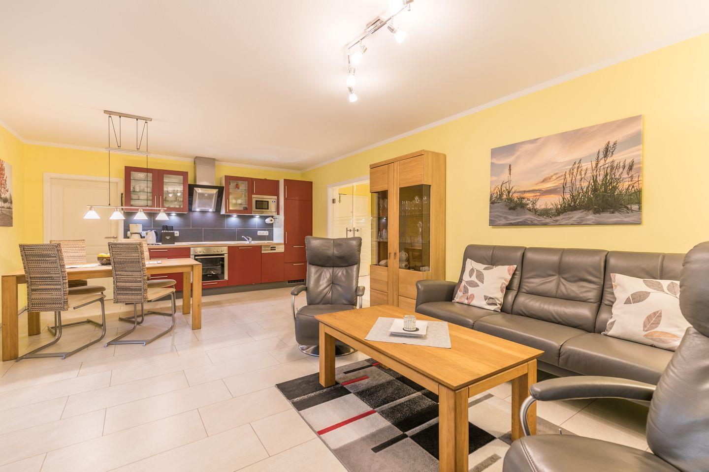 Im großen Wohnbereich ist die voll ausgestattete Küchenzeile angeschlossen.