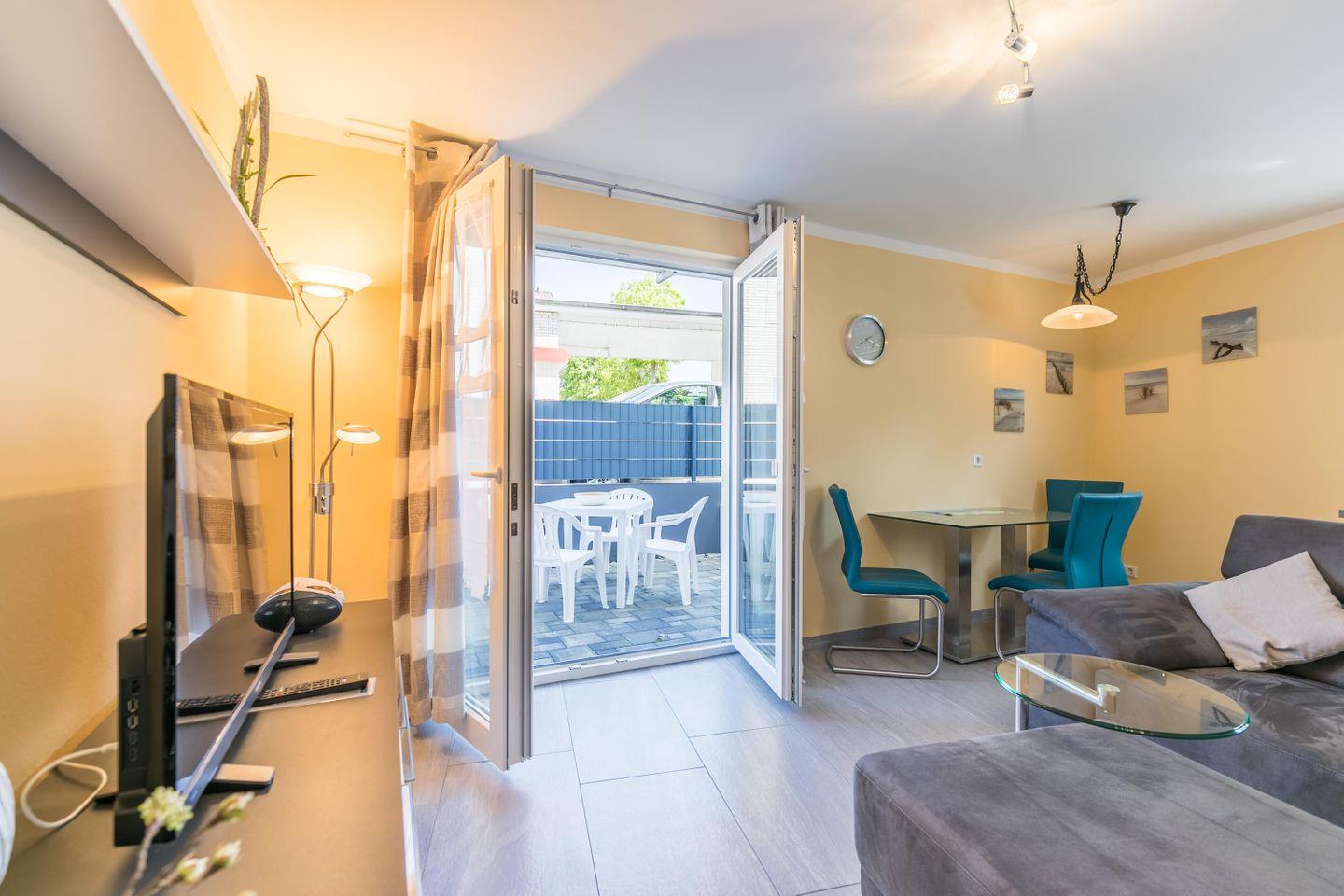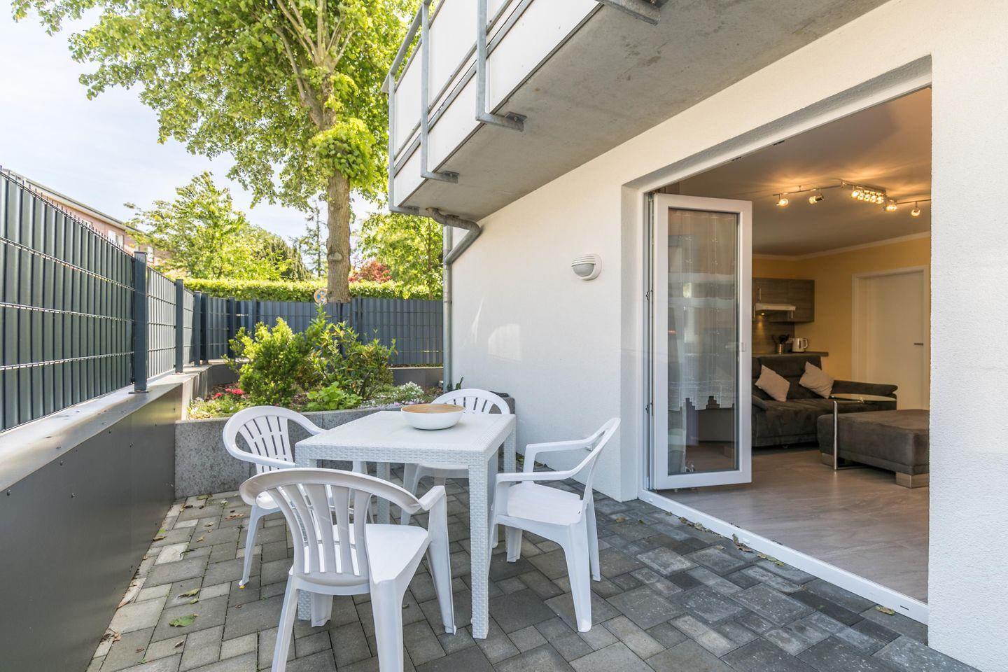 Komfortable Ferienwohnung in Büsum mit Terrasse, WLAN und privatem Parkplatz, nur 600 Meter vom Strand entfernt.