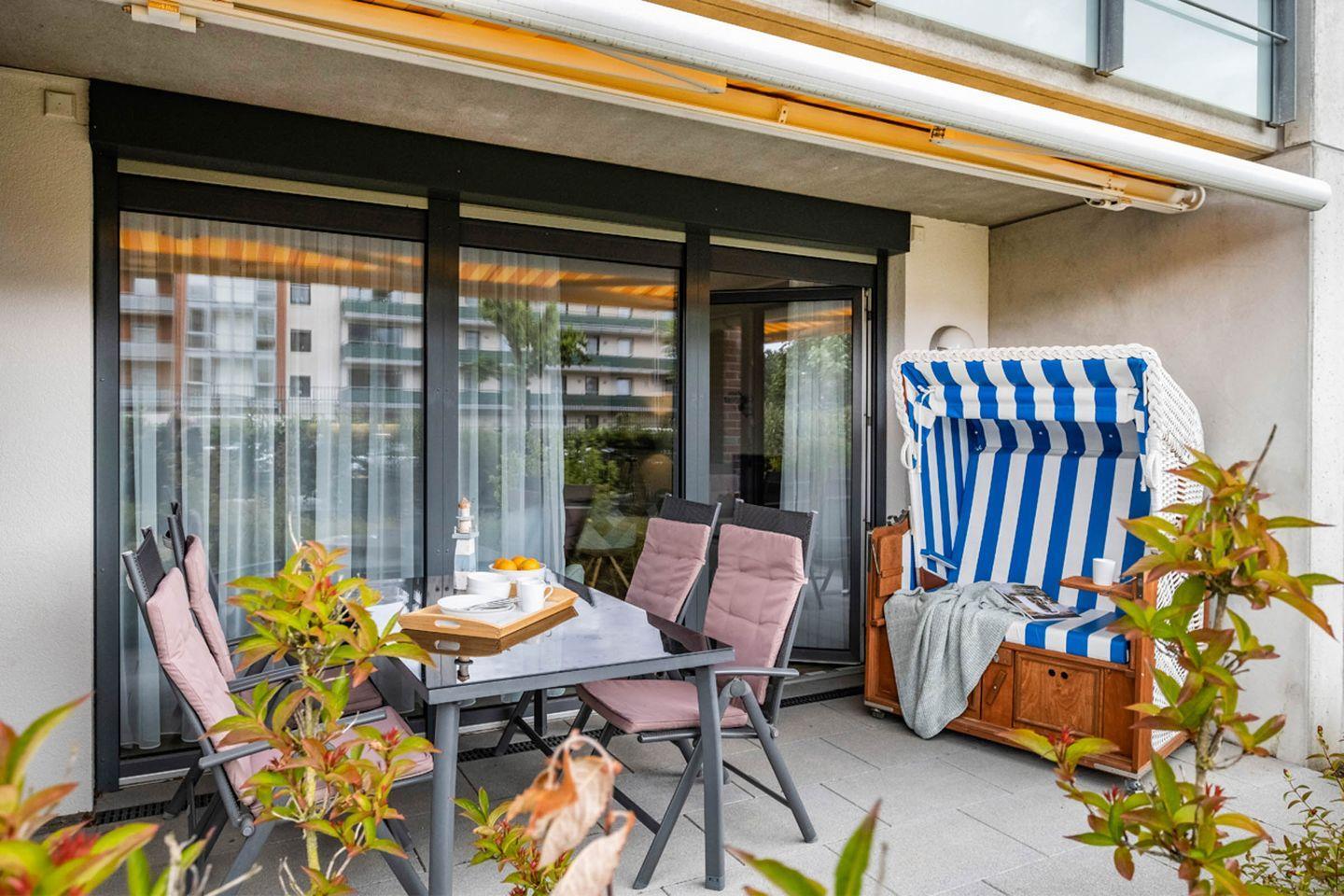 Balkon: Terrassenmöbel, Sonnenschirm
