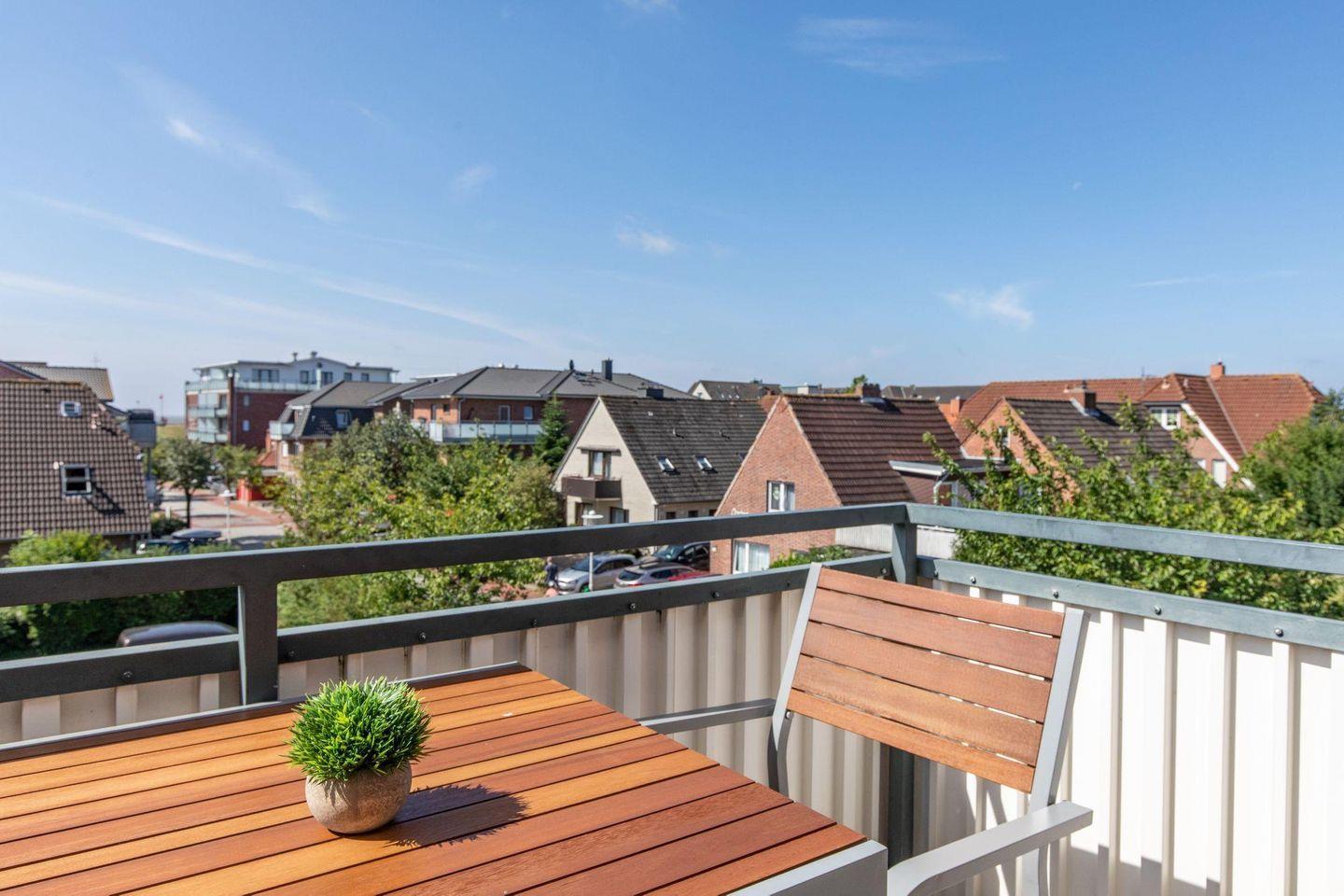 Modernes Apartment in Büsum mit Balkon, WLAN, Parkplatz und nur 250 m zum Strand und Einkaufsmöglichkeiten.