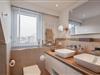 Bad: Große begehbare Dusche, Doppelwaschbecken mit Unterschrank, WC, Föhn, Fenster mit Jalousie, Handtuchtrockner, Spiegel mit Fernsehfunktion, Kosmetikspiegel