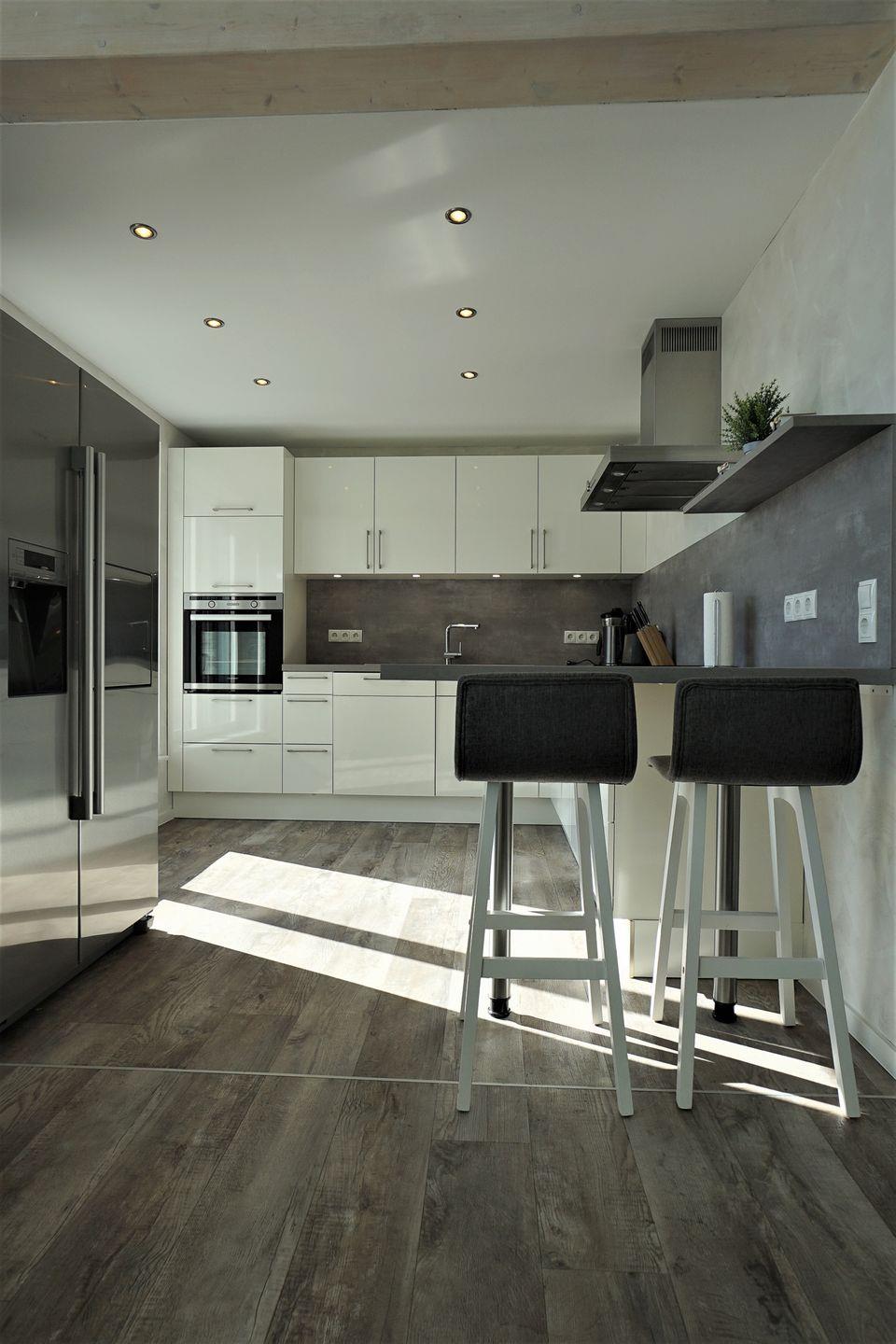 Der Wohnbereich verfügt über eine komplett ausgestattete, integrierte Küche mit einem Backofen, einem Geschirrspüler, einer Kühl-/Gefrierkombination und einer Mikrowelle.