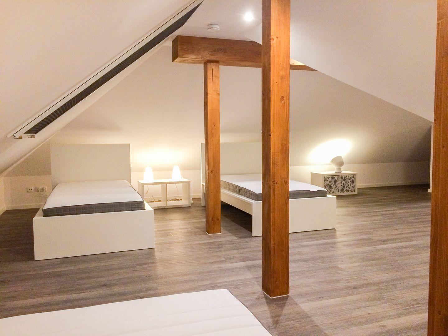 Es gibt drei Schlafzimmer mit Doppel-Boxspringbetten und je einem eigenen TV Gerät mit Internetzugang. In der zweiten Etage