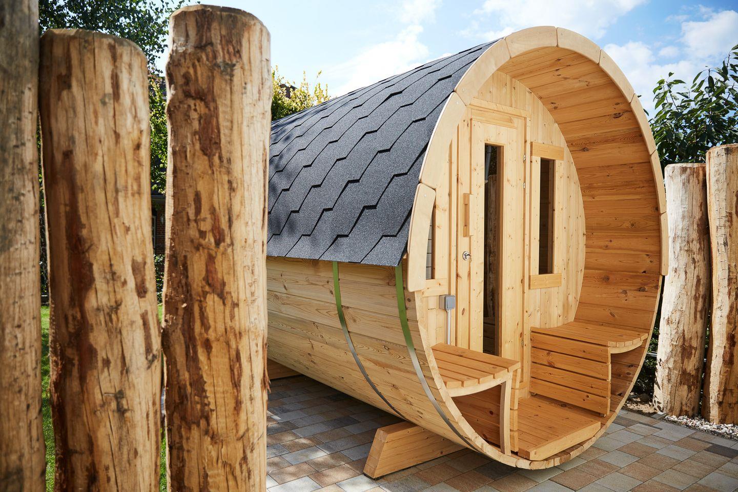 Außenanlage, entspannen Sie perfekt. Ein finnisches Saunafass (