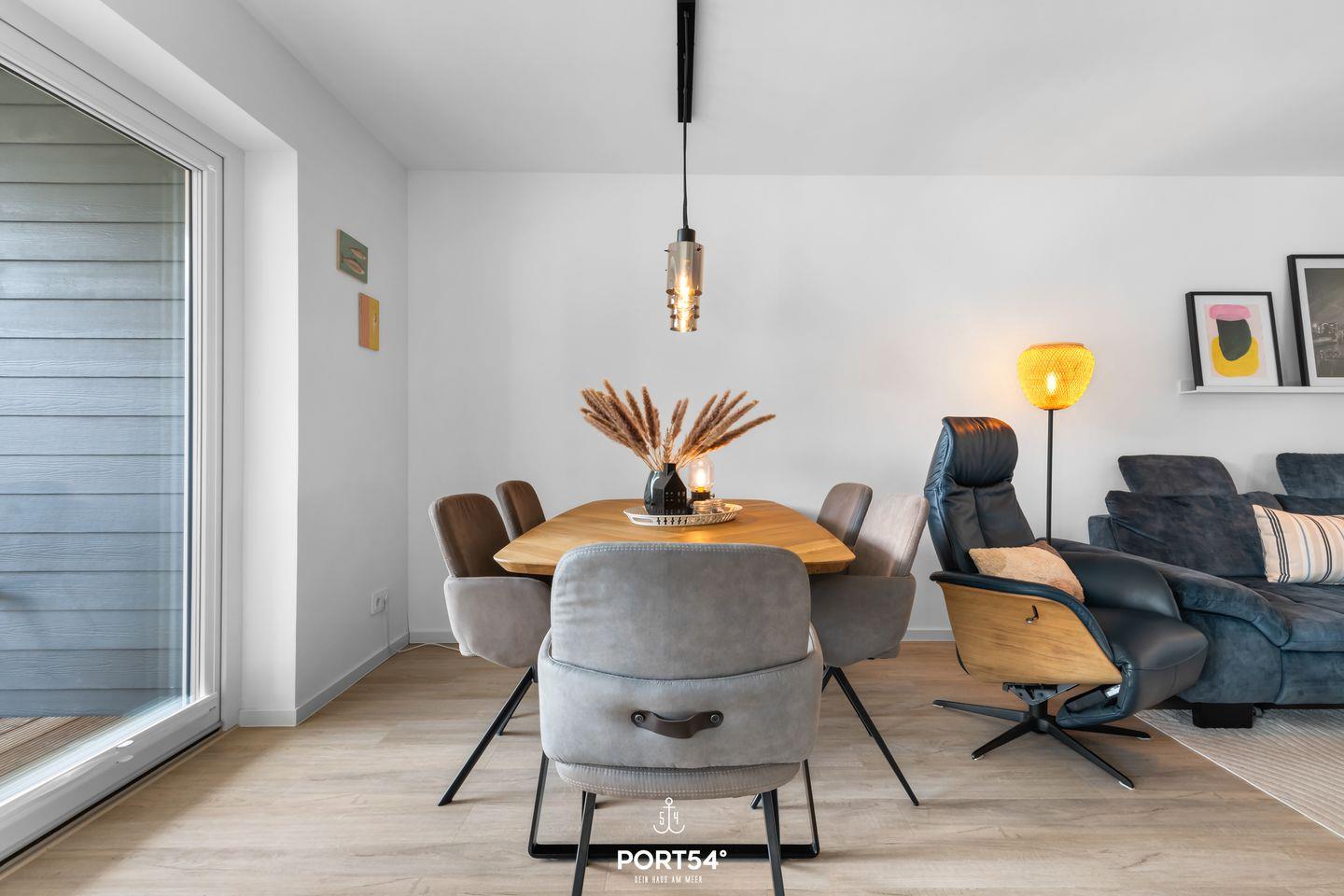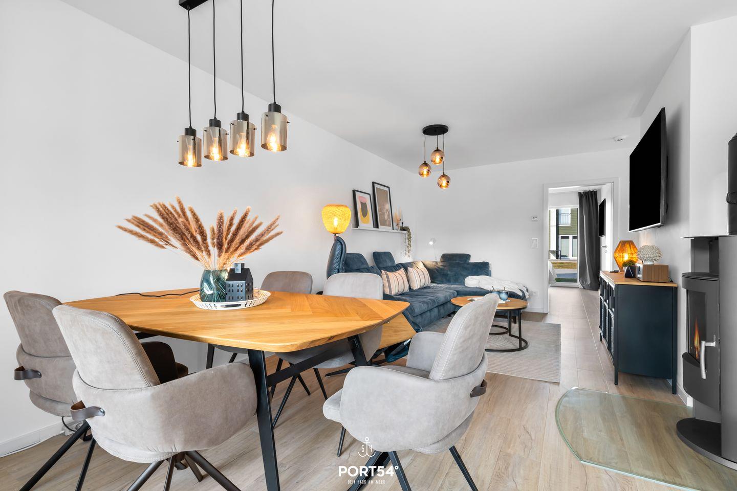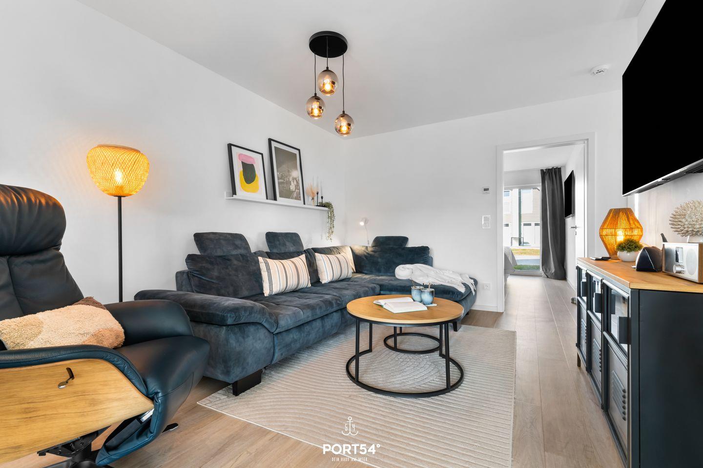 Moderne Ferienwohnung 'Beach Break' in Büsum mit Kamin, Terrasse und Badewanne für entspannte Nordseeurlaubsmomente.