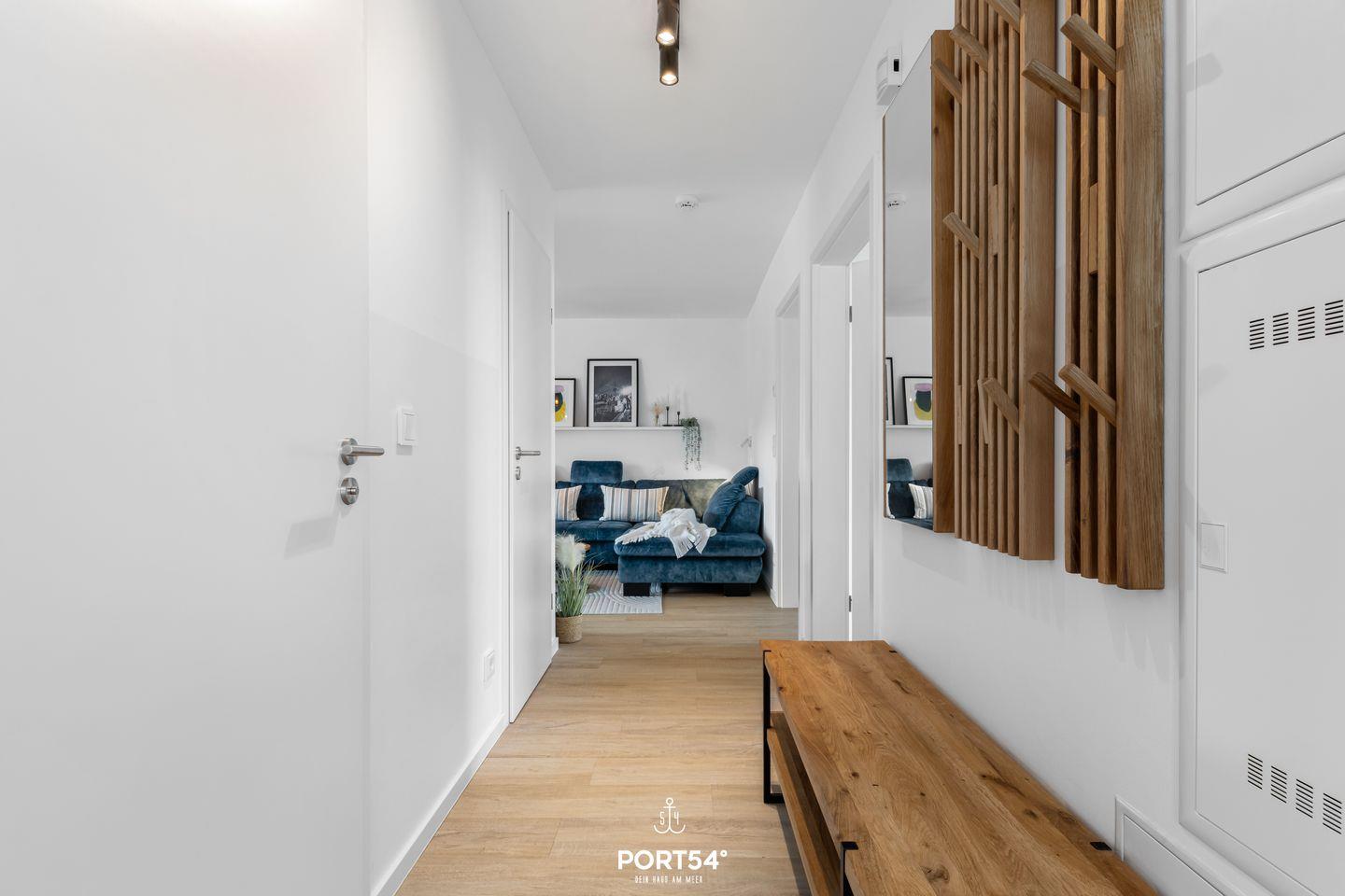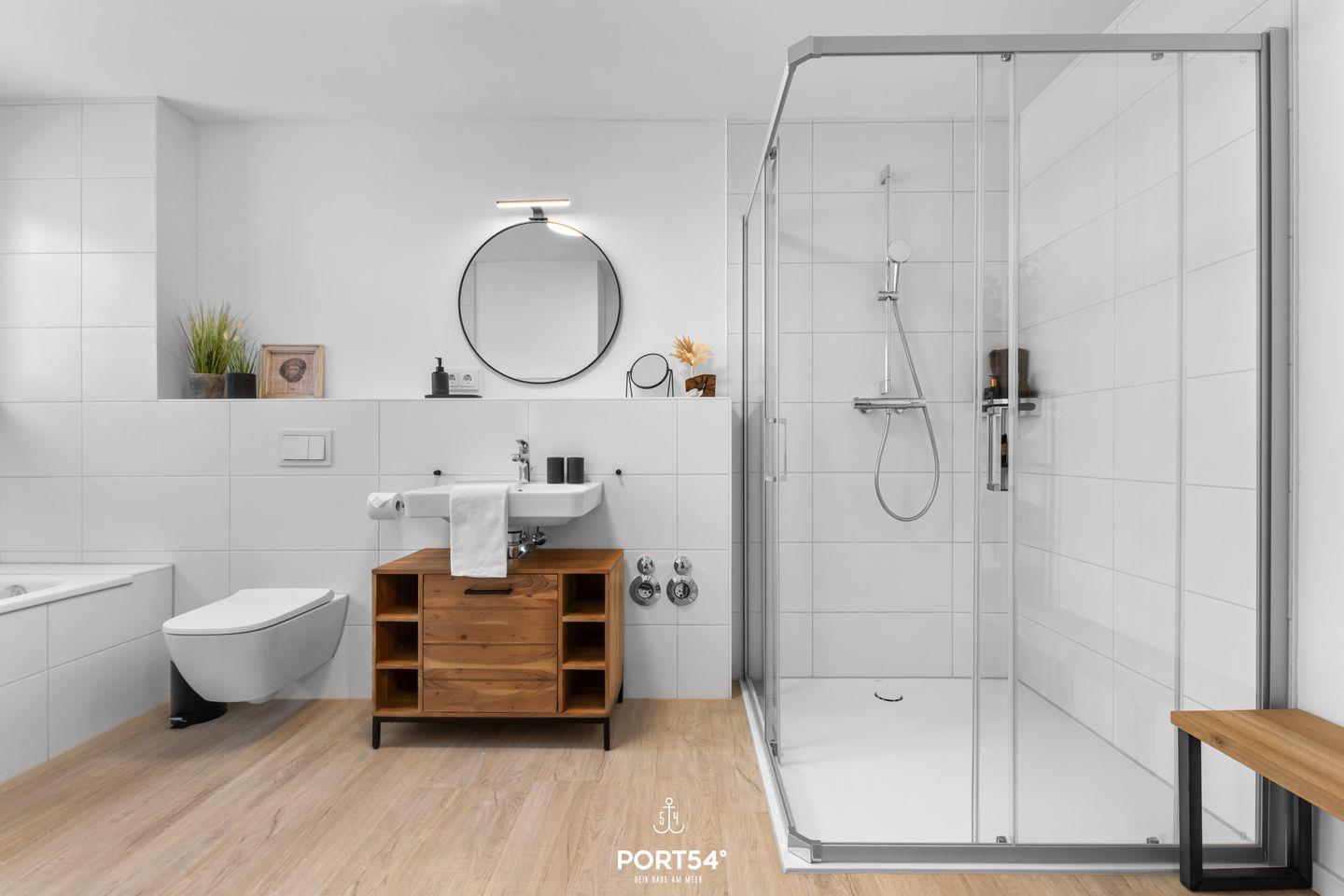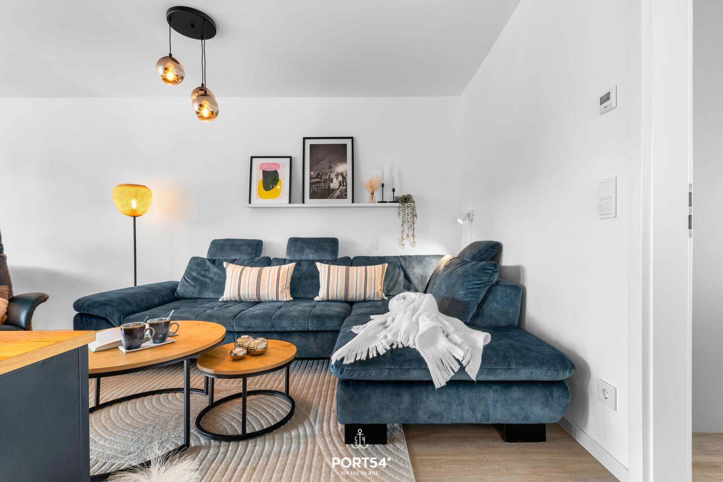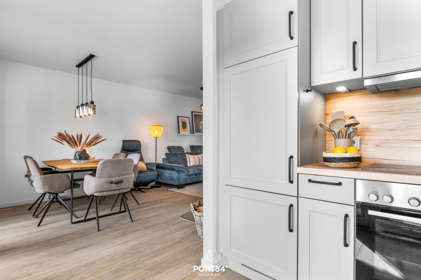 Moderne Ferienwohnung 'Beach Break' in Büsum mit Kamin, Terrasse und Badewanne für entspannte Nordseeurlaubsmomente.