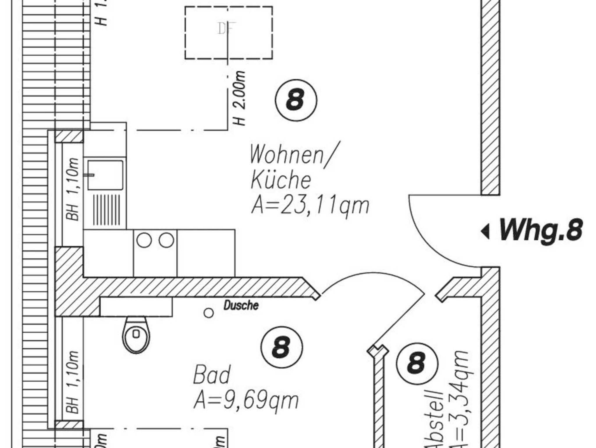 Das komplette Appartement ist barrierefrei und somit rollstuhlgerecht ausgestattet. Sämtliche Einrichtungen wie Spüle, Herd, Waschbecken, etc. sind unterfahrbar. Die Dusche und alle Türschwellen sind ebenerdig und barrierefrei passierbar. Ins Dachgeschoss gelangen Sie mittels integriertem Aufzug im Treppenhaus. Egal, ob Türbreiten oder Handgriffe von Türen und Fenstern, Badeinrichtung, Küchenzeile oder Schlafbereich, überall wurde darauf geachtet, den Belangen von Rollstuhlfahrern gerecht zu werden und zudem ausreichend Platz zum Wenden zu bieten.